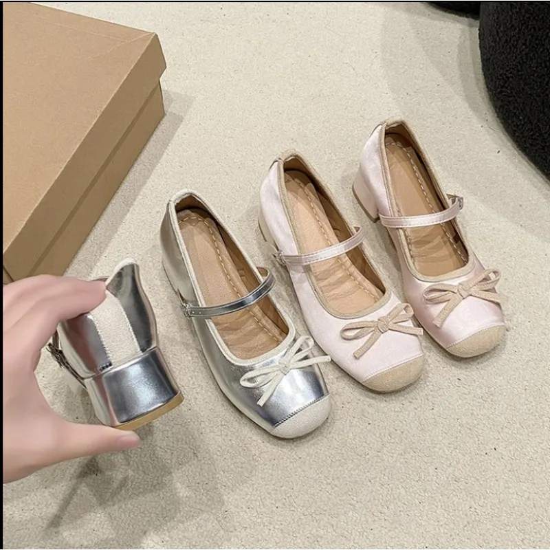 Cyflymder Shallow Mouth Female Shoes Autumn Soft Black Flats Ballet New Dress Fall Summer Med Flower Rubber Hoof Hee