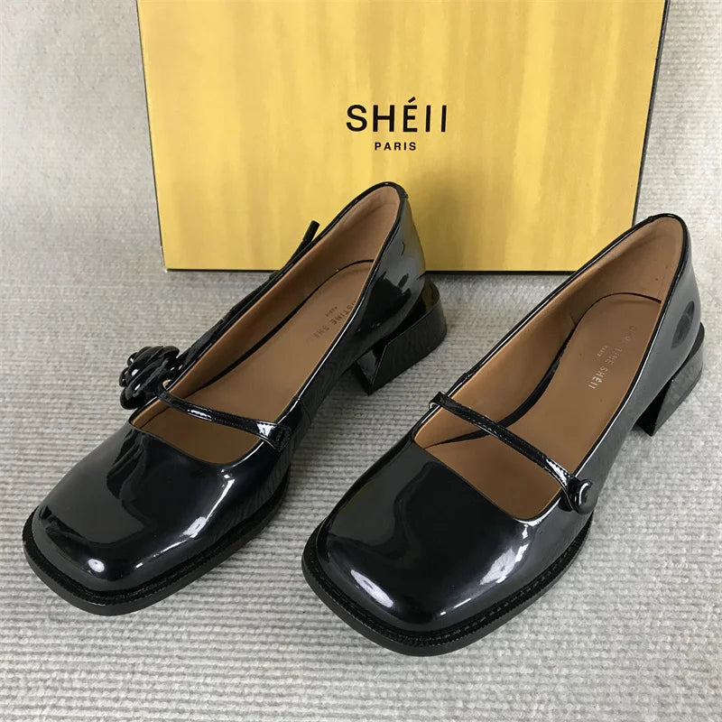 Cyflymder Shallow Mouth Patent Leather Ballet Flats Korean Shoes Low Heels Female Footwear Dress Summer Mary Janes Fashion Low Heels