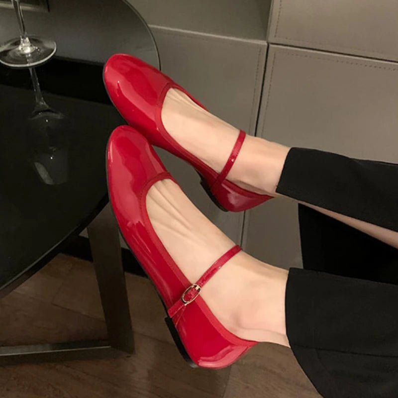 Cyflymder Shiny PU Leaather Flats Mary Janes Shoes Women Red Elegant Basic Pointed Toe Loafers Spring Autumn Daily Casual Black Shoes New