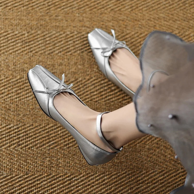Cyflymder Shoes Woman 2025 Bow-Knot Female Footwear Square Toe Autumn Casual Sneaker Shallow Mouth Low Heels New Butterfly Dress Big Size