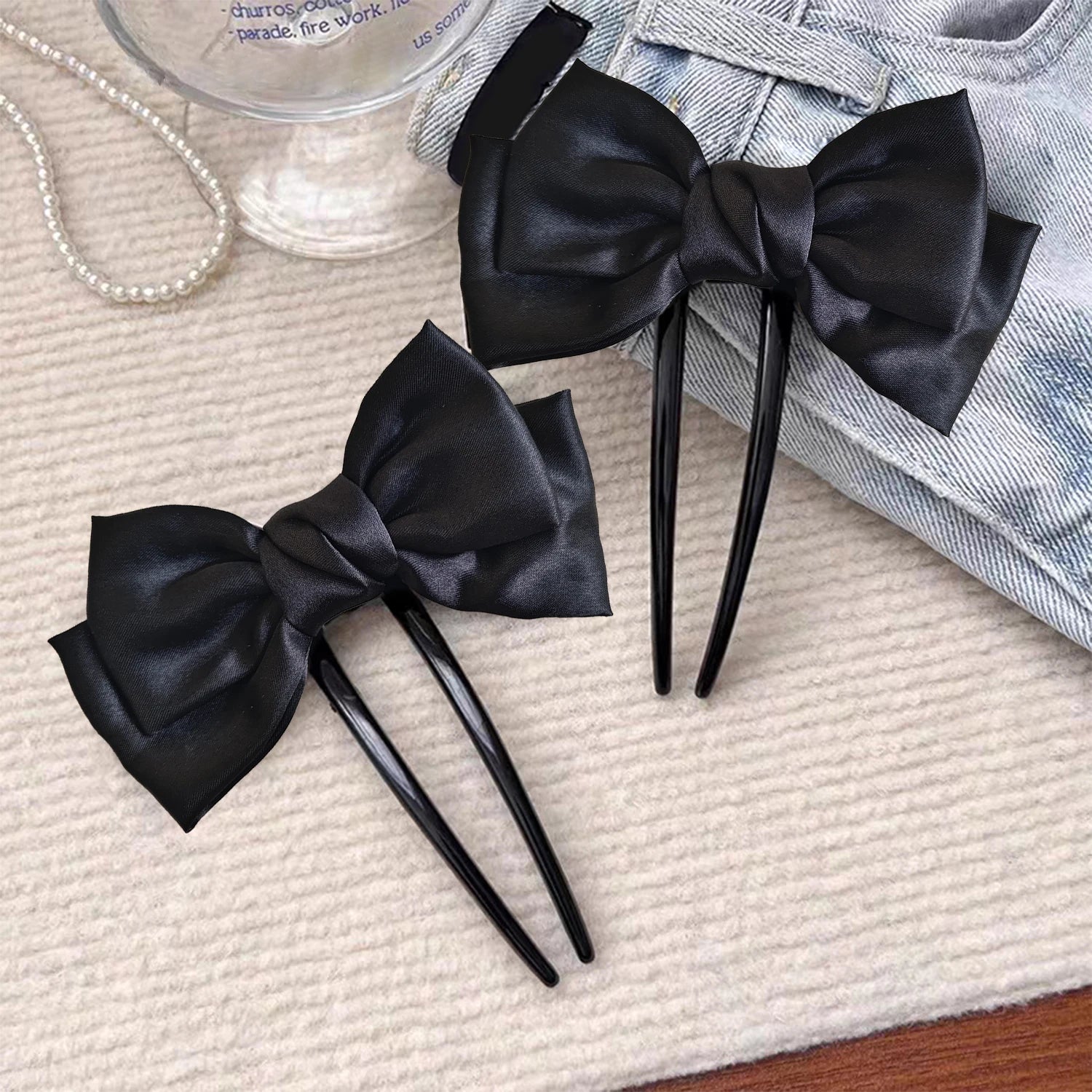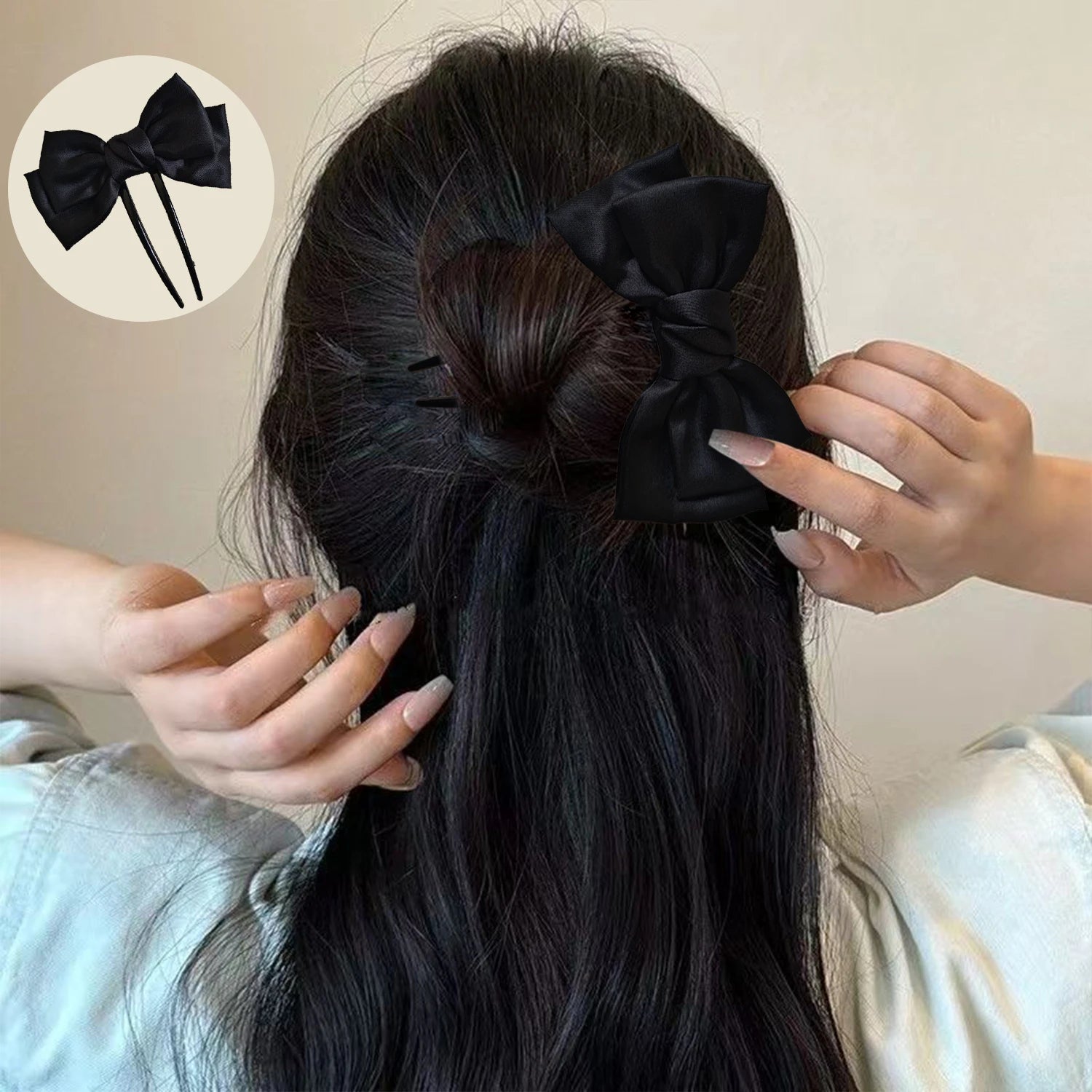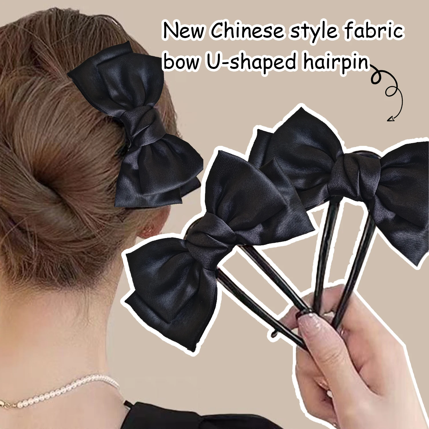 Cyflymder Simple Black Bowknot U shape Hair Sticks Fashion Women Bun Ball Hairpin Daily Hair Braiding Barrettes Styling Hair Accessories