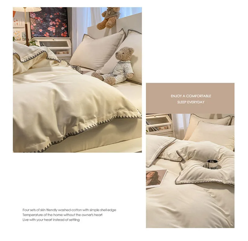 Cyflymder Solid Color Bedding Set with Shell Edges Skin Friendly Simple Soft Duvet Cover Kit Cozy Fitted Sheet Set for Autumn Winter