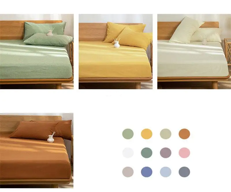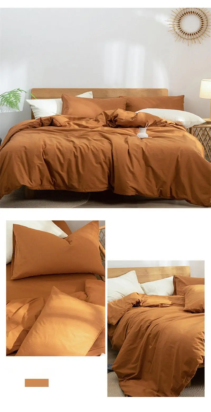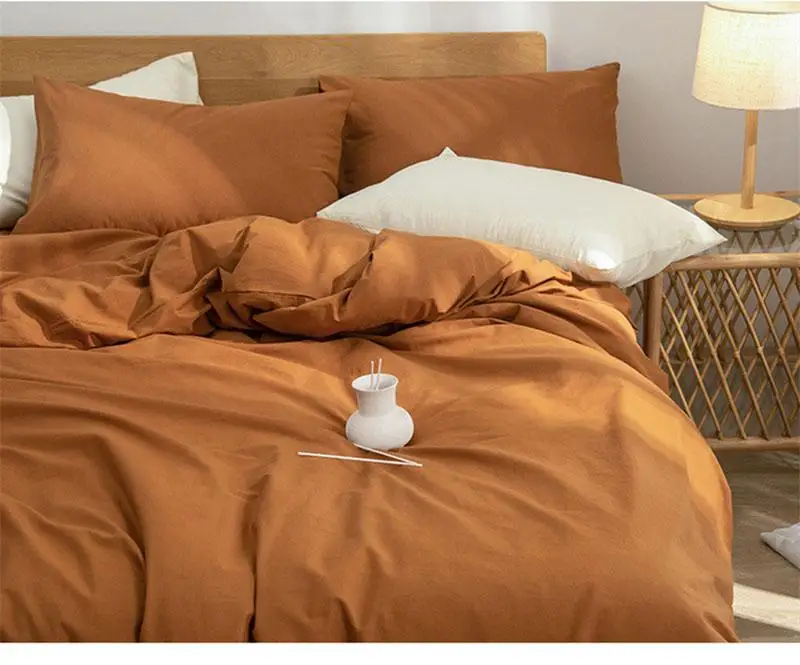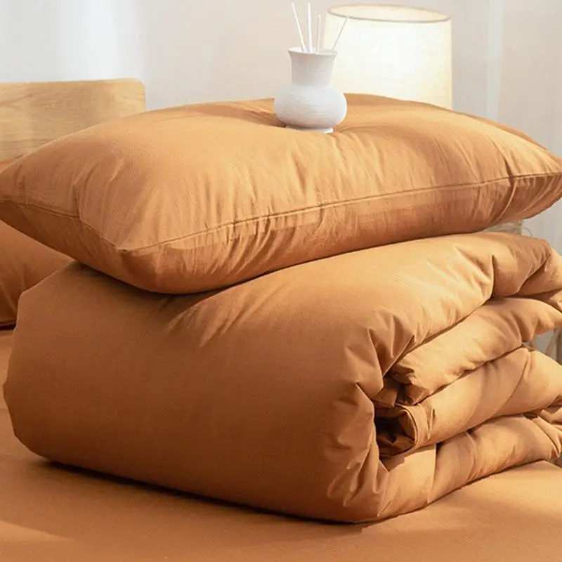 Cyflymder Solid Color Pure Cotton High-Density Bedding Sets Washed Cotton Soft Duvet Cover Kit Skin Friendly Breathable Bedclothes