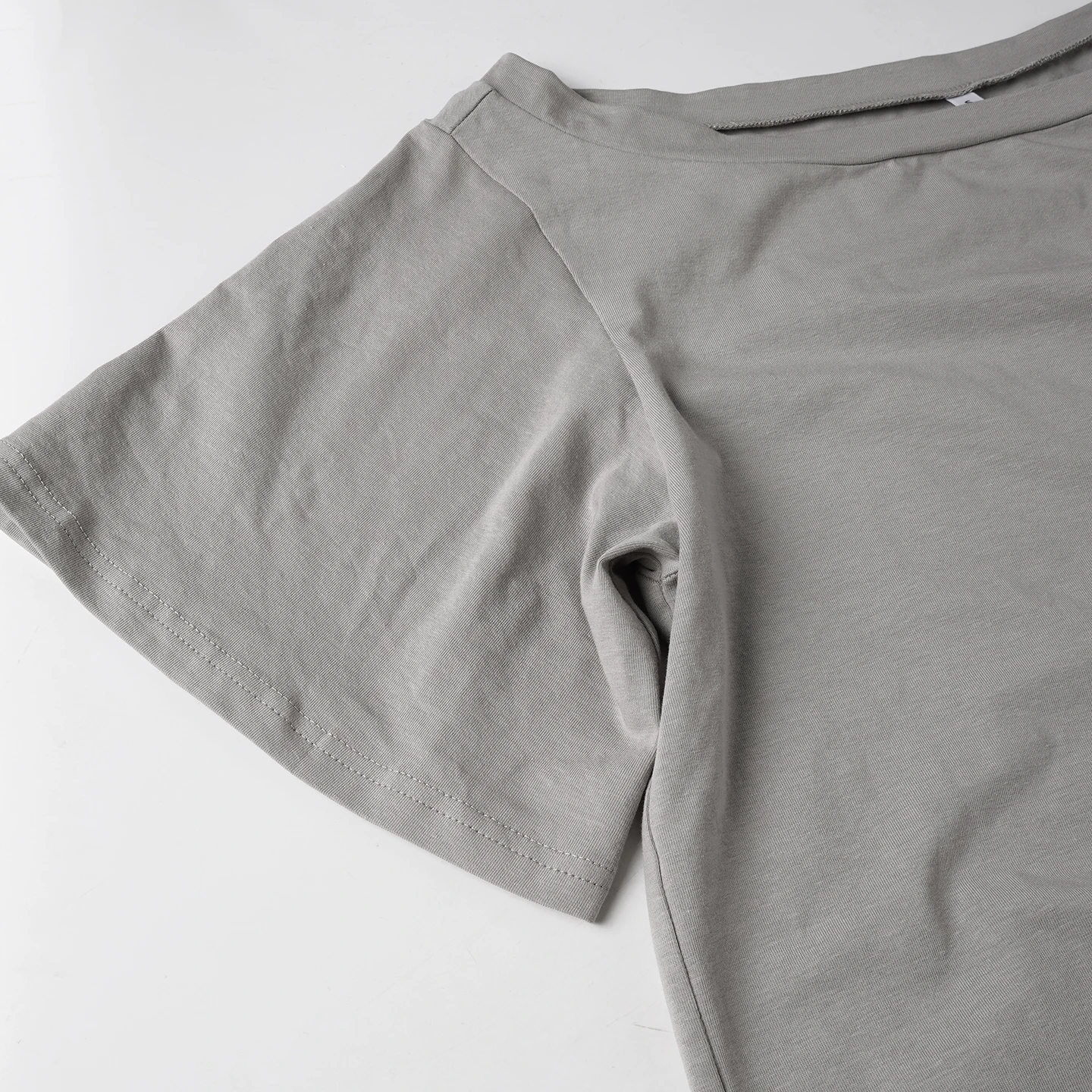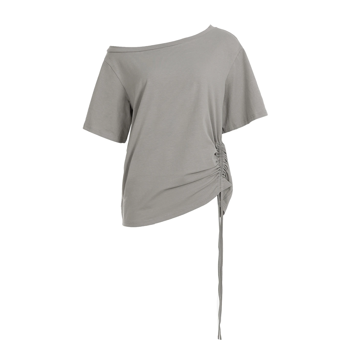 Cyflymder Solid Grey Loose Drawstring T-shirt Asymmetrical Off-shoulder Short Sleeve T Shirts Women Casual Summer Tees y2k Vintage