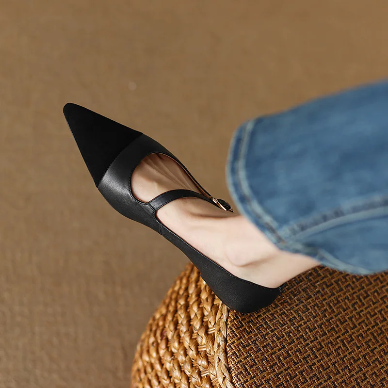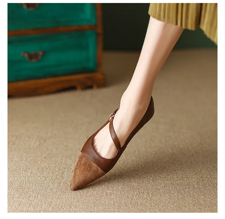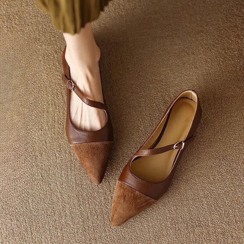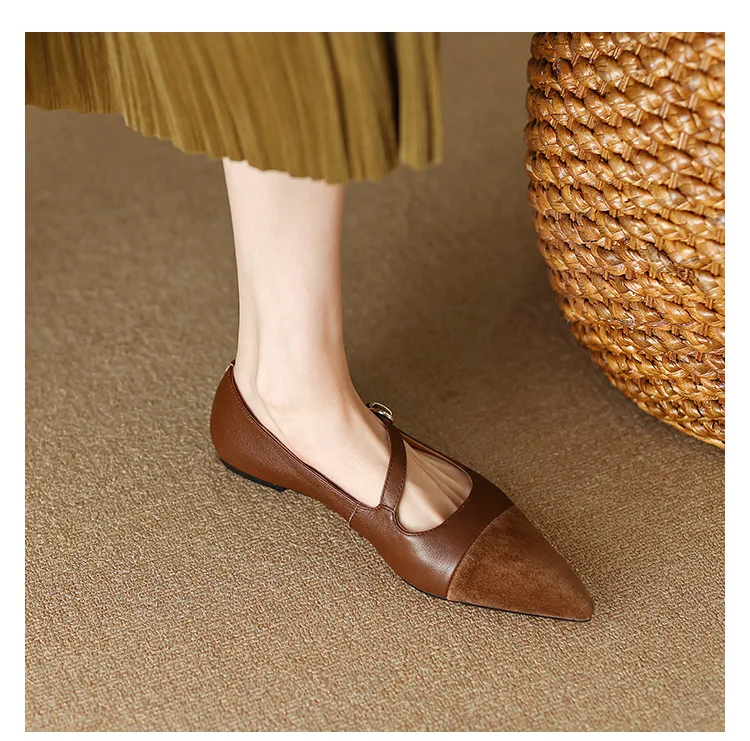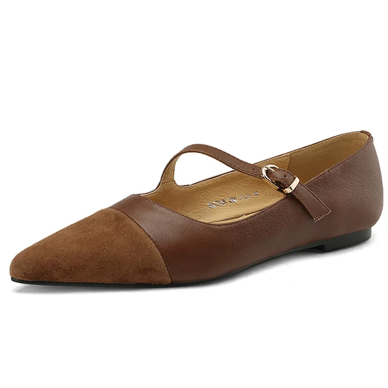 Cyflymder Splicing Design~ Pointed Head Shallow Mouth Retro Single Shoes Women's New Flat Mary Jane Shoes Woman Shoes