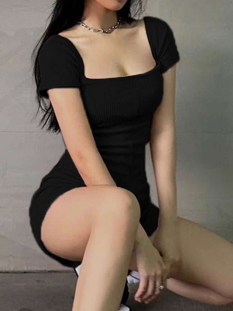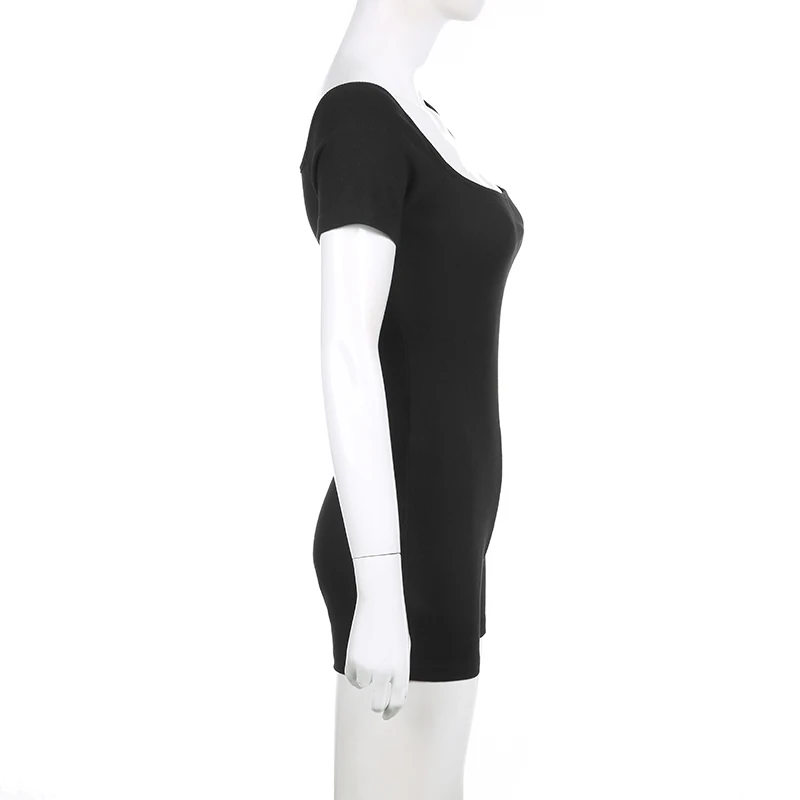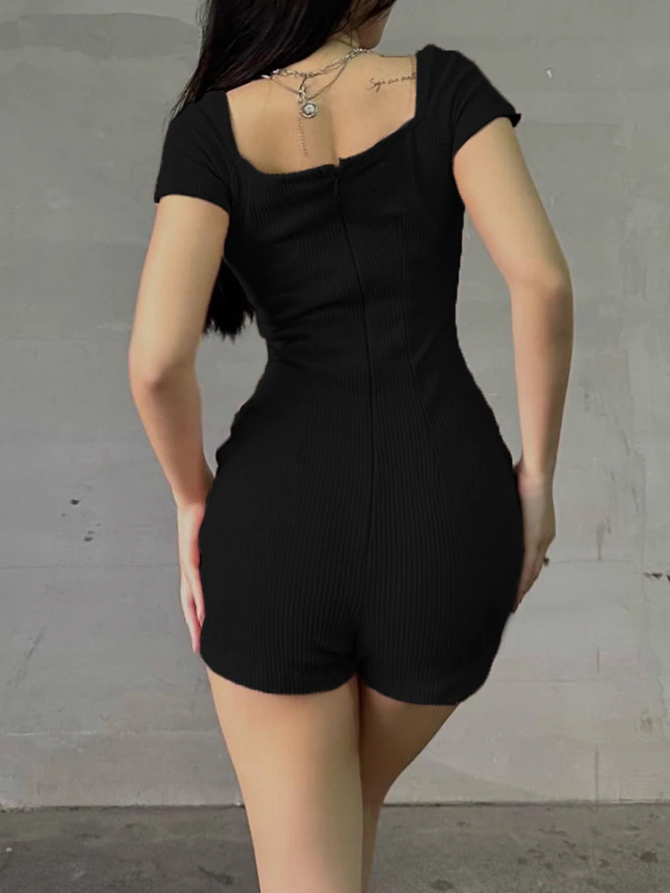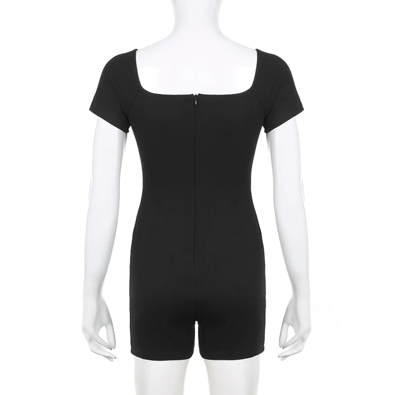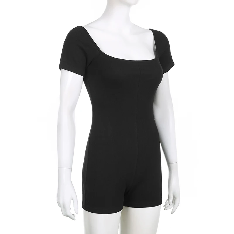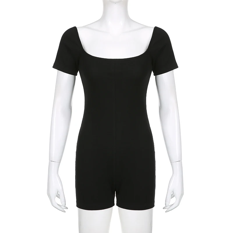 Cyflymder Sporty Activewear Basic Solid Playsuits Sexy Slim Square Collar Short Sleeve Rompers Women Summer Fashion Streetwear