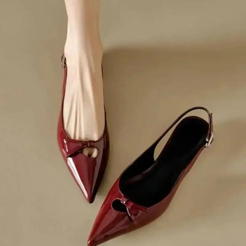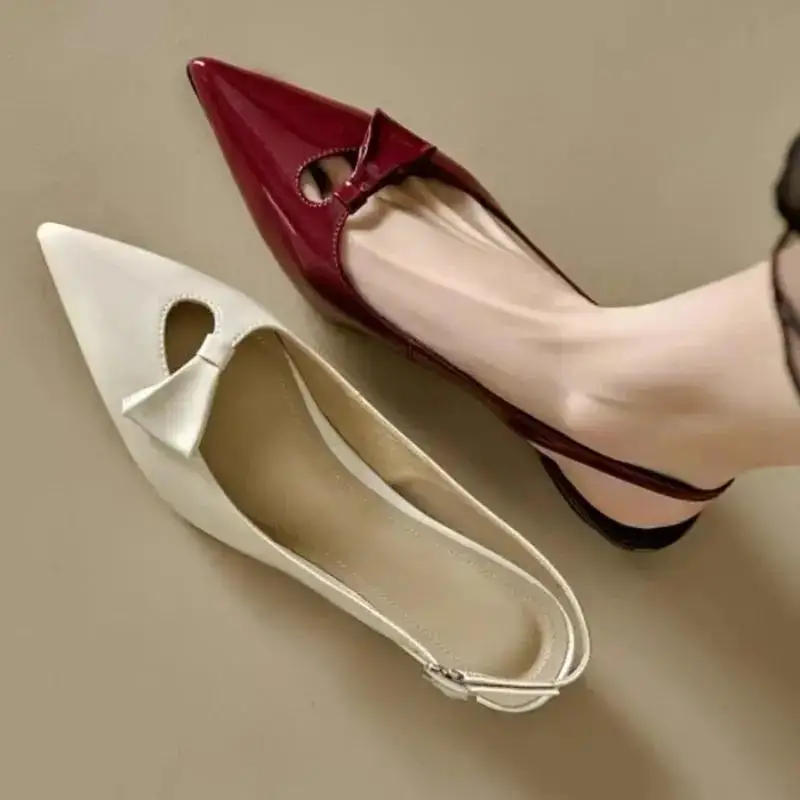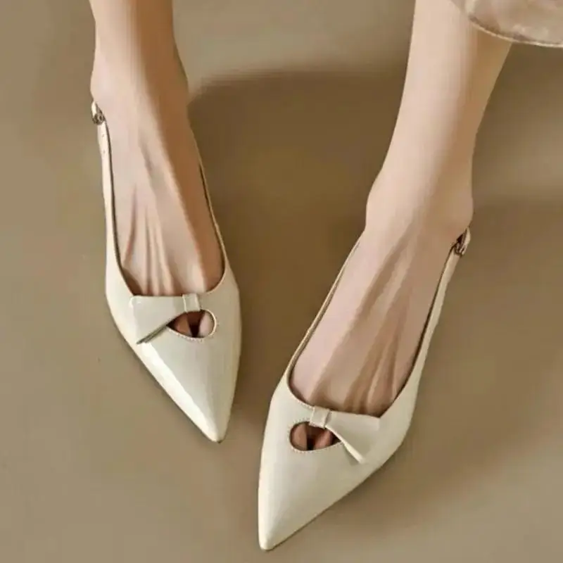 Cyflymder Spring New Coarse Heel Shoes for Women Fashion Pointy Shallow Hollow Out A Word with Anti-slip Wear-resistant Low Heel Shoes