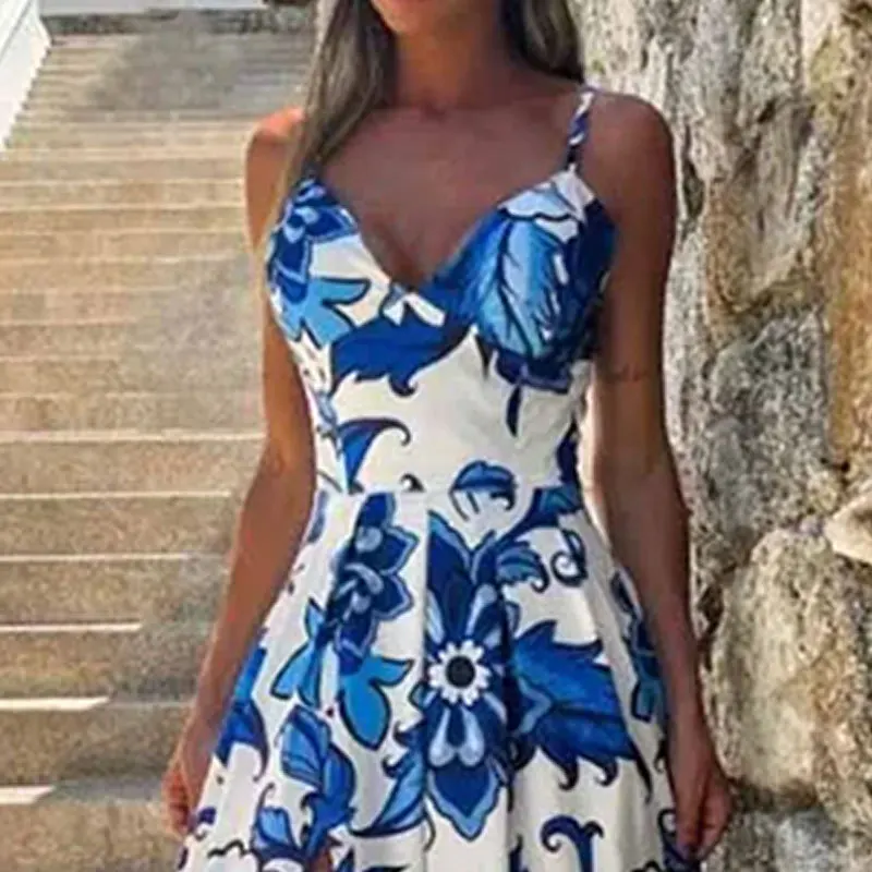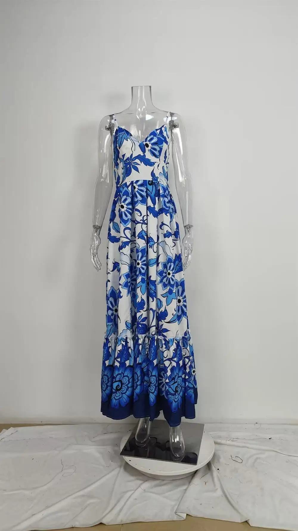 Cyflymder Spring Women's Casual Faion Print V-ne Strap Splice Split Commute Sle High Waist Long Dr Tee-acetate Fiber 100%