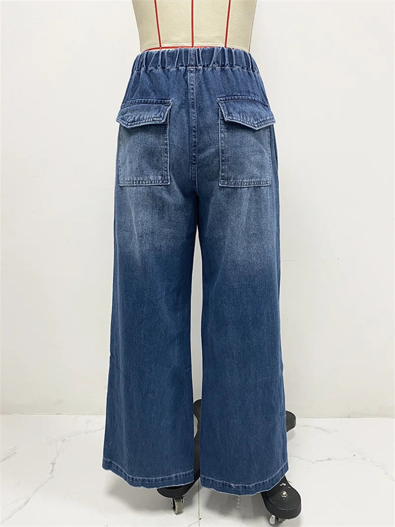 Cyflymder Spring Women's Wide Leg Pleated Loose Jeans New Retro Y2K Punk Mid waist Straight Leg Jeans Street Style Pants Denim Jeans