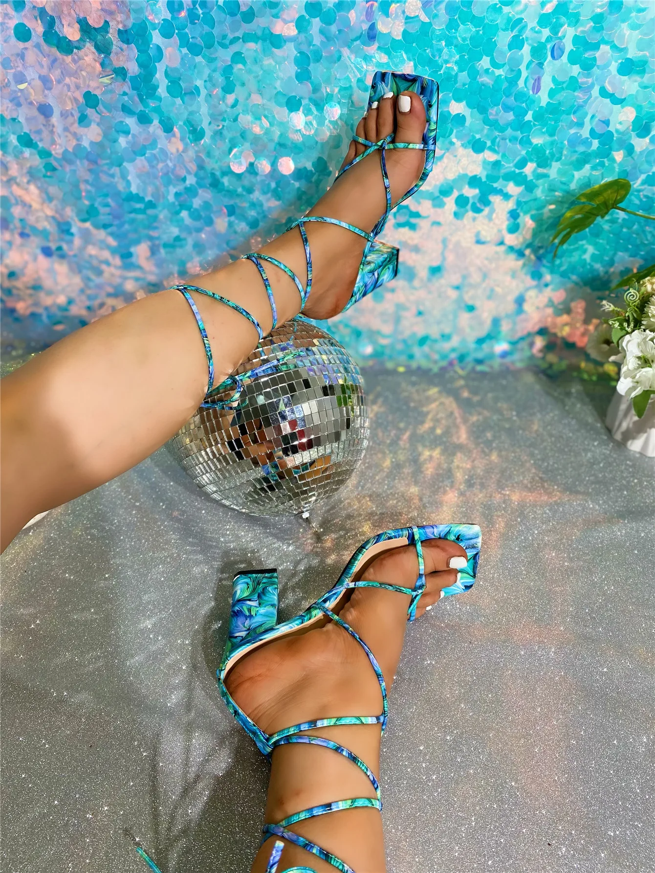 Cyflymder Square Toe Large Size Clear Heels Multicolored Sandals 2025 Women's Blue Suit Female Beige Cross Summer Shoes Cross-Shoes Big Bl