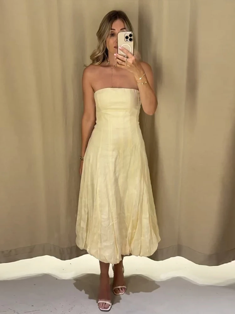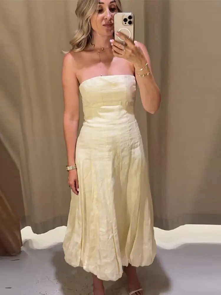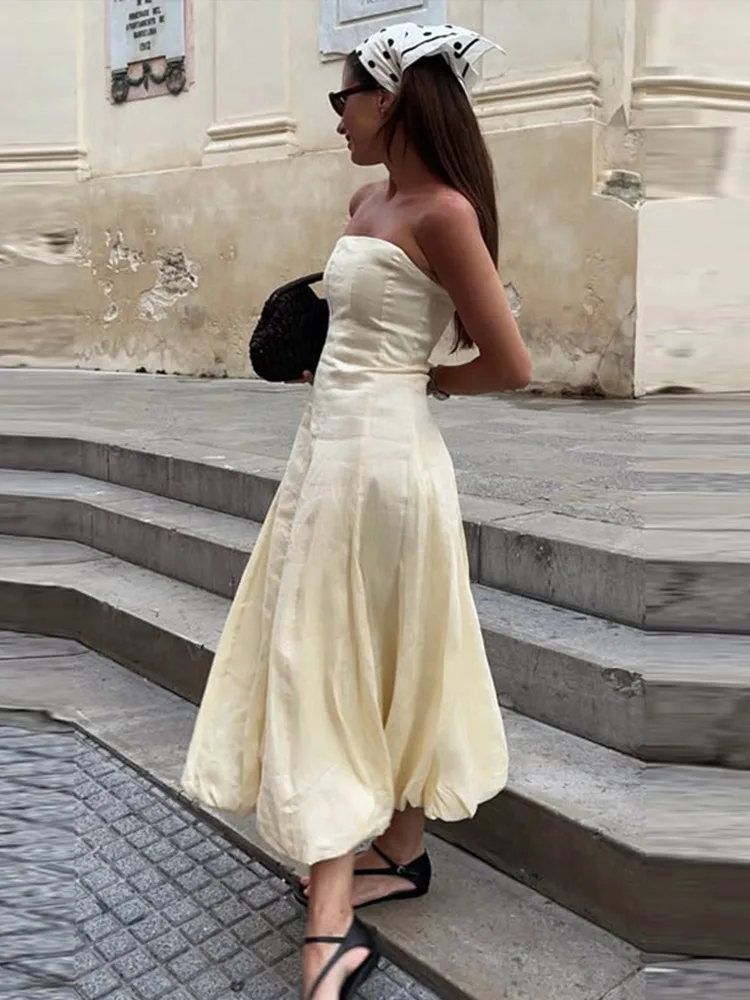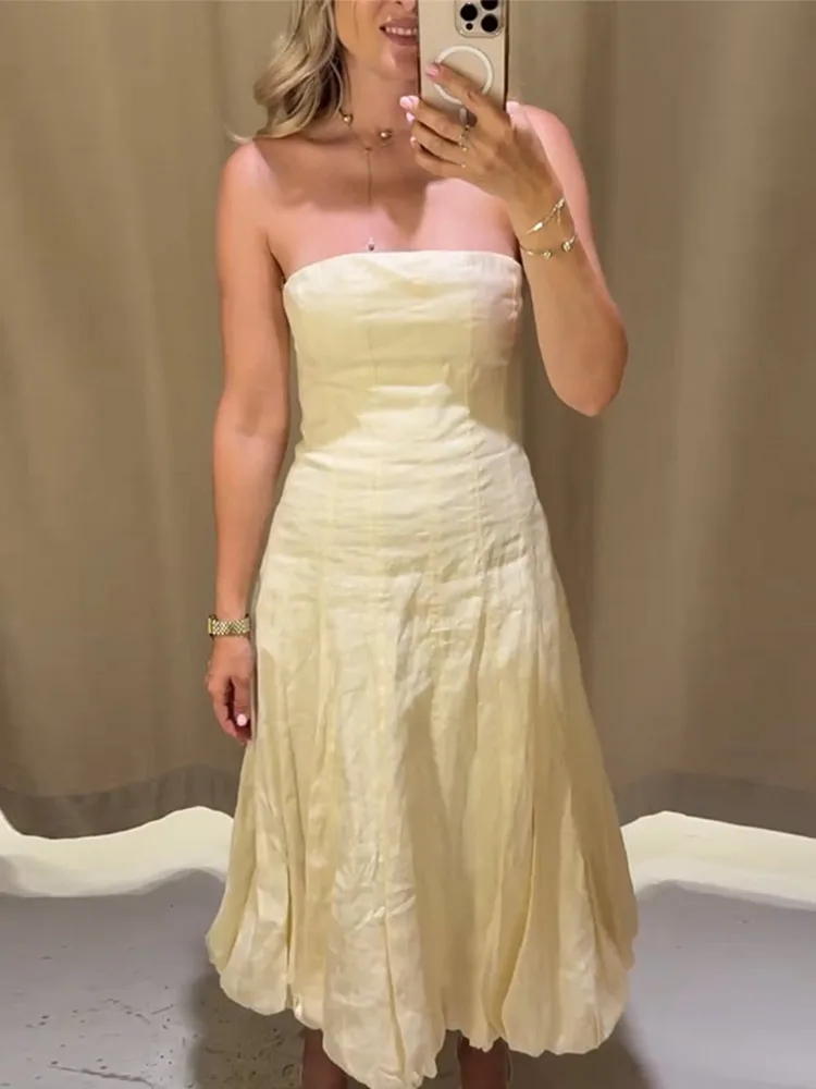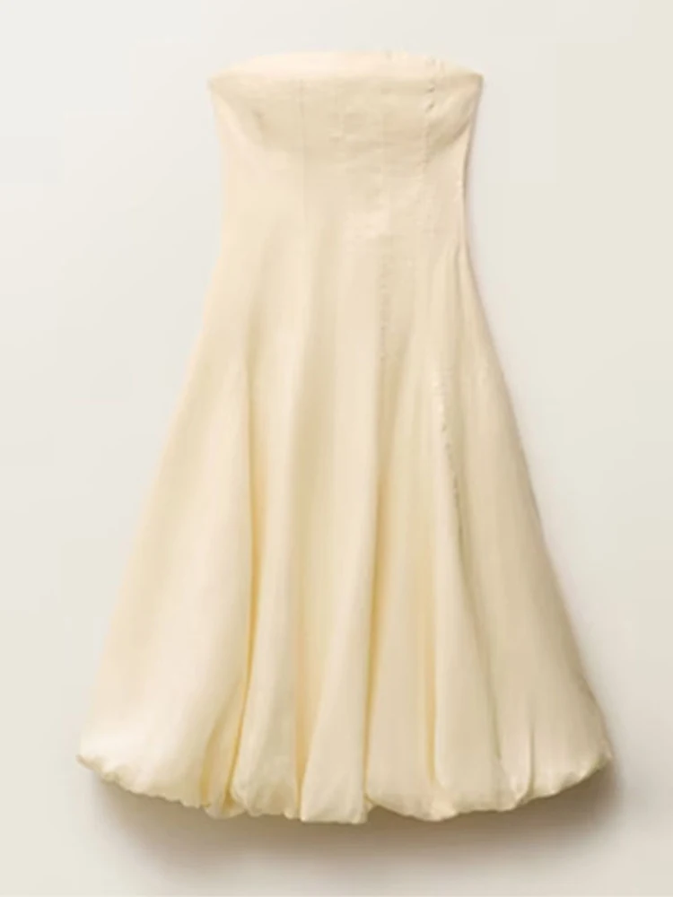 Cyflymder Strapless Waist Cinching Ball Gown Women Elegant Sleeveless Backless Fit and Flare Bud Party Evening Dresses Sweet Girls Vestido