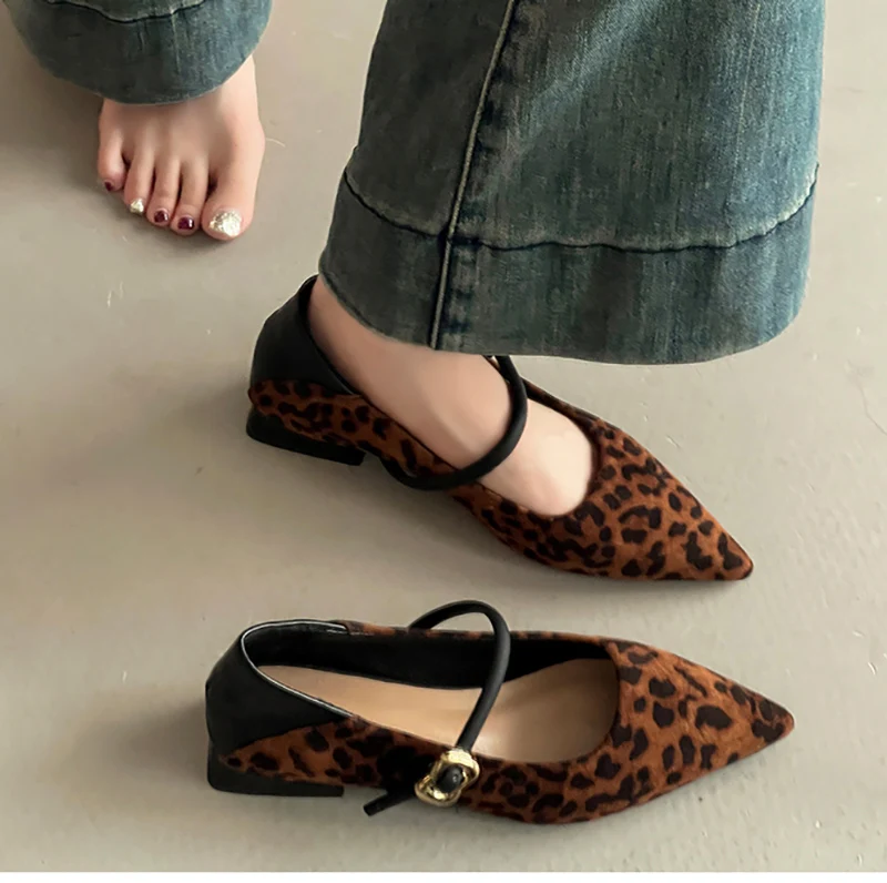 Cyflymder Street Style Leopard Women Mary Jane Shoes Ladies Concise Pointed Toe Pumps Spring Autumn Women's Commuting Shoes