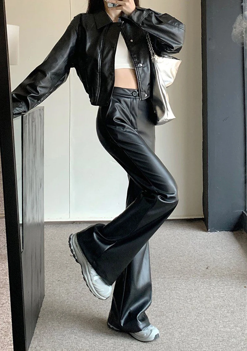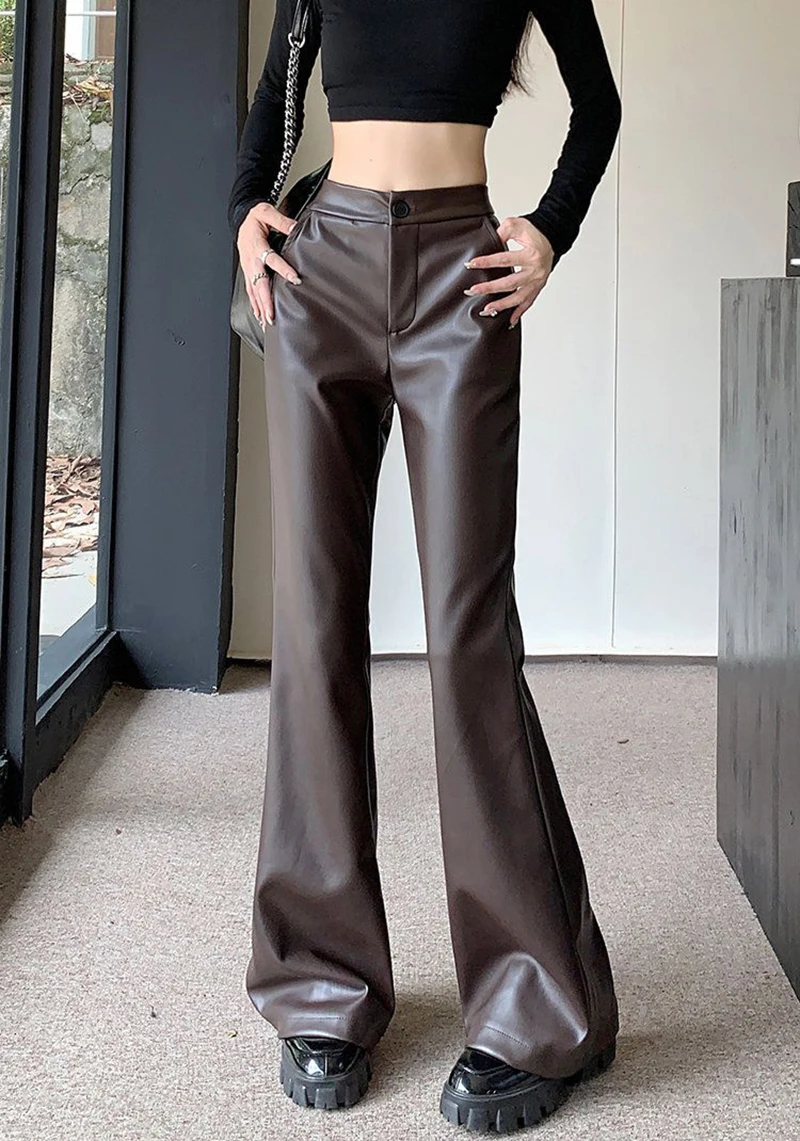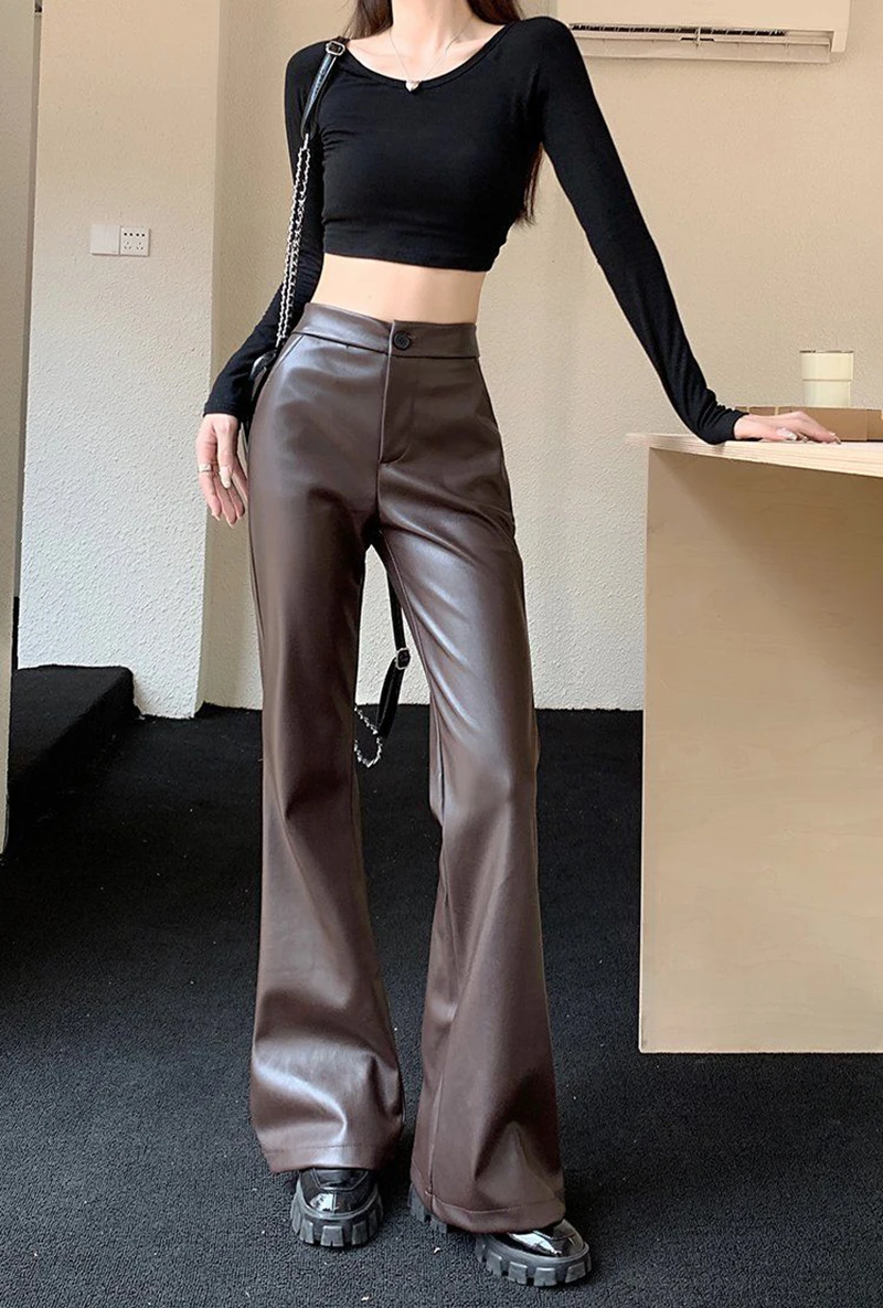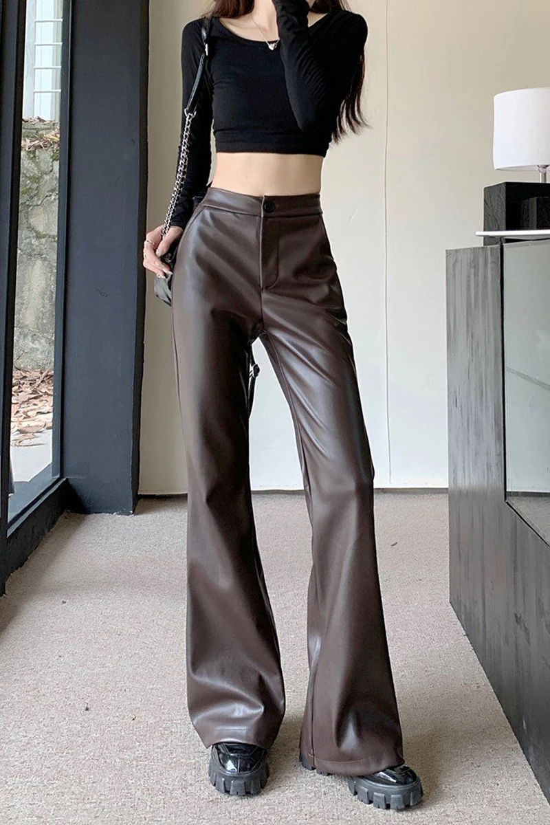 Cyflymder Streetwear Moto Pu Flare Pants Women High Waist Slim Vintage Trousers Harajuku Casual American Retro Female Autumn Pants