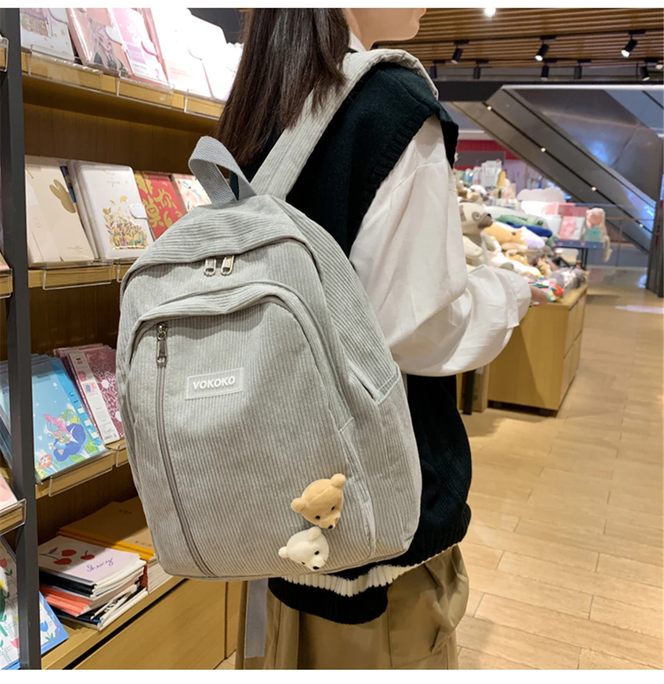 Cyflymder Stripe Corduroy Woman Backpack Purse Simple School Bag for Teenage Girls Female Travel Bagpack Kawaii Student Book Bag Rucksack