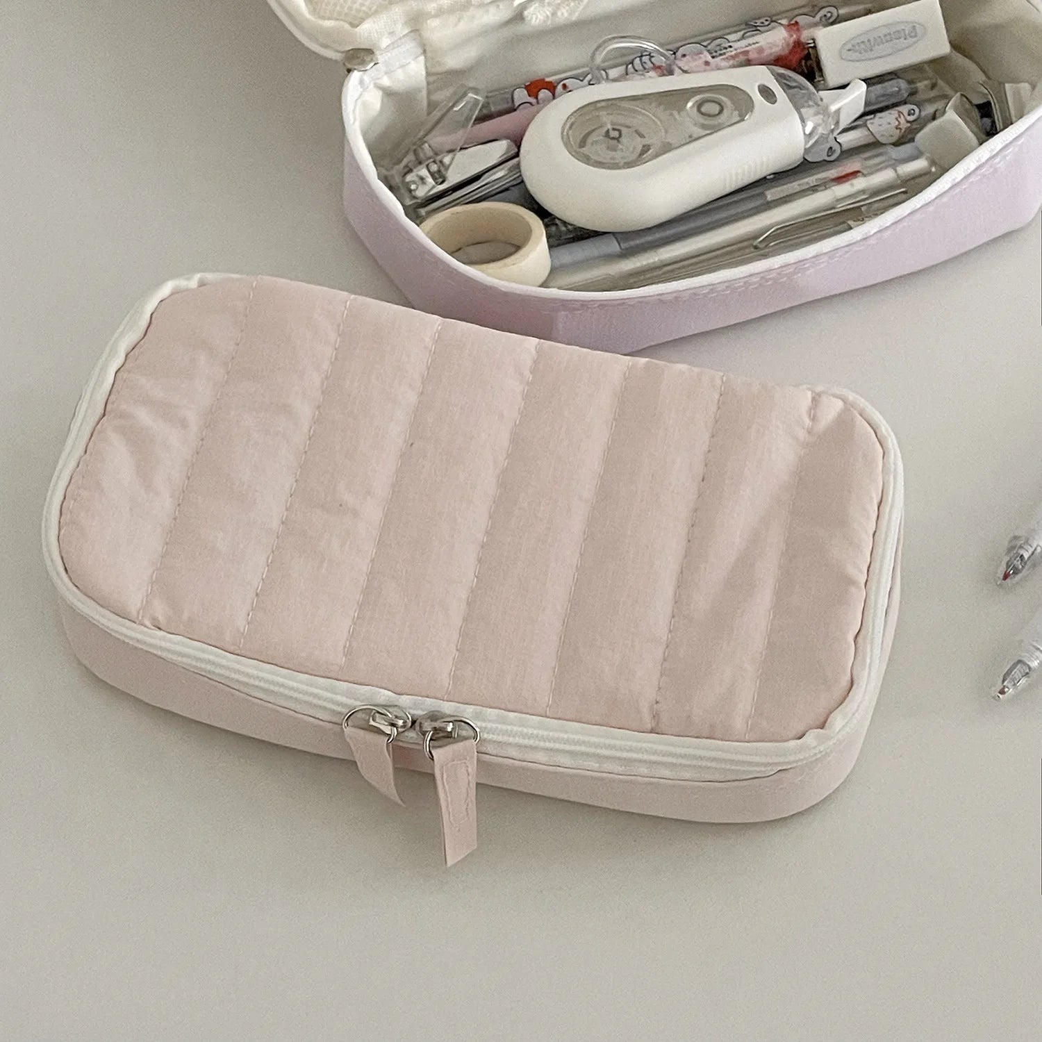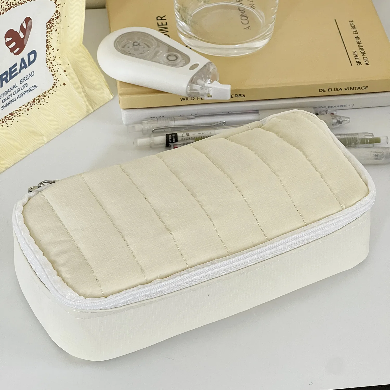 Cyflymder Student Portable Macaron Simple Stationery Case Large Capacity Vertical Strip Storage Pencil Bag