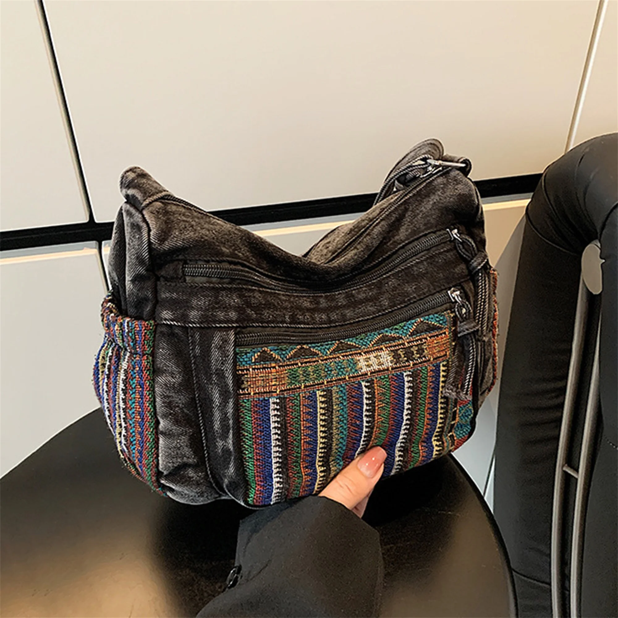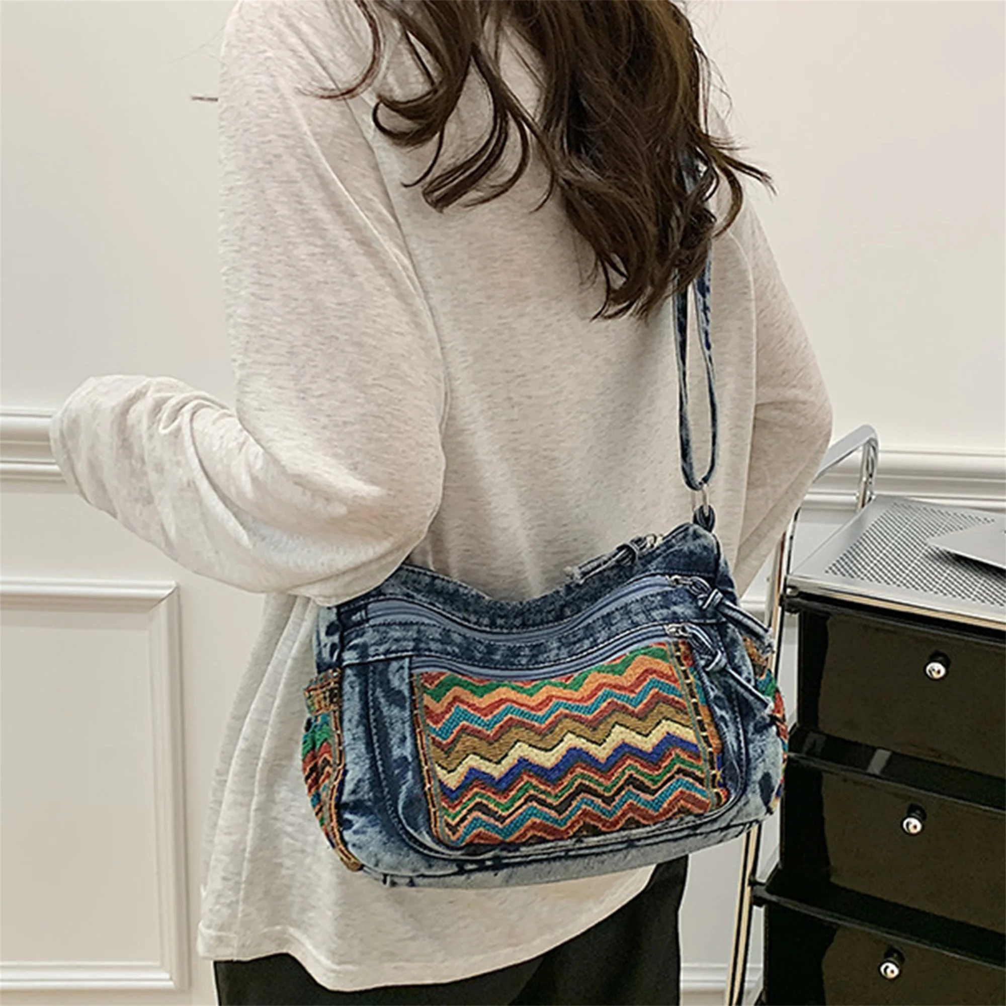 Cyflymder Stylish Ethnic Print Tote Bag with Adjustable Strap for Women Casual Shoulder Handbag with Unique Pattern for Girls