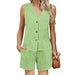 Cyflymder Stylish Women s 2-Piece Set with Plaid Print V-Neck Tank Top and Elastic Shorts Perfect for Club and Streetwear Fashion