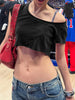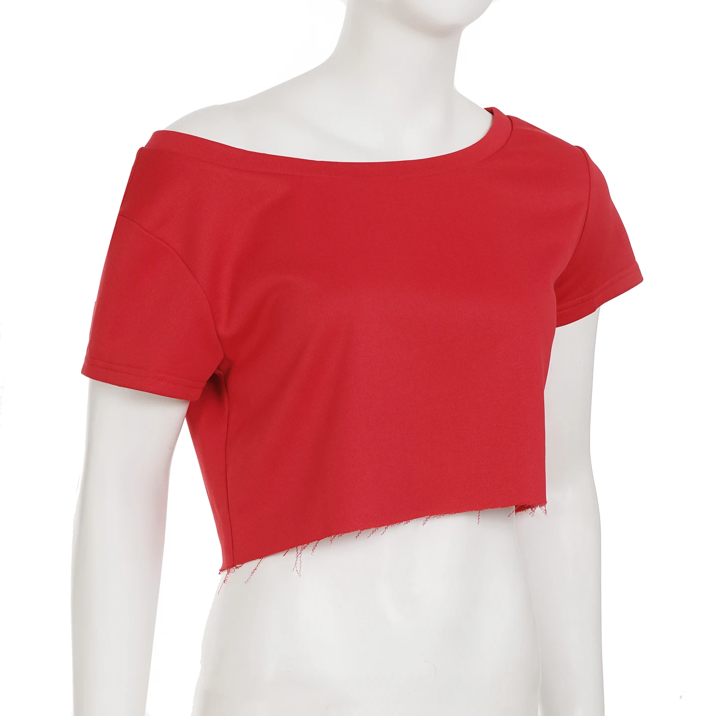 Cyflymder Summer Basic Loose Cropped Top Women Solid Short Sleeve Asymmetric Tee Shirts Streetwear y2k Basic T-shirts Vintage 90s