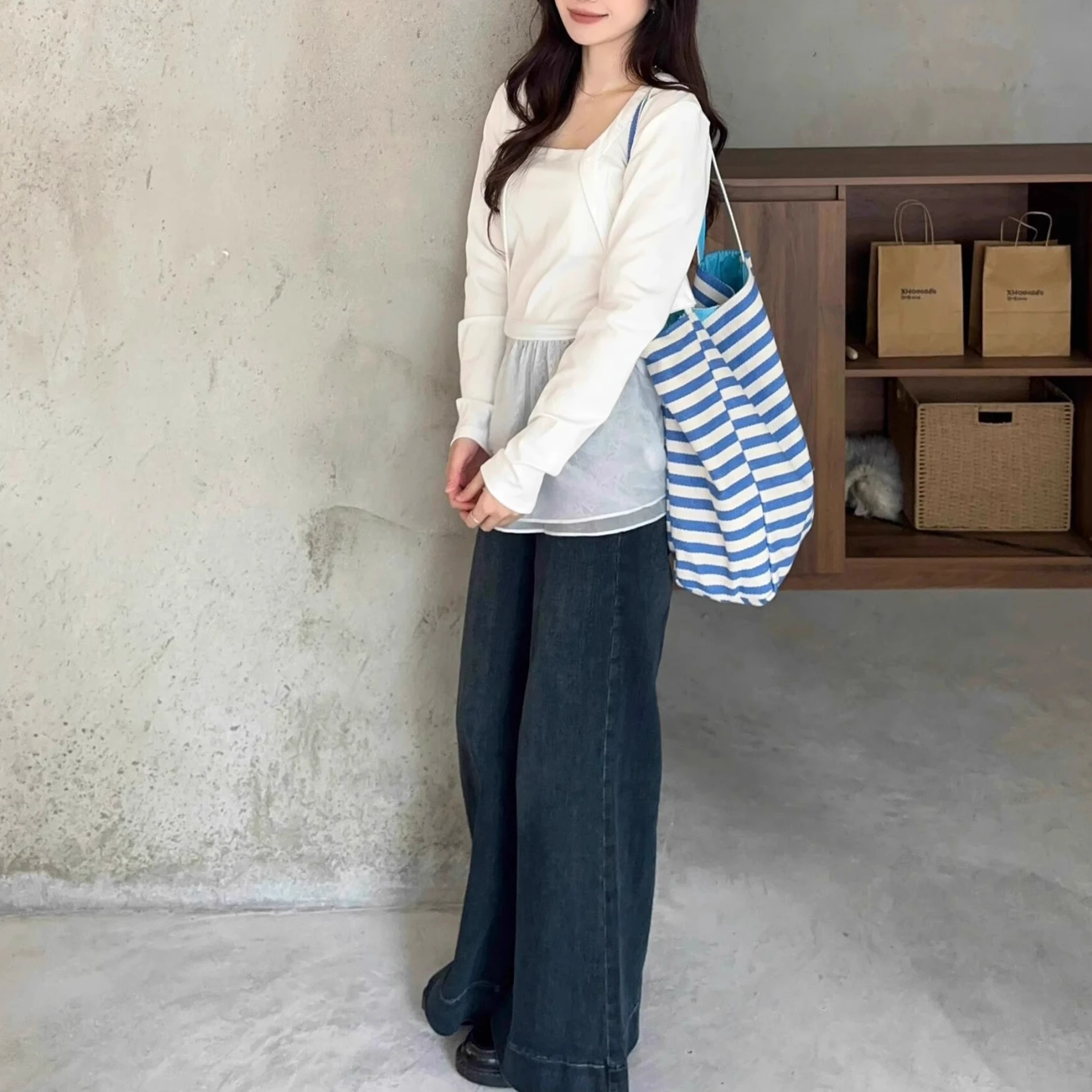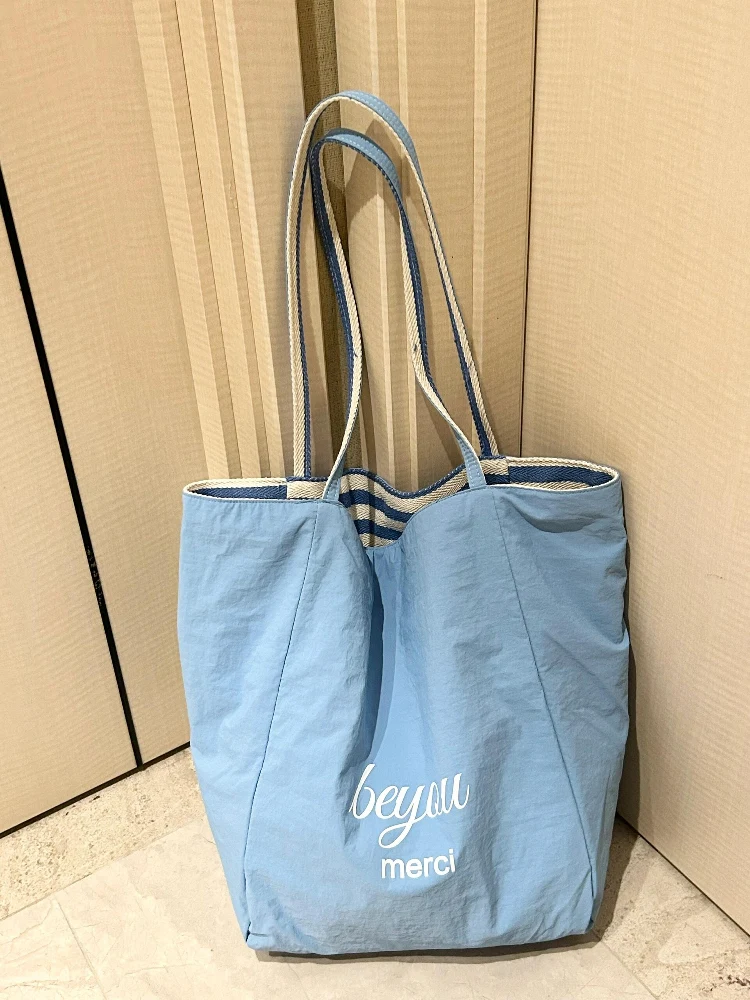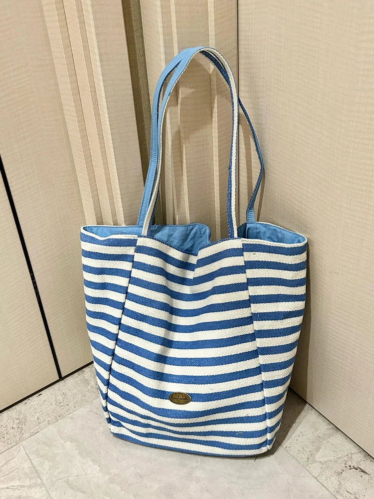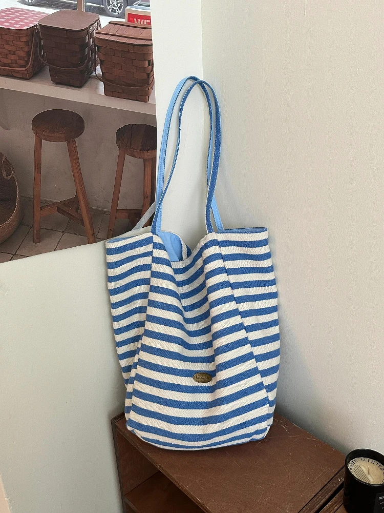 Cyflymder Summer Double-sided Striped Canvas Bag Ins Style Tote Student Large Capacity Casual Shoulder Bags for Women