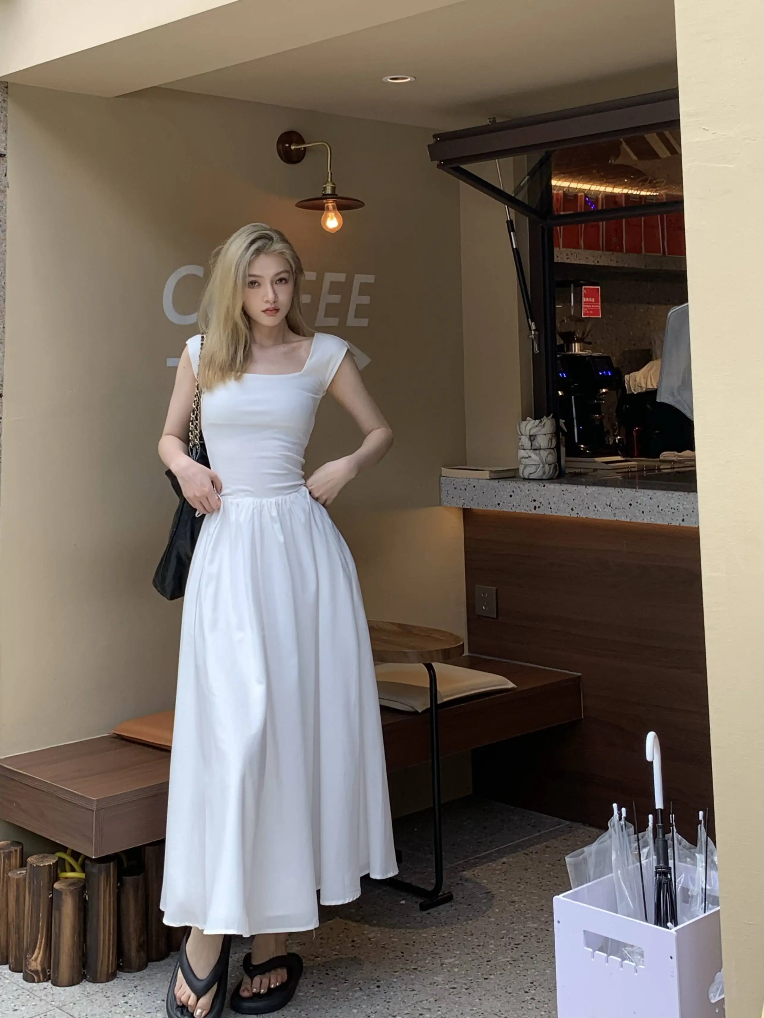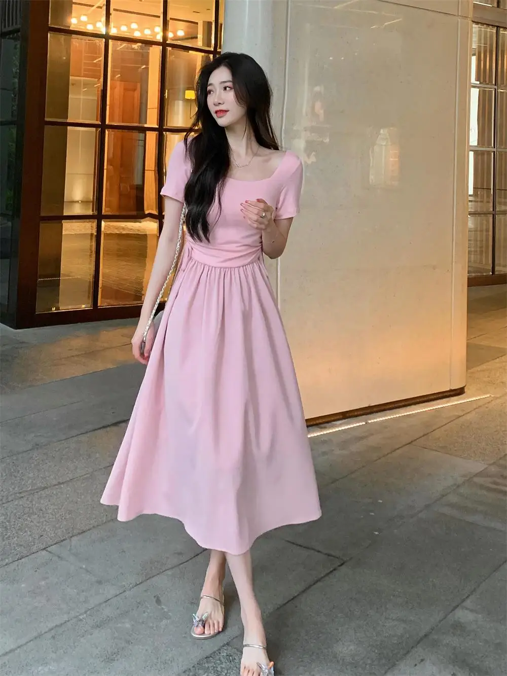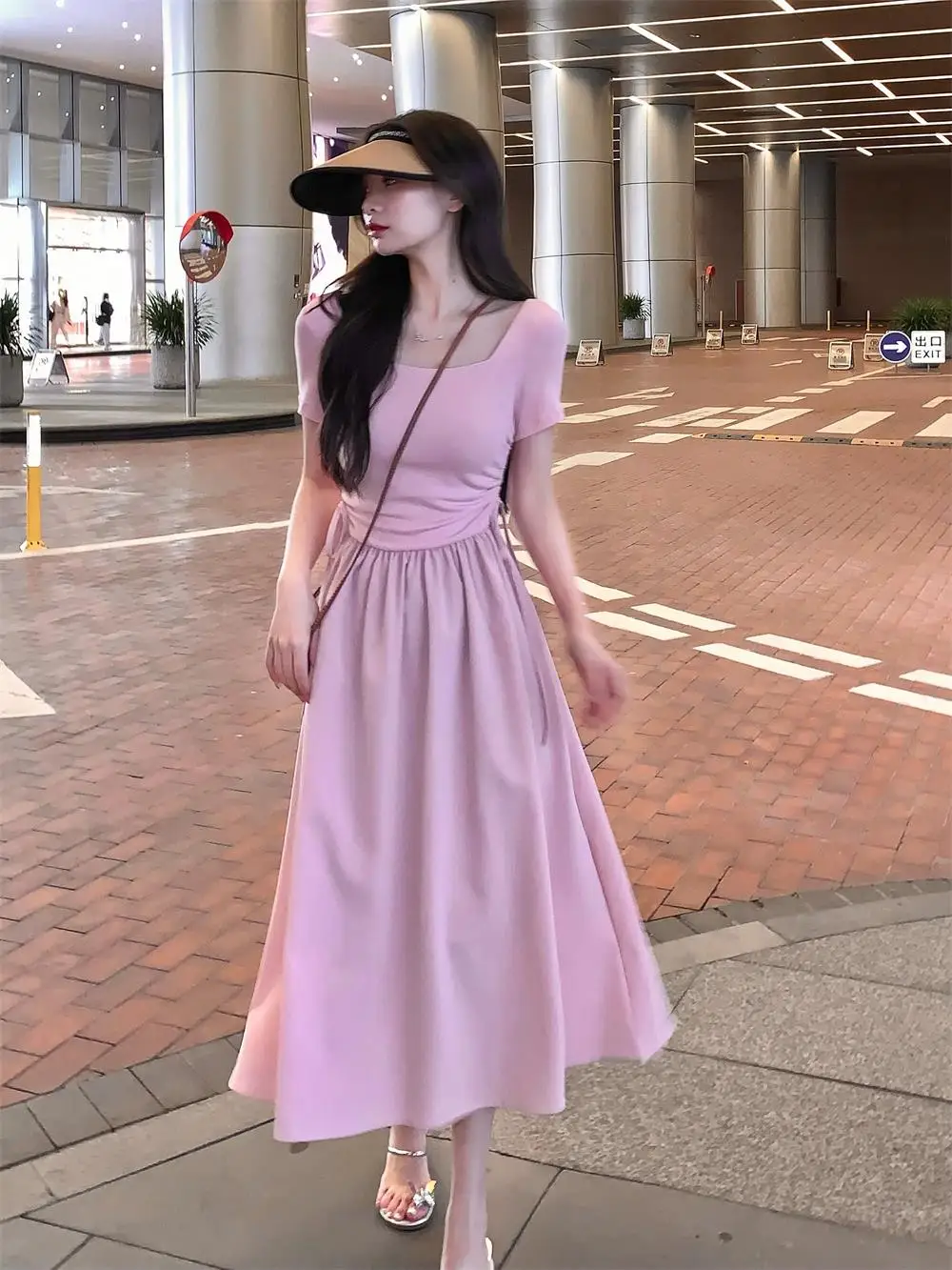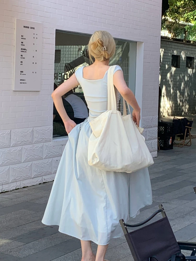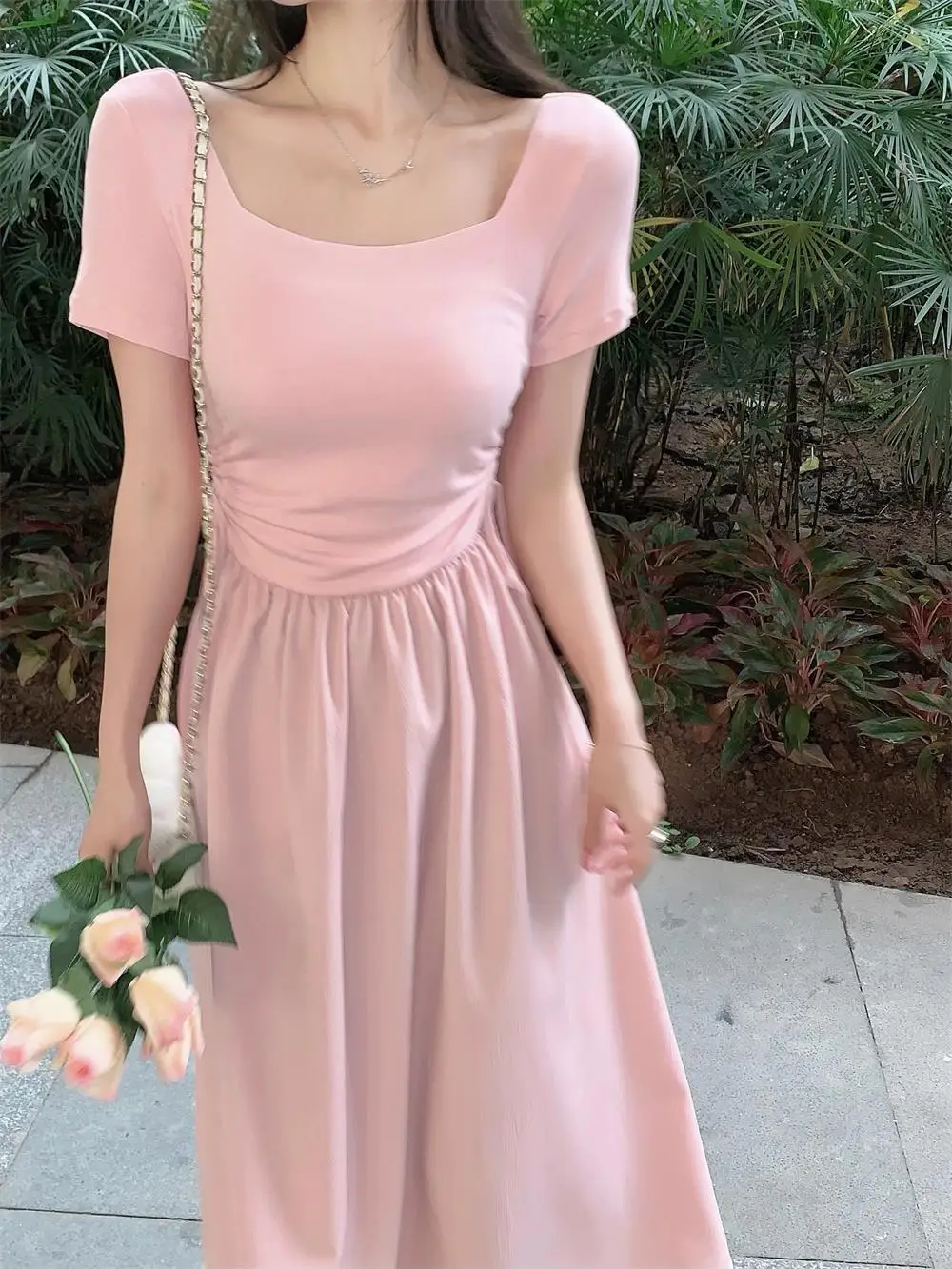 Cyflymder Summer Elegant Cotton Midi Dress Korean Short Sleeve Beach Style Sundress Party Even Office Lady Sexy Corset Dress Women