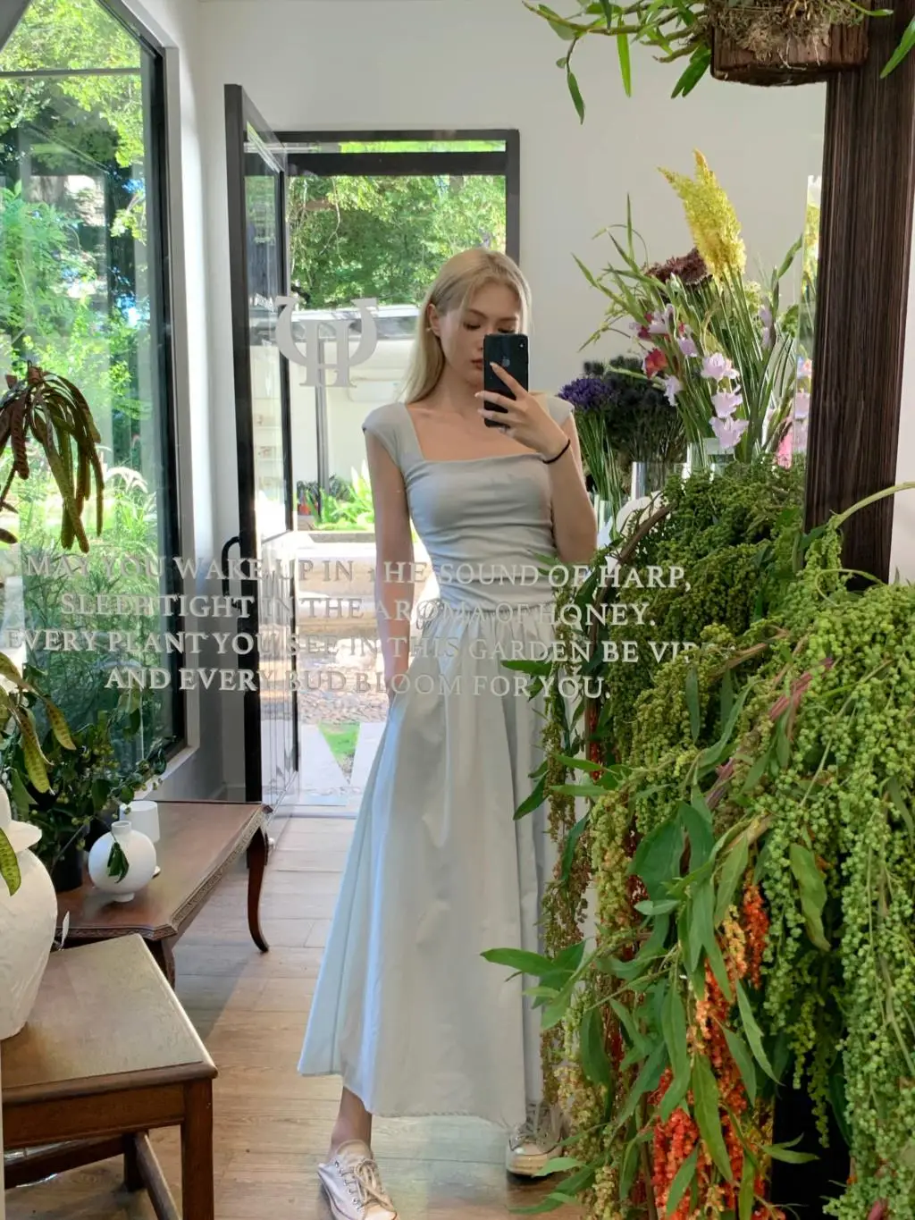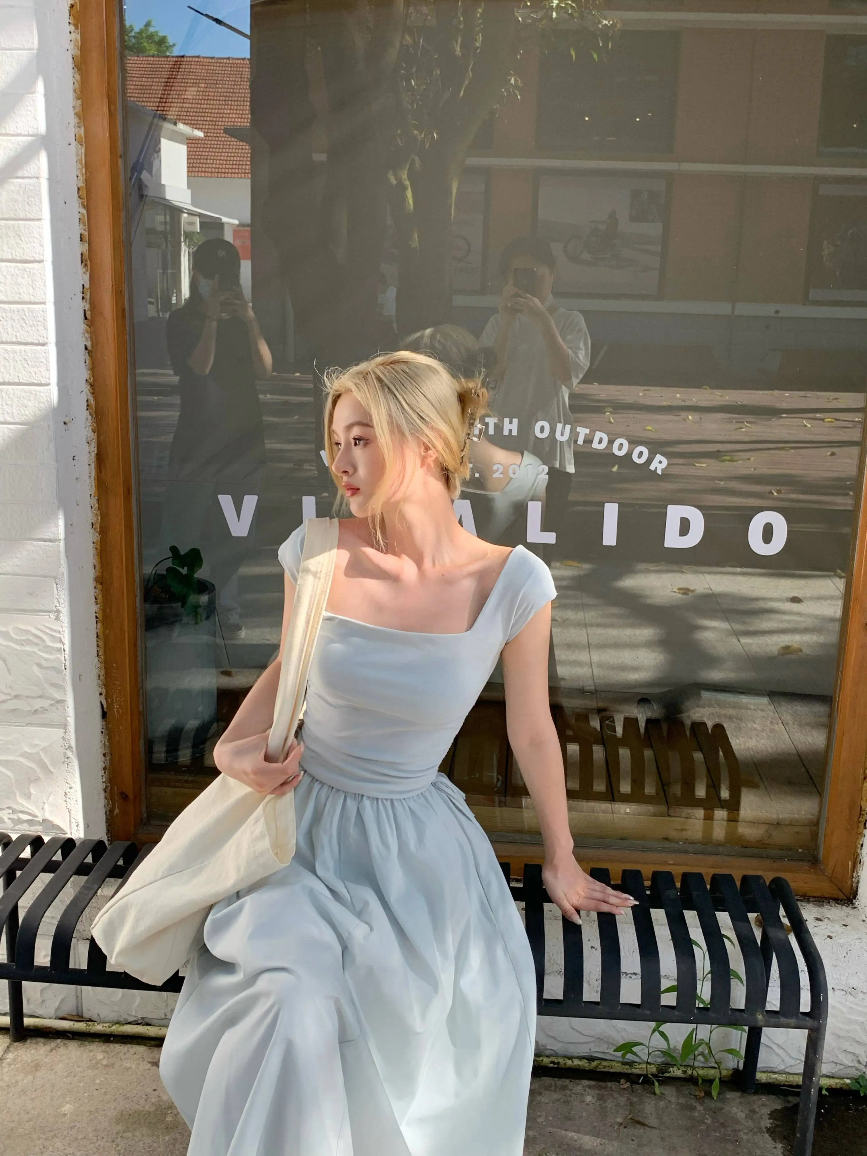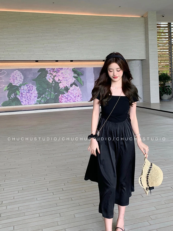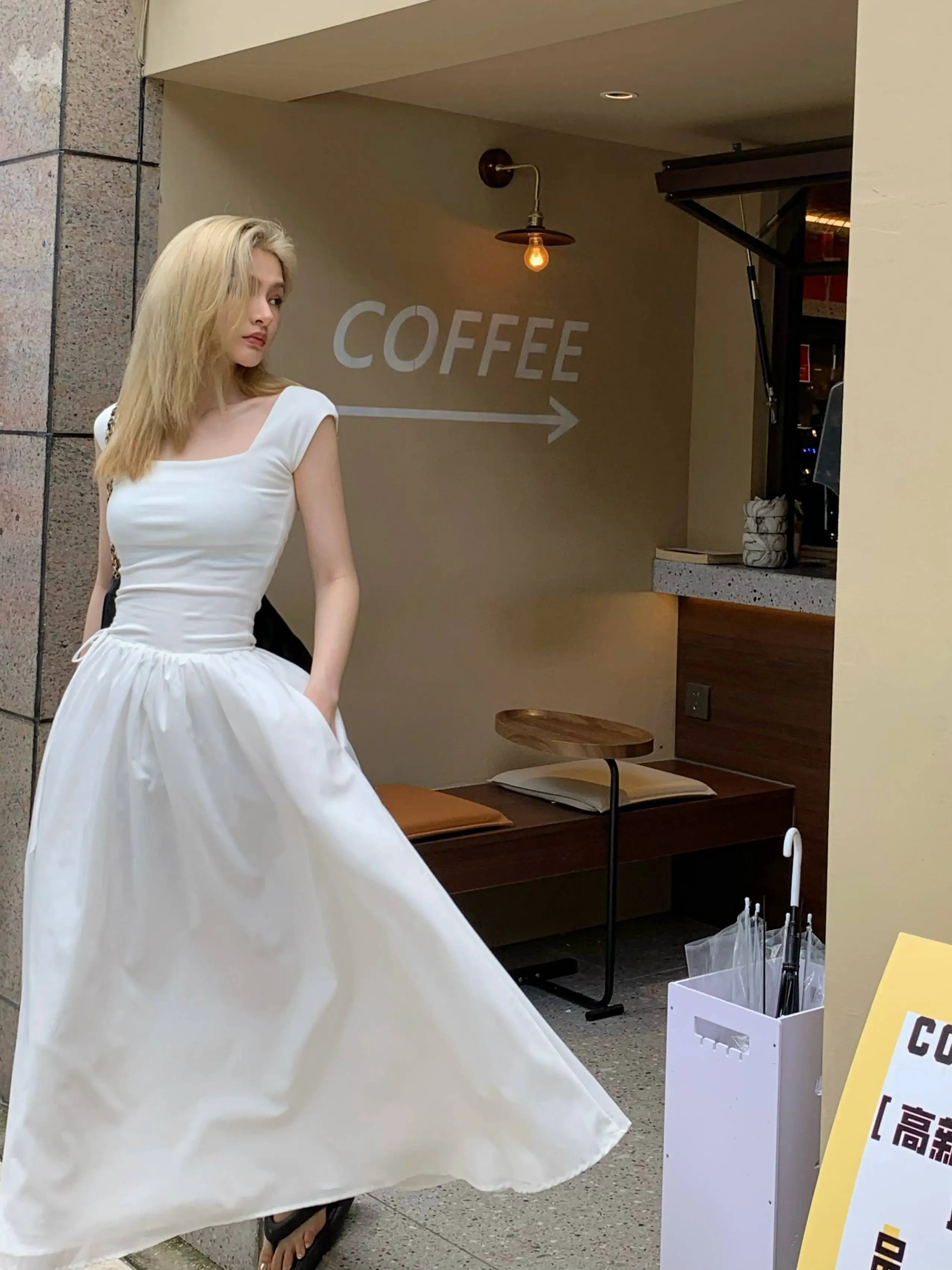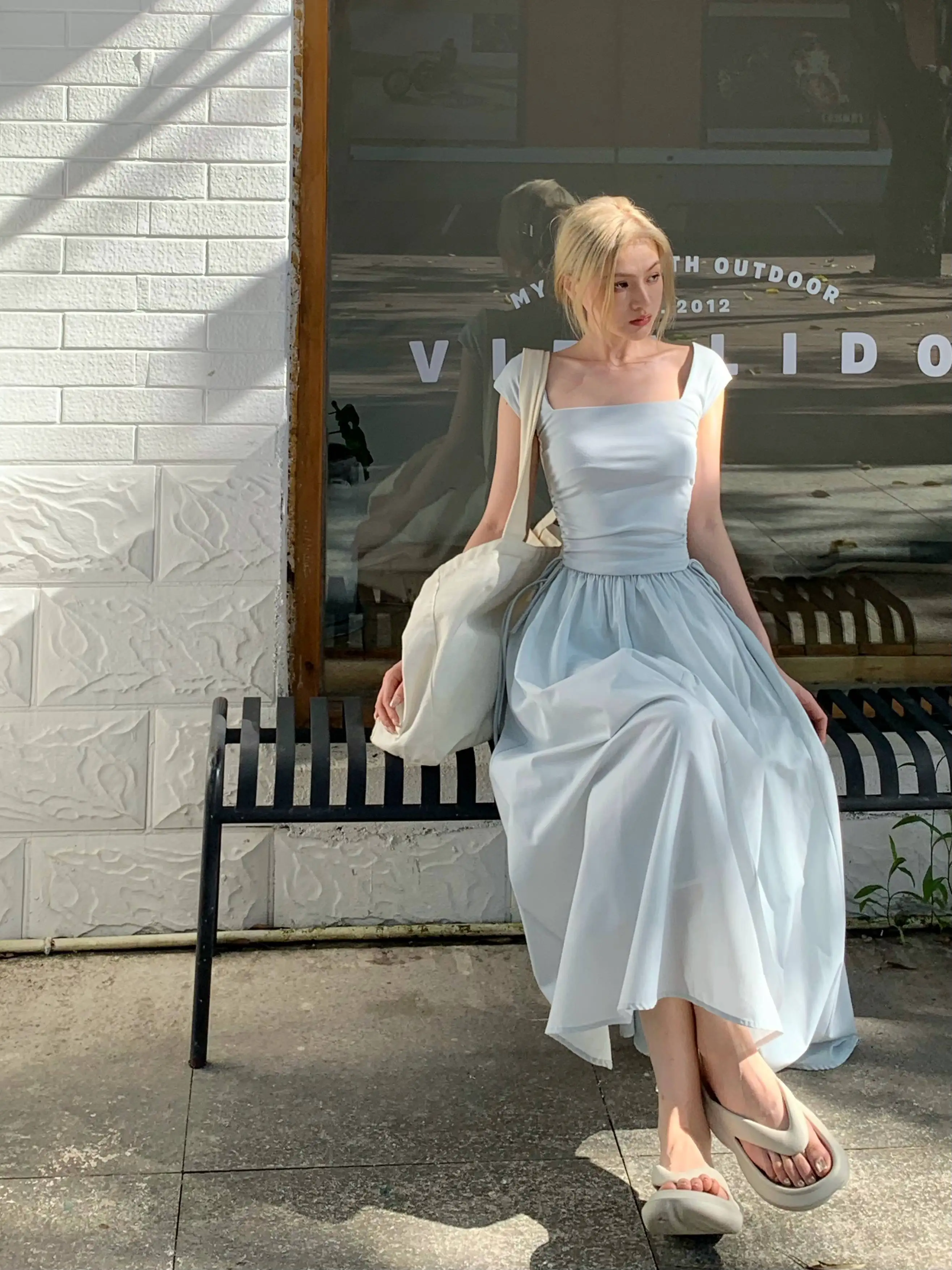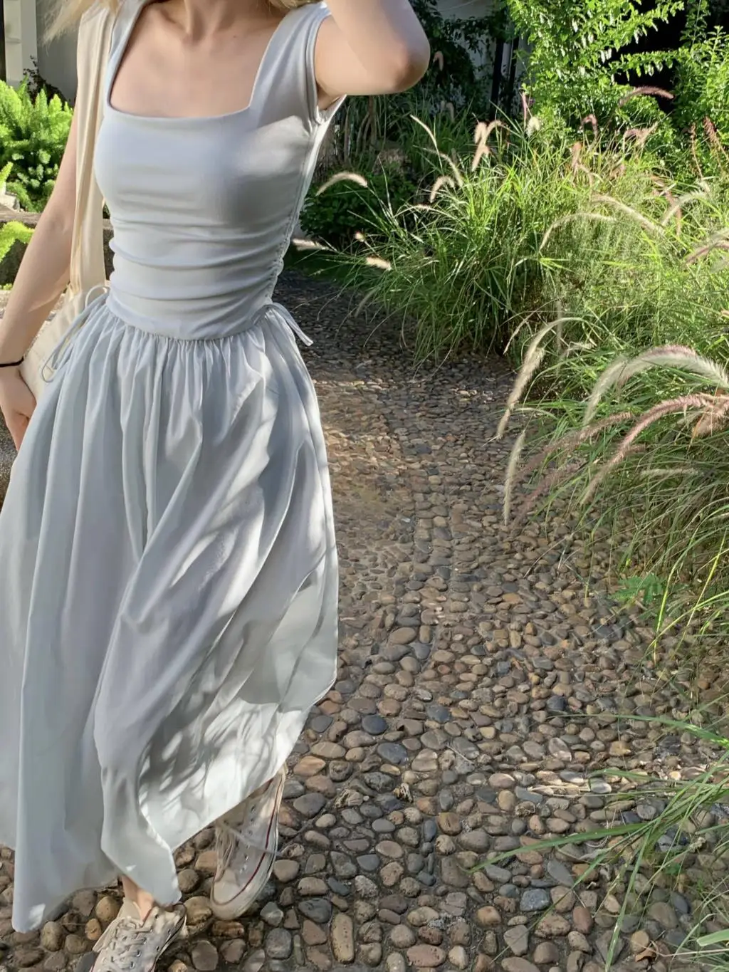 Cyflymder Summer Elegant Cotton Midi Dress Korean Short Sleeve Beach Style Sundress Party Even Office Lady Sexy Corset Dress Women