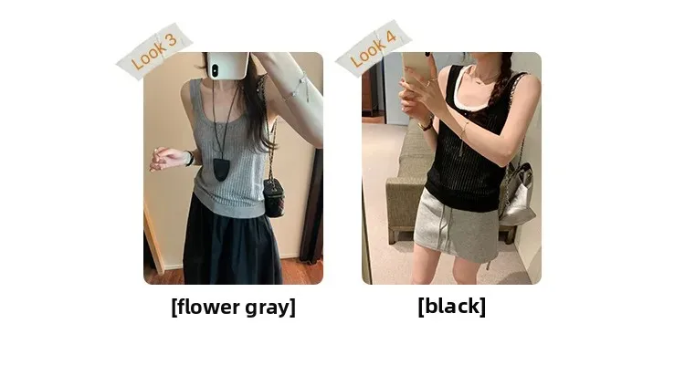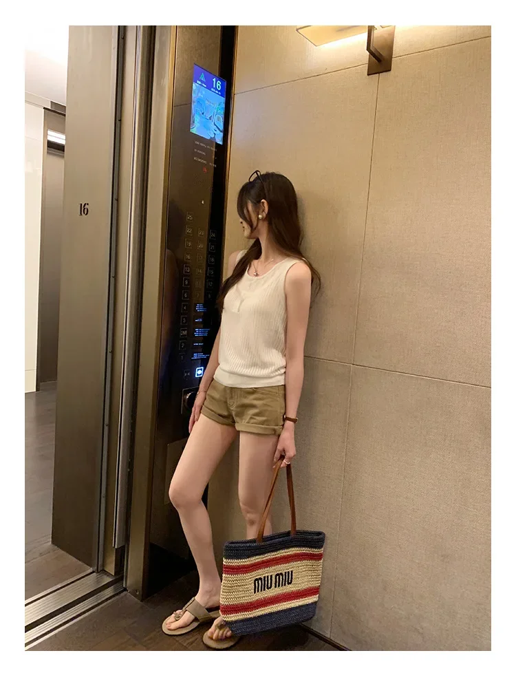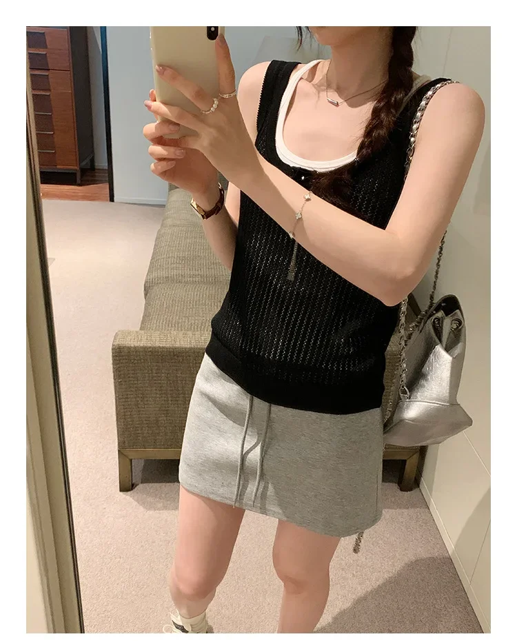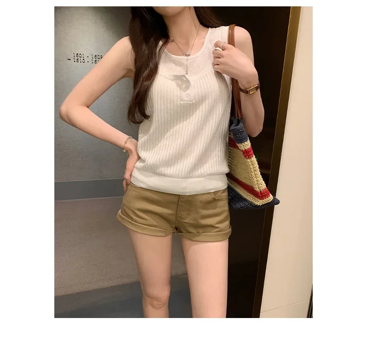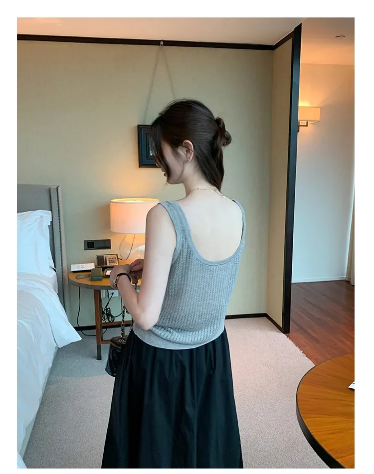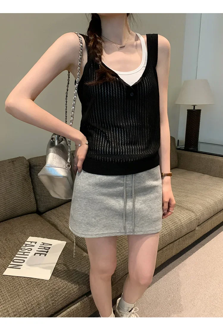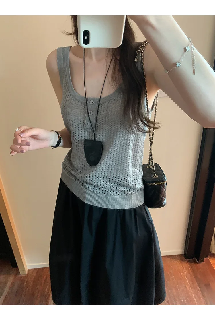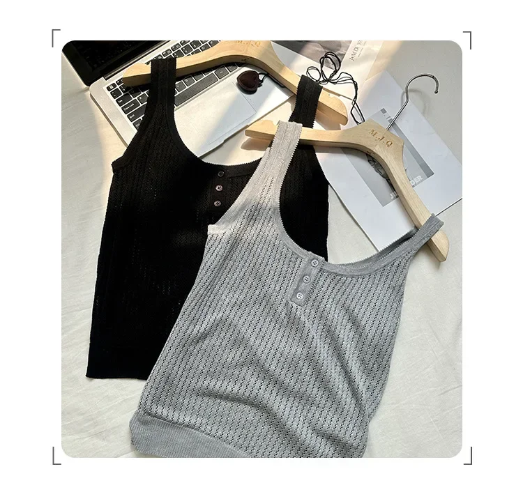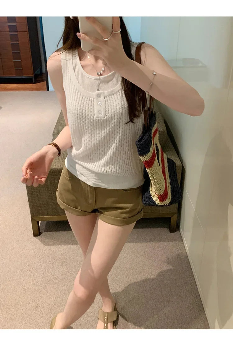 Cyflymder Summer Elegant Design Loose Knitted Vest Women's Thin Button up Top Outerwear Short Shirt Casual Fashion Minimalist Style