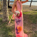 Cyflymder Summer Floral Print Beach Party Dress Women's Sexy Halter Backless Hollow Out Vacation Dress Elegant Hight Waist Slim Long Dress
