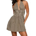 Cyflymder Summer Halter Mini Dress Women Plaid Print V Neck Sleeveless Backless A Line Dress Casual Party Dresses Streetwear