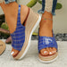 Cyflymder Summer New Buckle Slope Heel Women's Sandals Summer Checkered Pattern Thick Bottom Non slip Beach Shoes