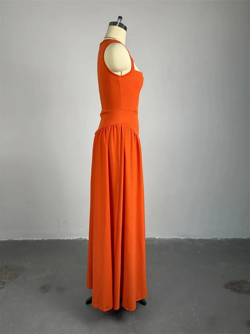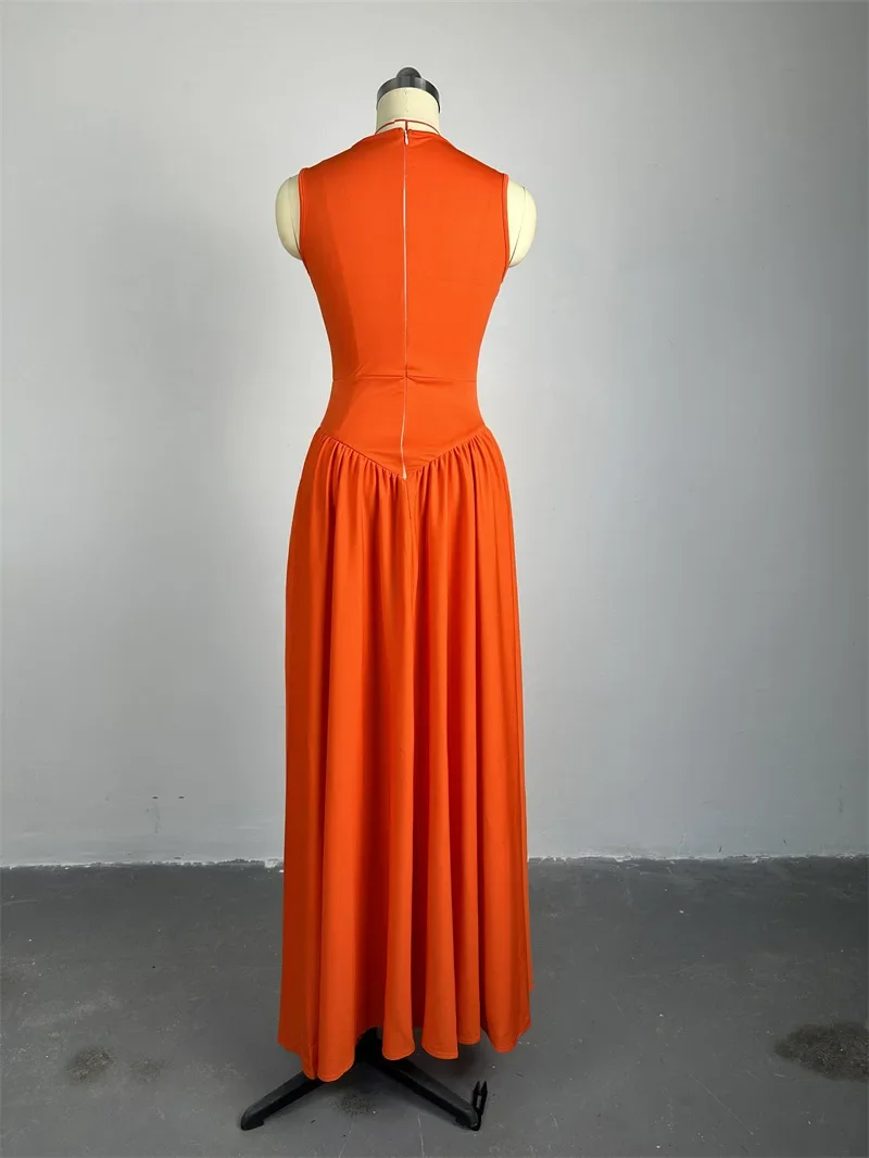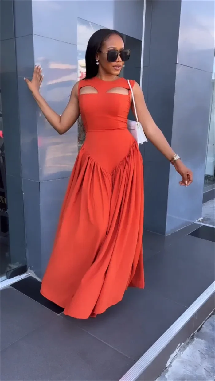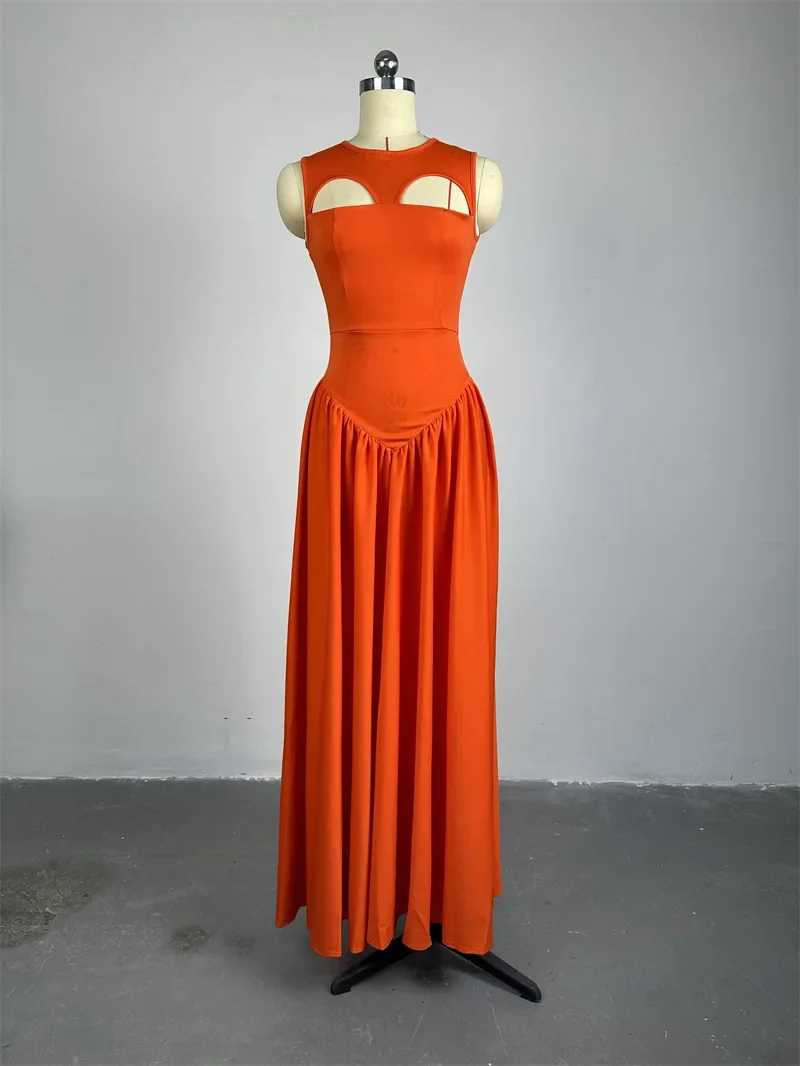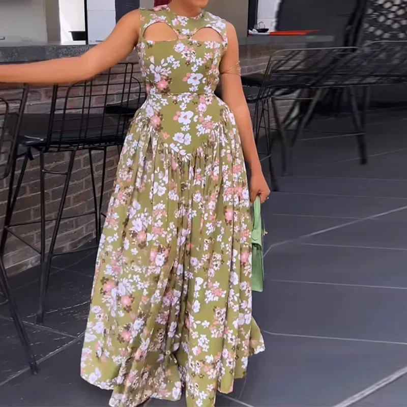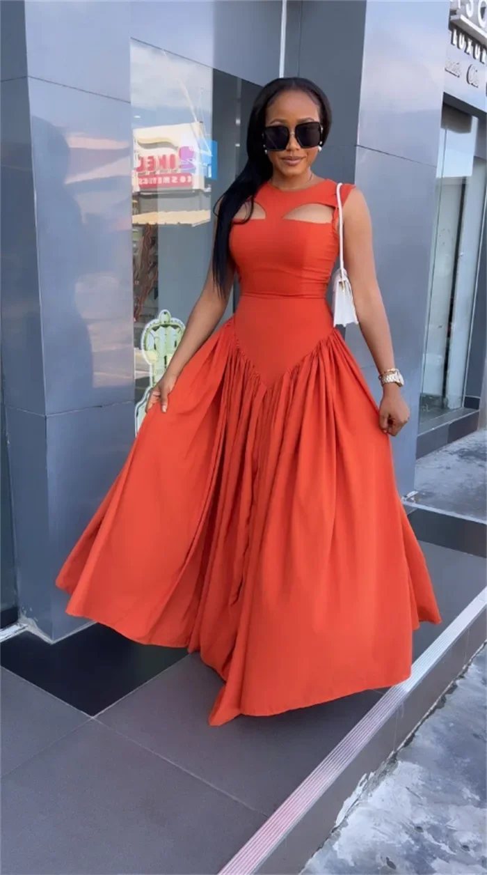 Cyflymder Summer New Elegant Round Neck Hollow Out Slimming Dress For Women Clothing Cross-border Sleeveless Medium-length Dress