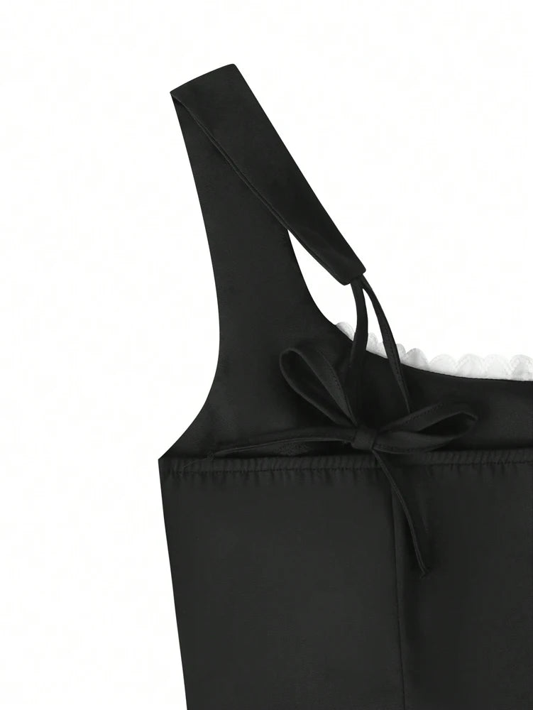 Cyflymder Summer New Ladies Basic Sexy Mini Skirt Camisole Dresses Women Solid Color Polyester Sexy Out Wear Lace