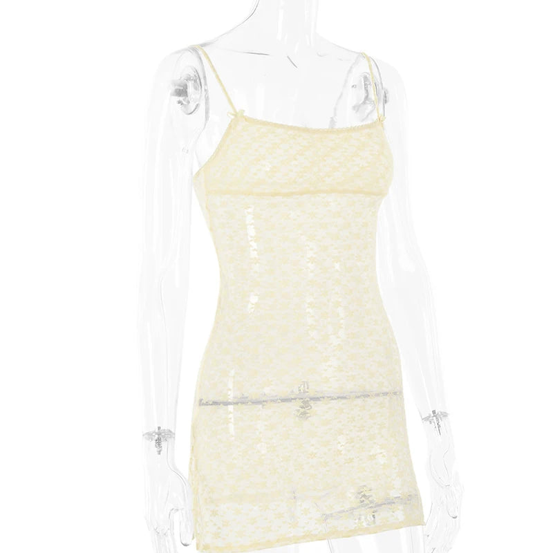 Cyflymder Summer New Perspective Split Mini Tank Dress Bow Trim Straps Backless Sleeveless Simple Chic Thin Dress Women Slim Clubwear