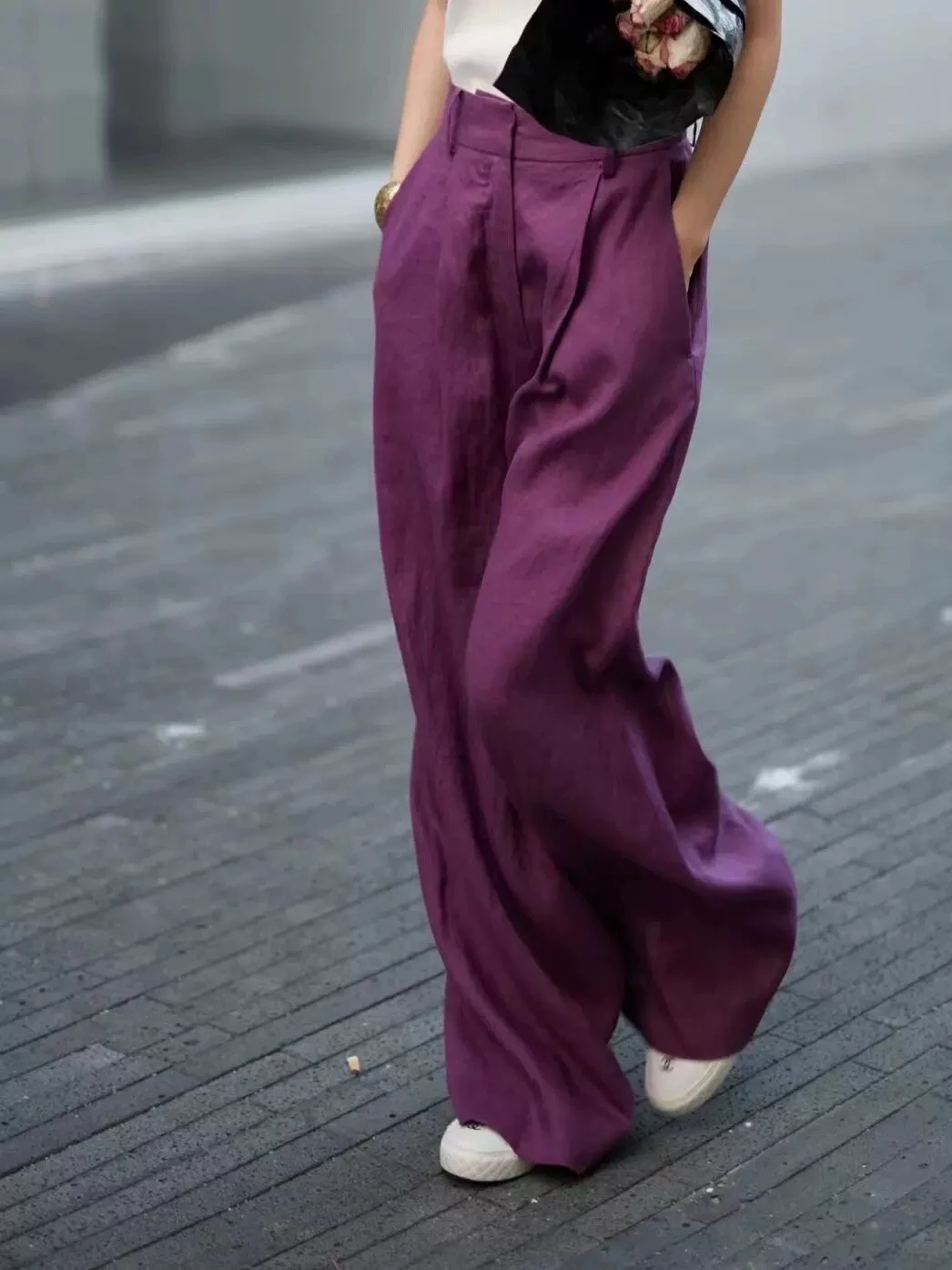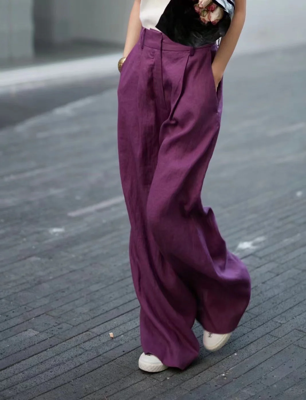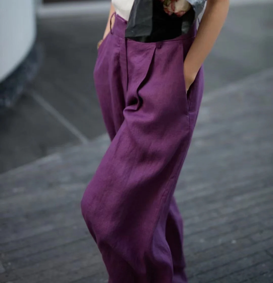 Cyflymder Summer New Sle Purple Cotton Linen Wide Leg Pants Women's Casual Suit Pants High Waist Straight Leg Thinming Commute Wind