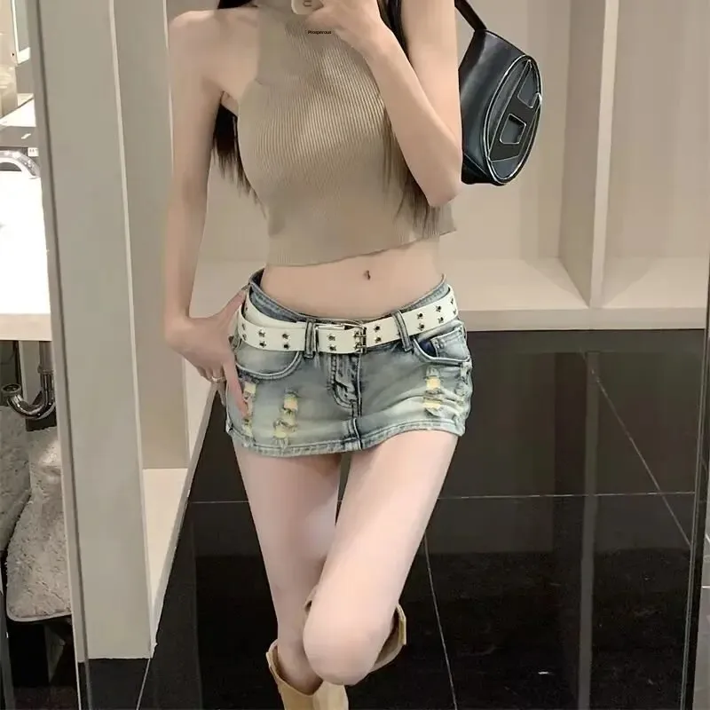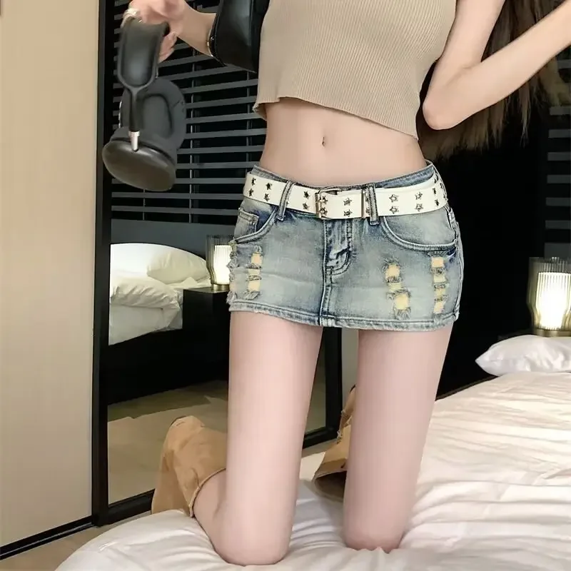 Cyflymder Summer New Style Sexy Low Waist Denim Mini Dress Women's Elastic Tightening Hip Covering Anti-Exposure Skirt