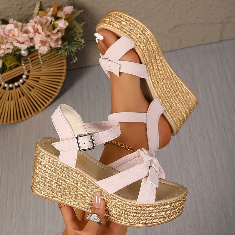 Cyflymder Summer New Thick Bottom Wedge Sandals Women's Thick Bottom Sandals Fashion Ankle Strap High Heel Sandals