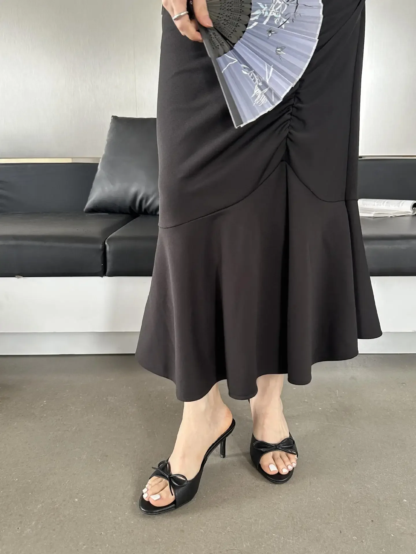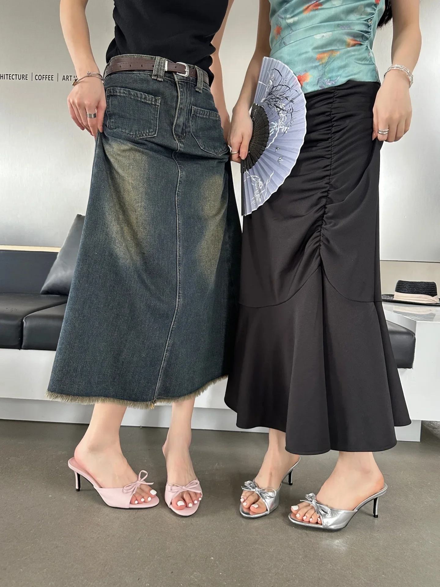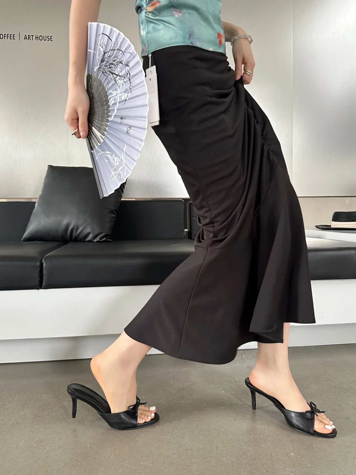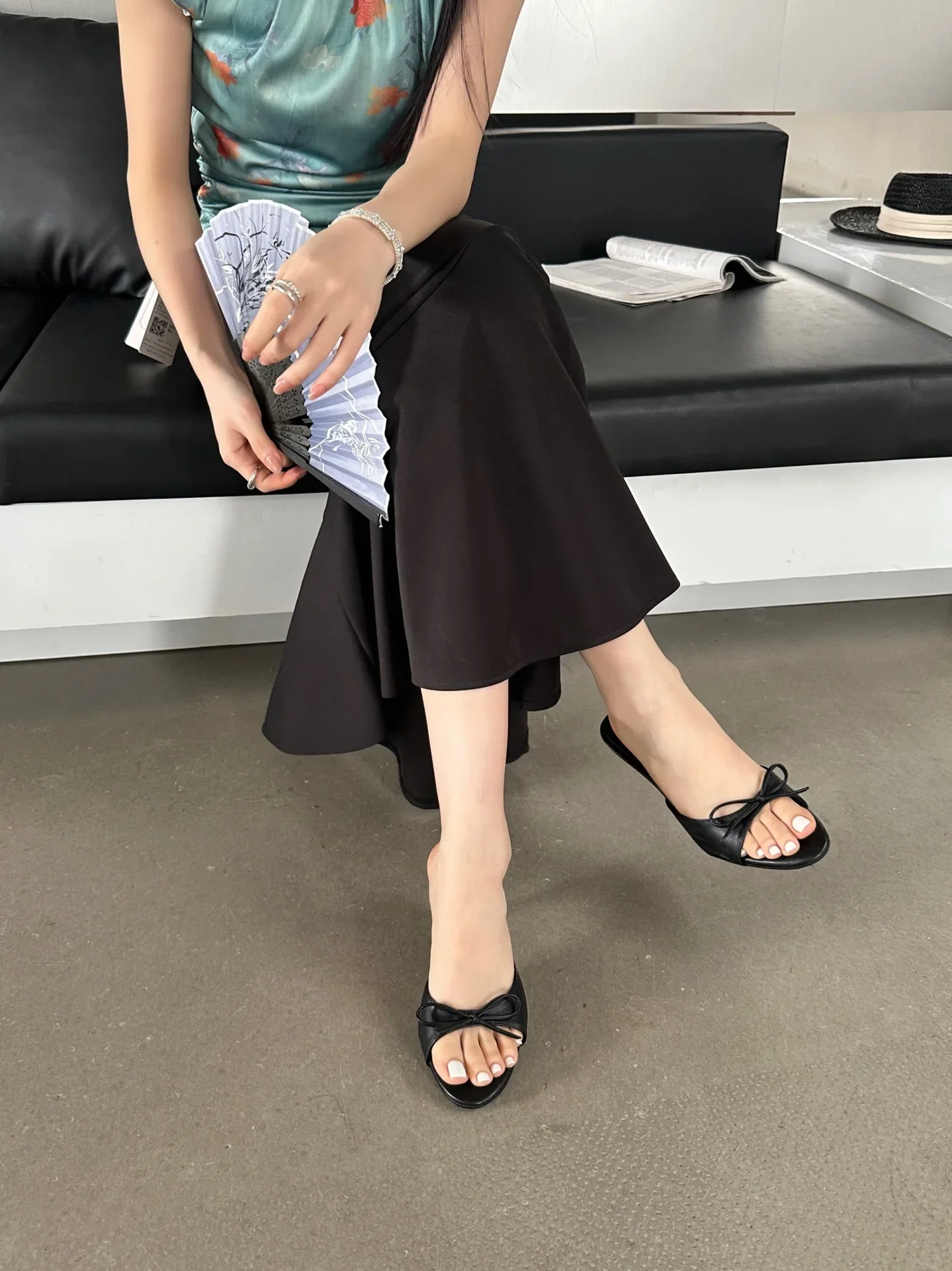 Cyflymder Summer New Women's Slippers Bow Toe Fine Heel Medium Heel Drag Shoes Outer Wear High Heel Women's Sandals 40 Yards