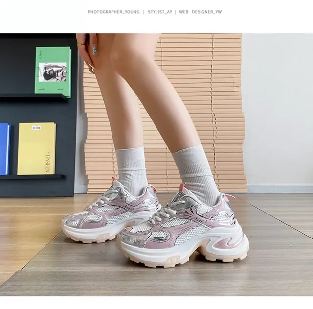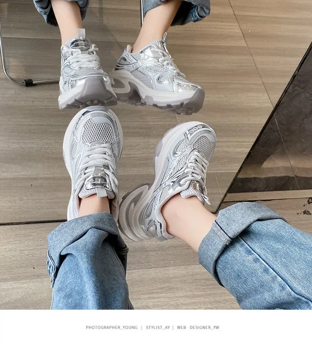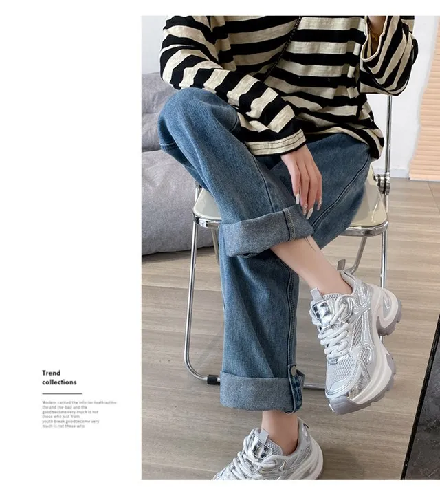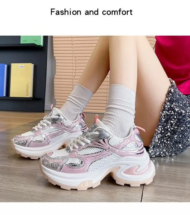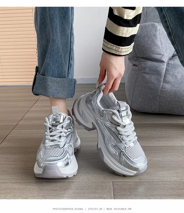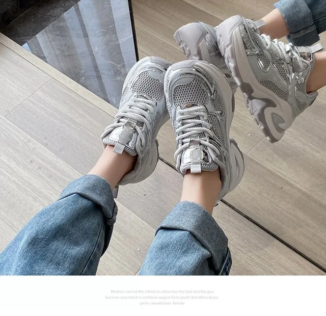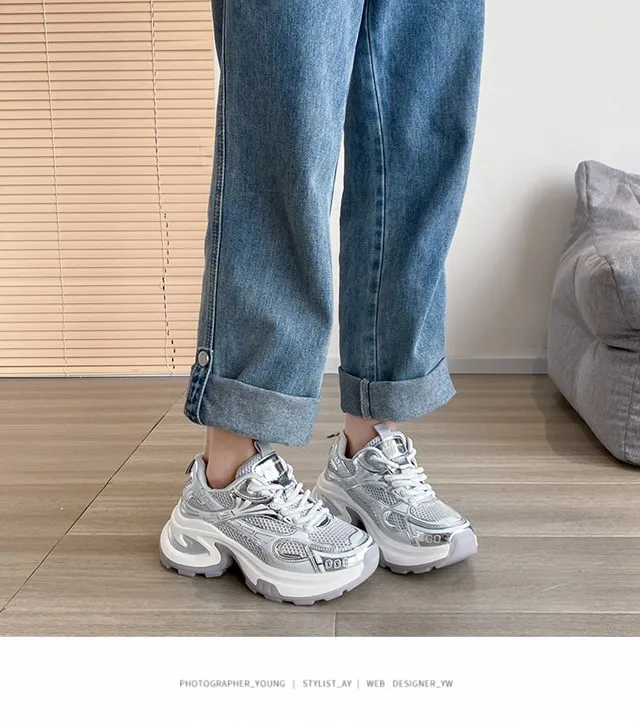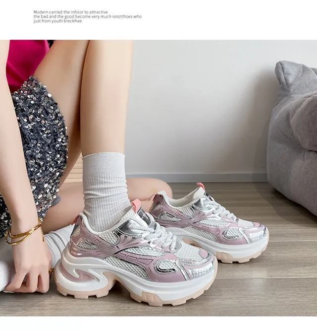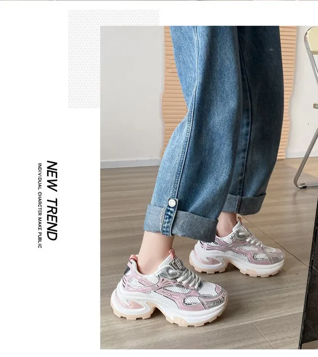 Cyflymder Summer New Women's Sneakers Versatile Casual Shoes Lightweight Soft Bottom Thick Base Mesh Face Ins Trendy Shoes