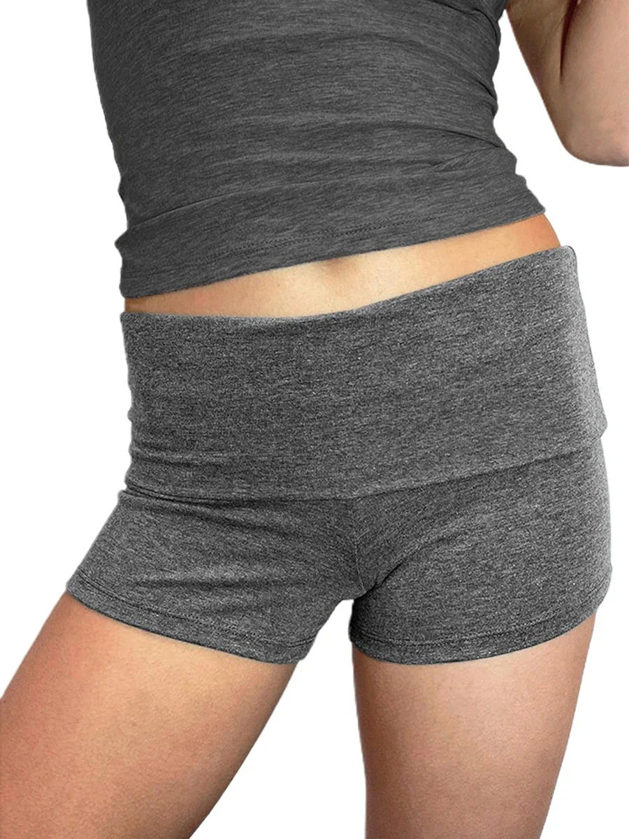 Cyflymder Summer Slim Yoga Shorts Women Casual Solid Color Fold Over Low Waist Lounge Shorts