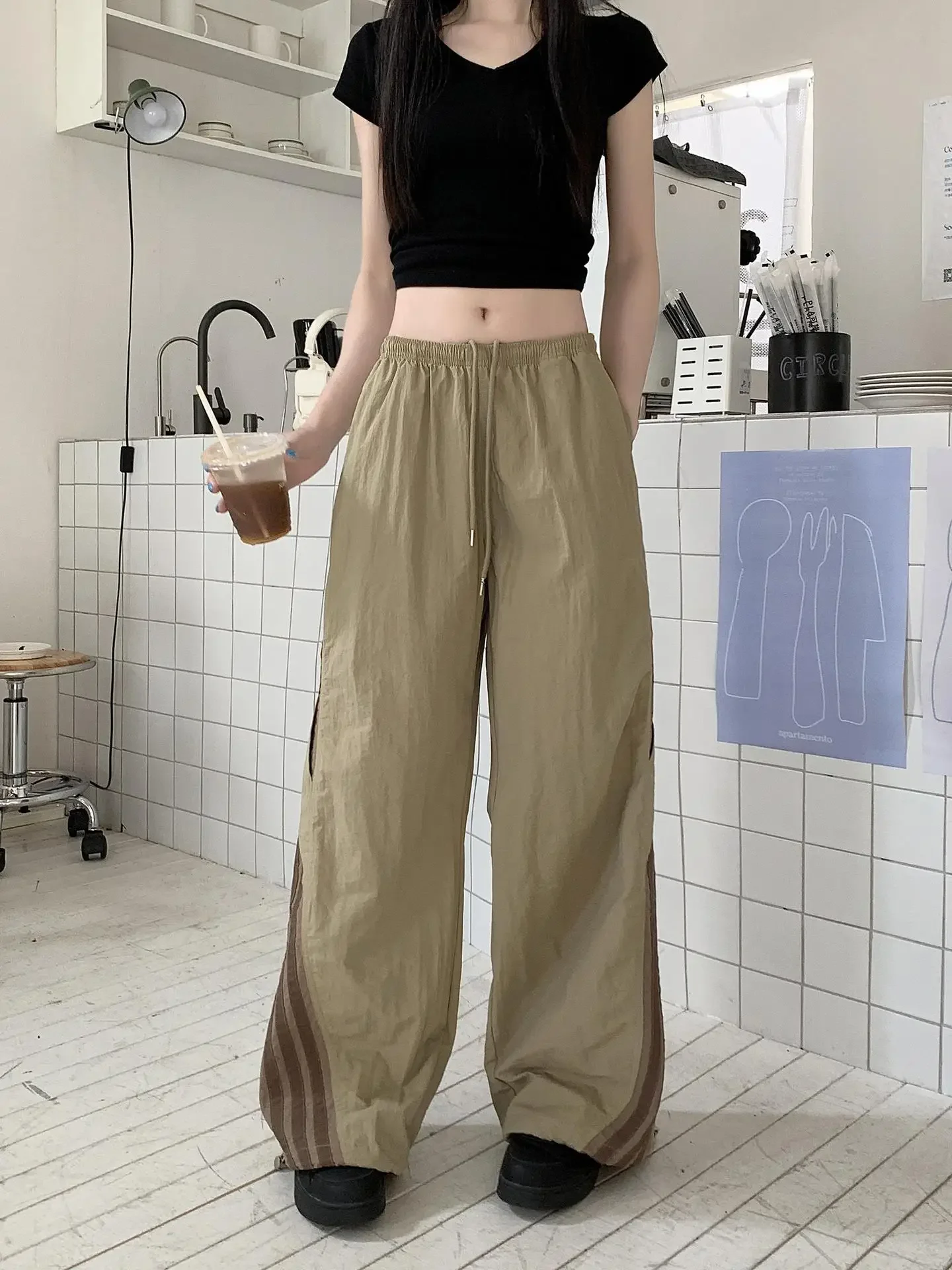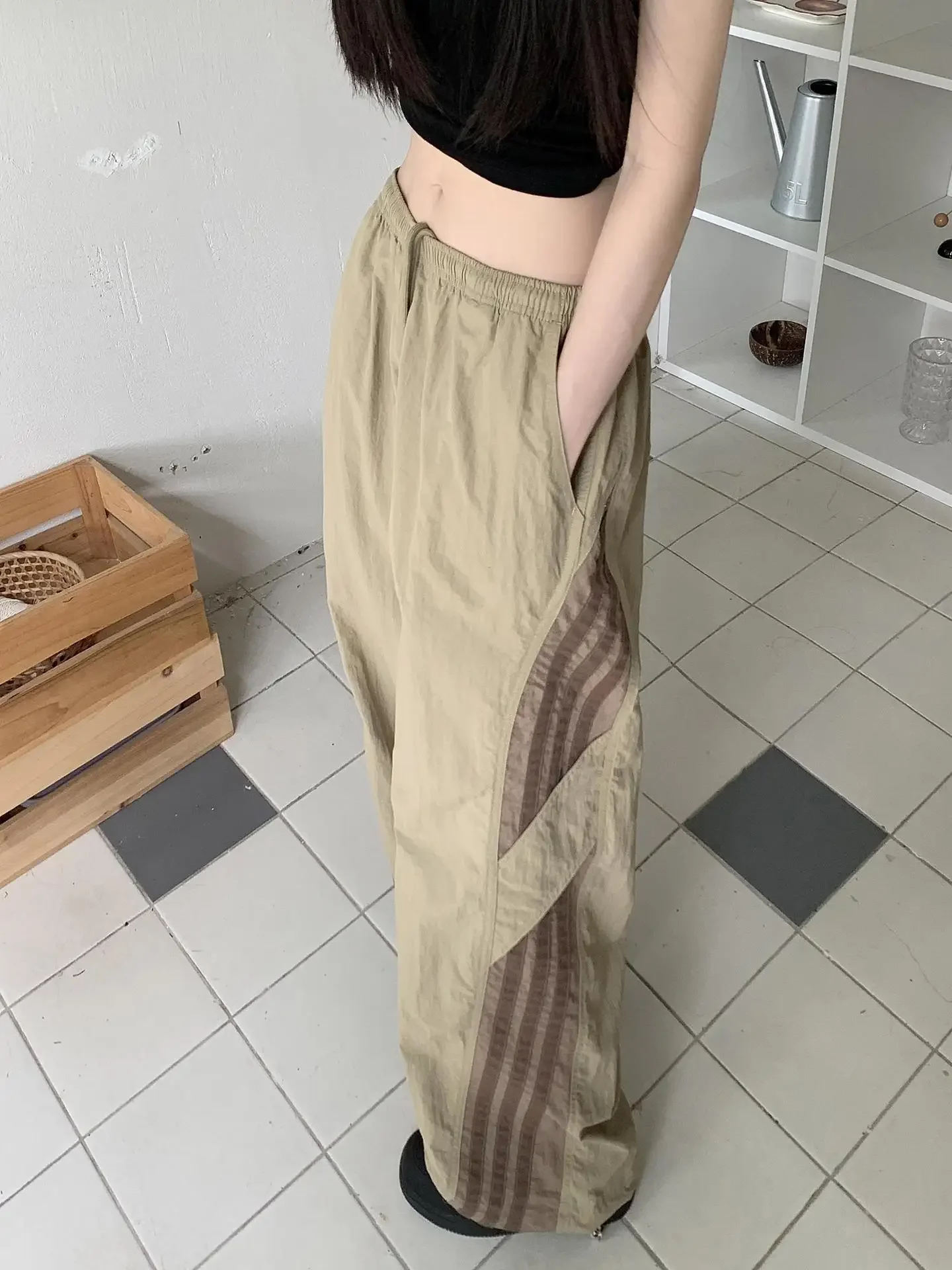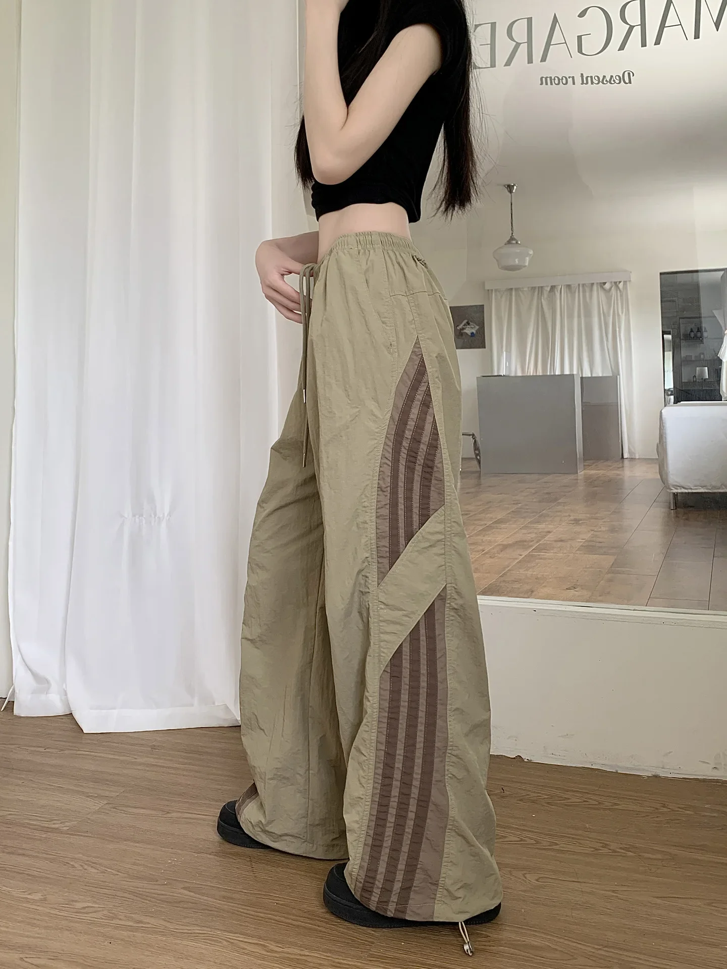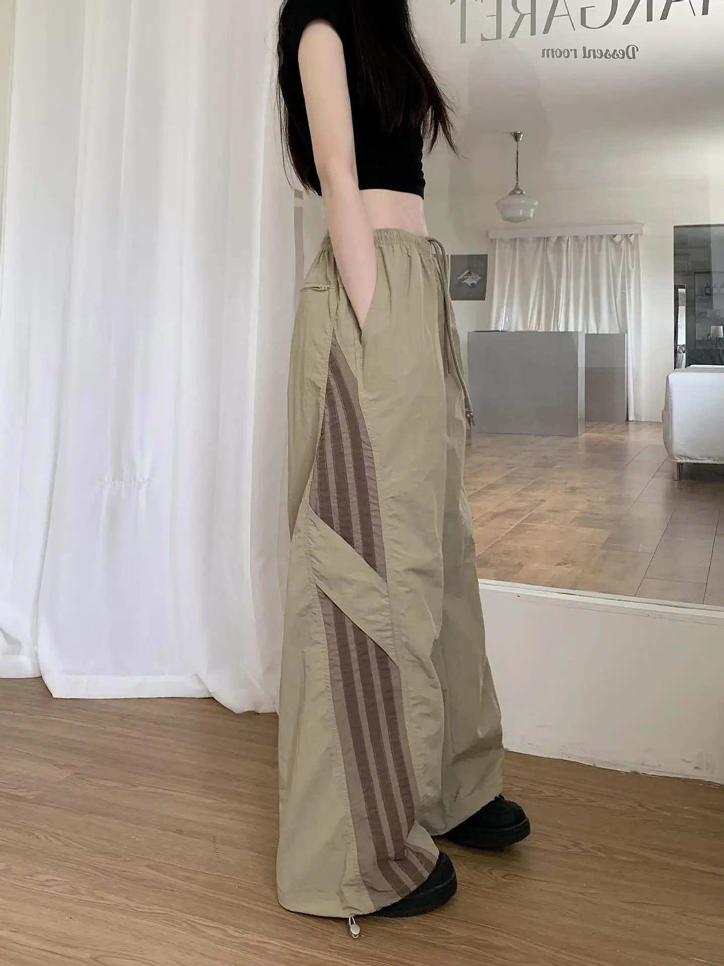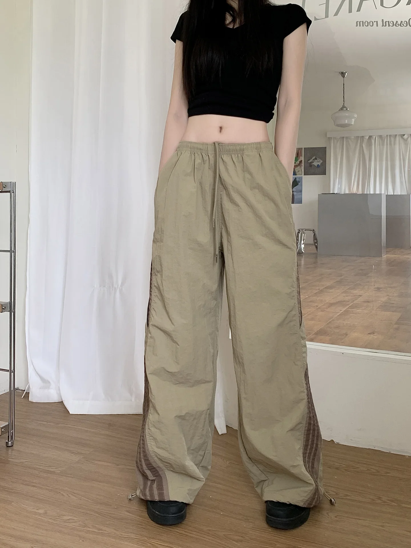 Cyflymder Summer Thin Striped Men's Sweatpants Trendy Brand Loose-Fit Cargo Pants Casual Straight-Leg Pants Three-Stripe Ice Silk Quick-Dr