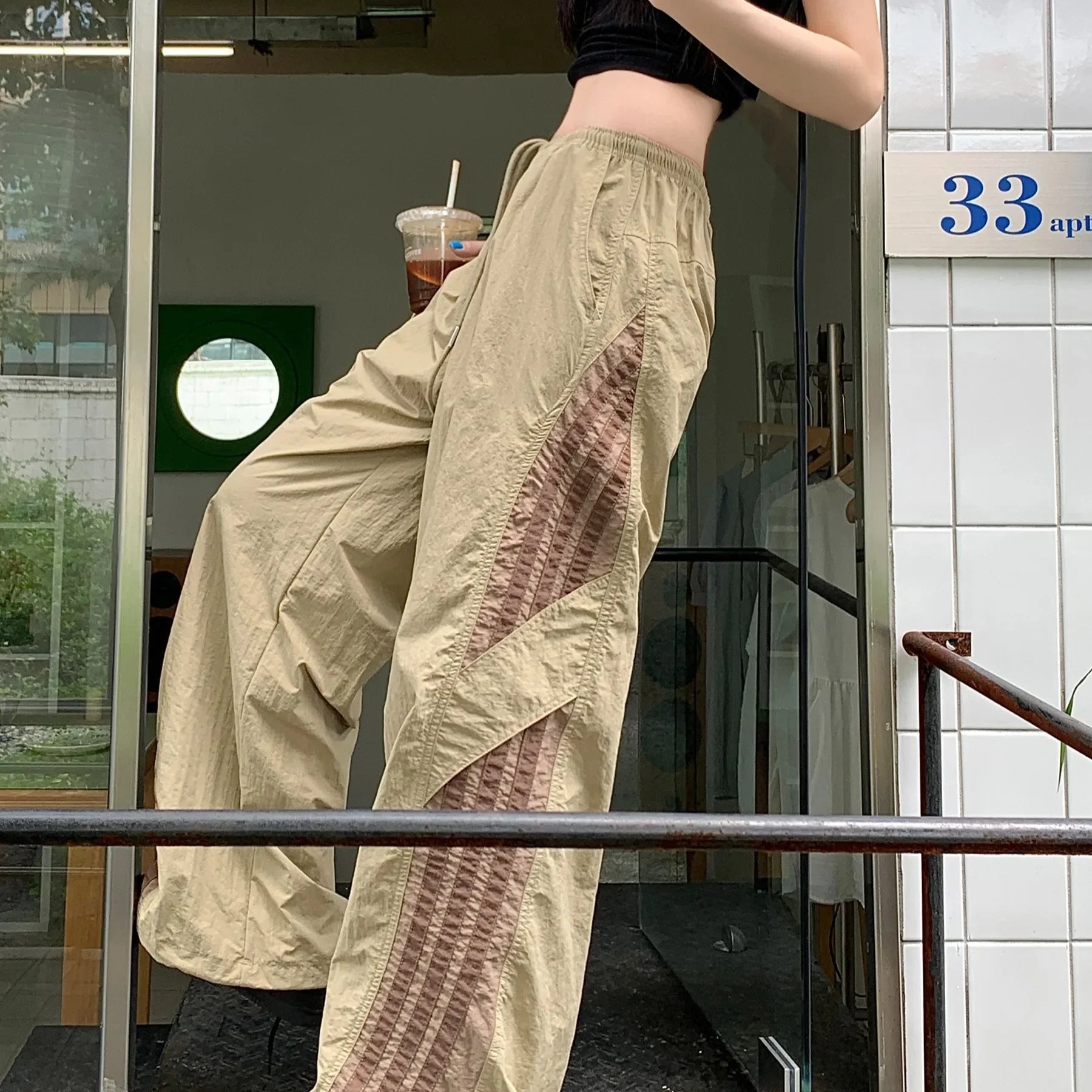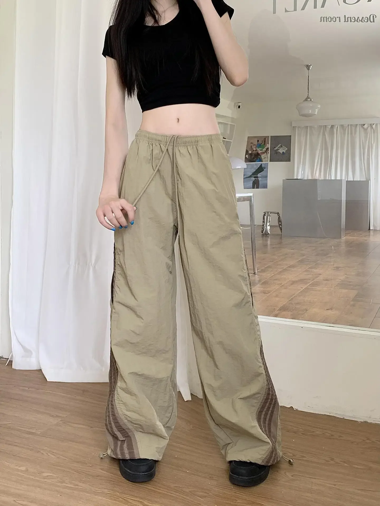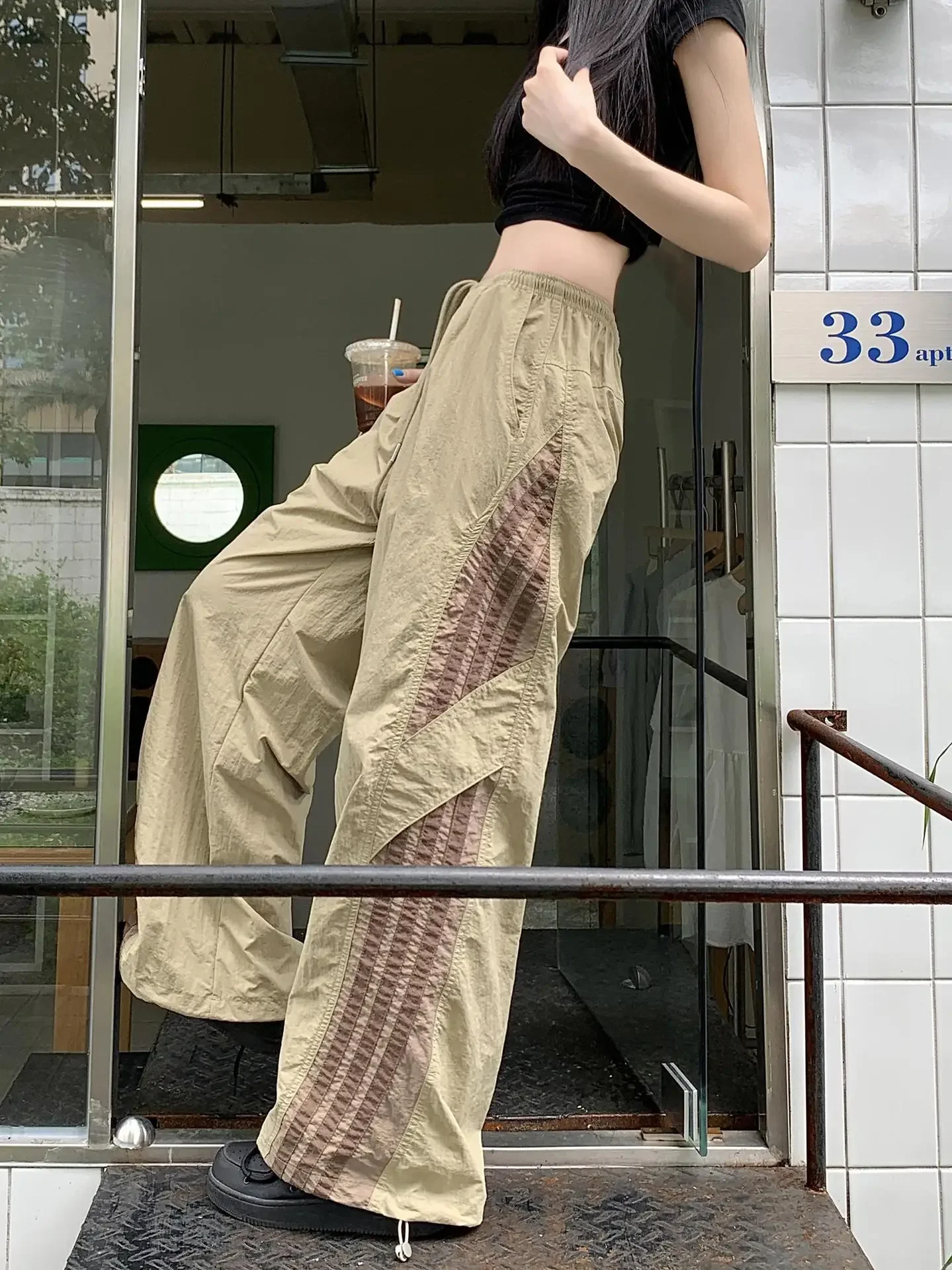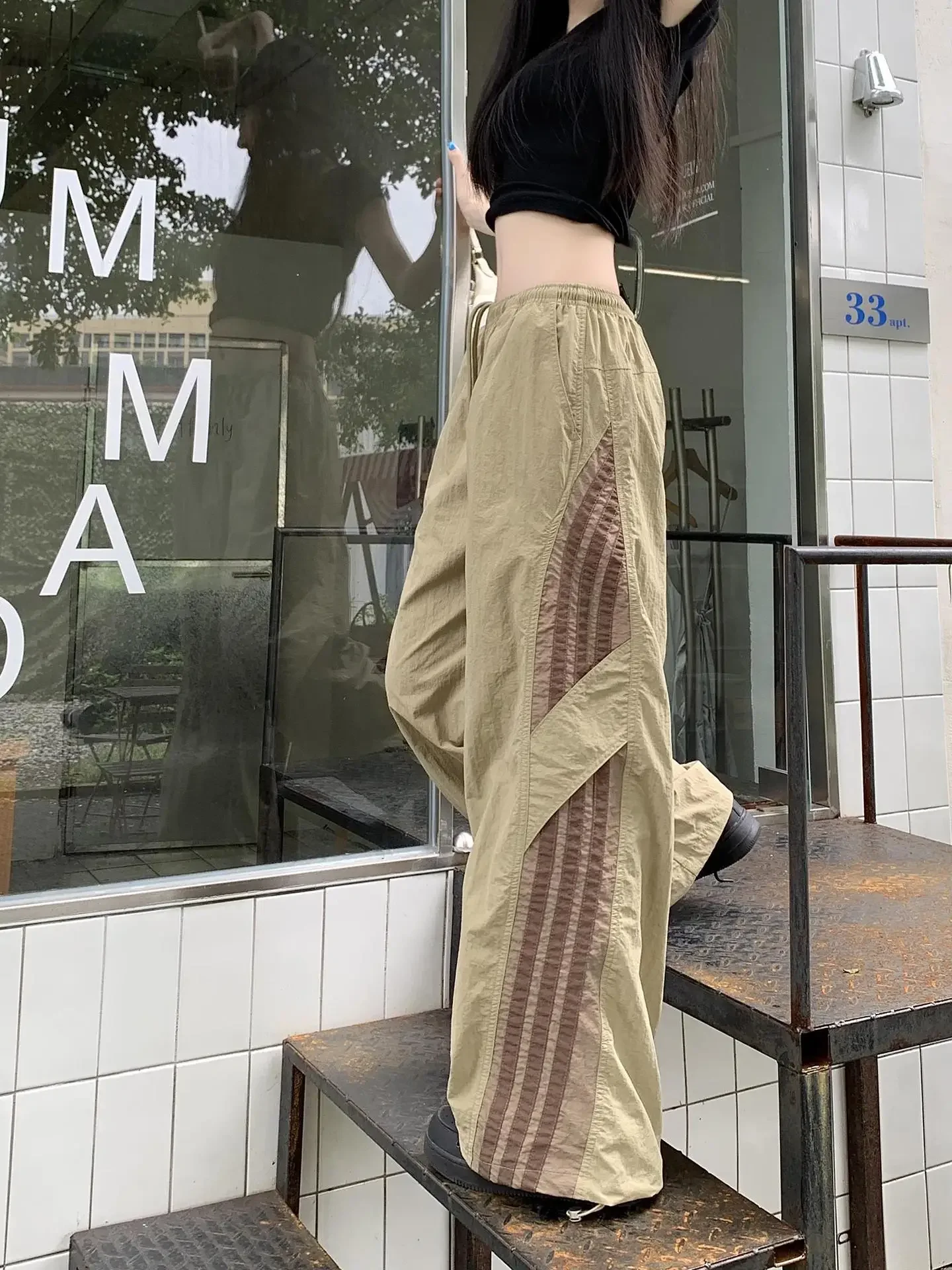 Cyflymder Summer Thin Striped Men's Sweatpants Trendy Brand Loose-Fit Cargo Pants Casual Straight-Leg Pants Three-Stripe Ice Silk Quick-Dr