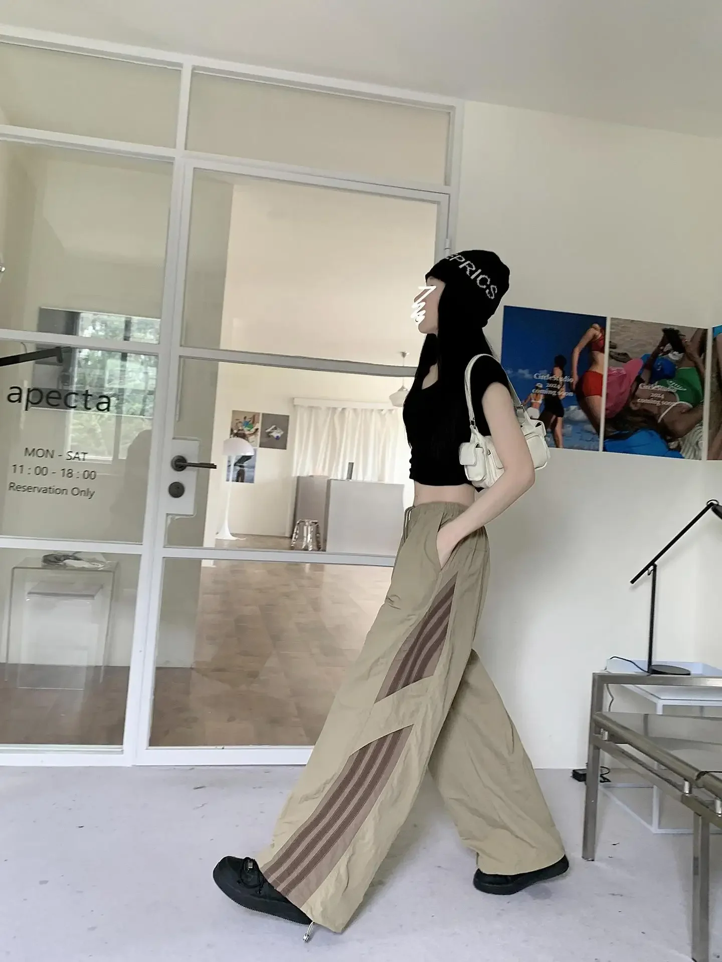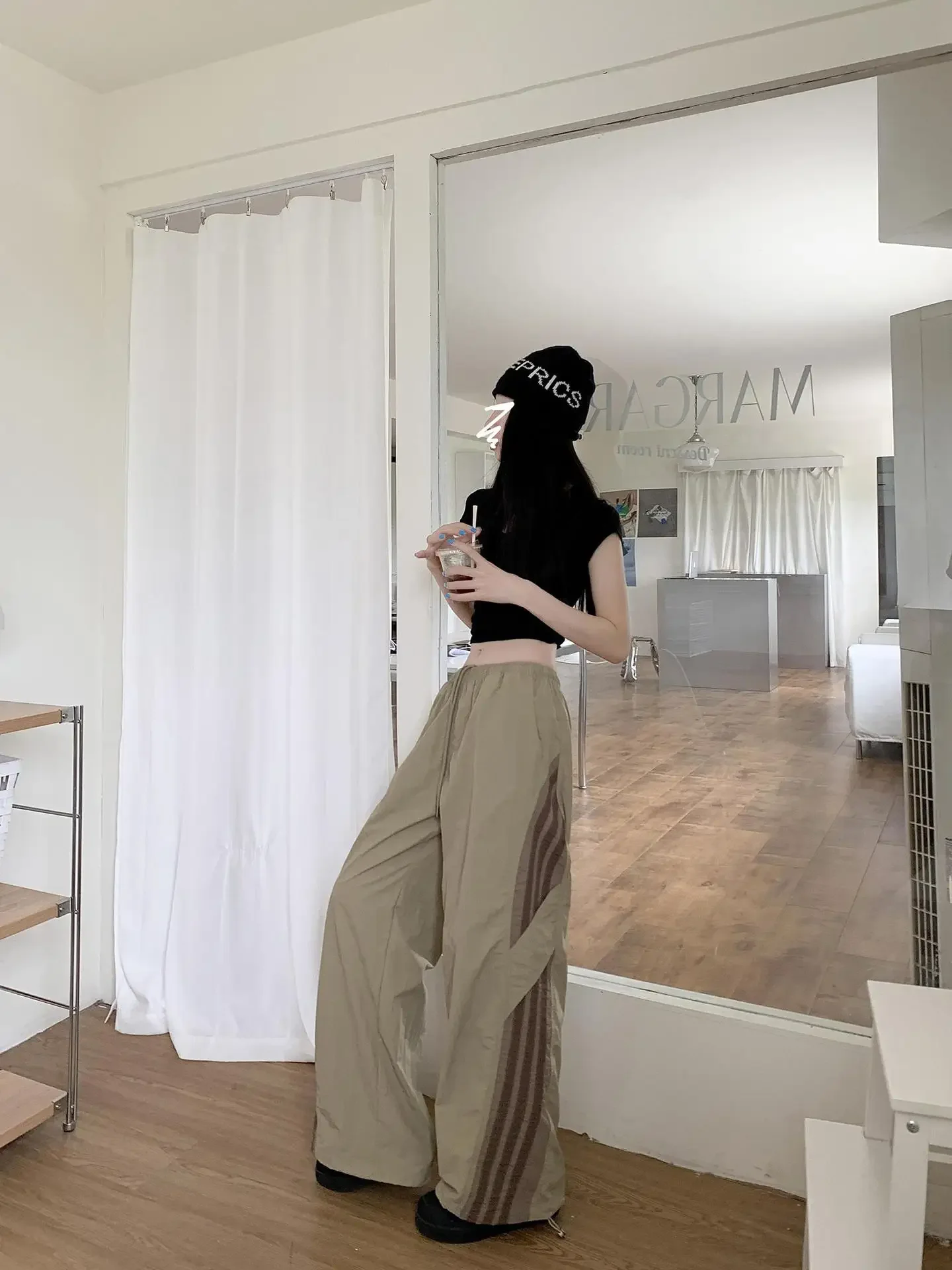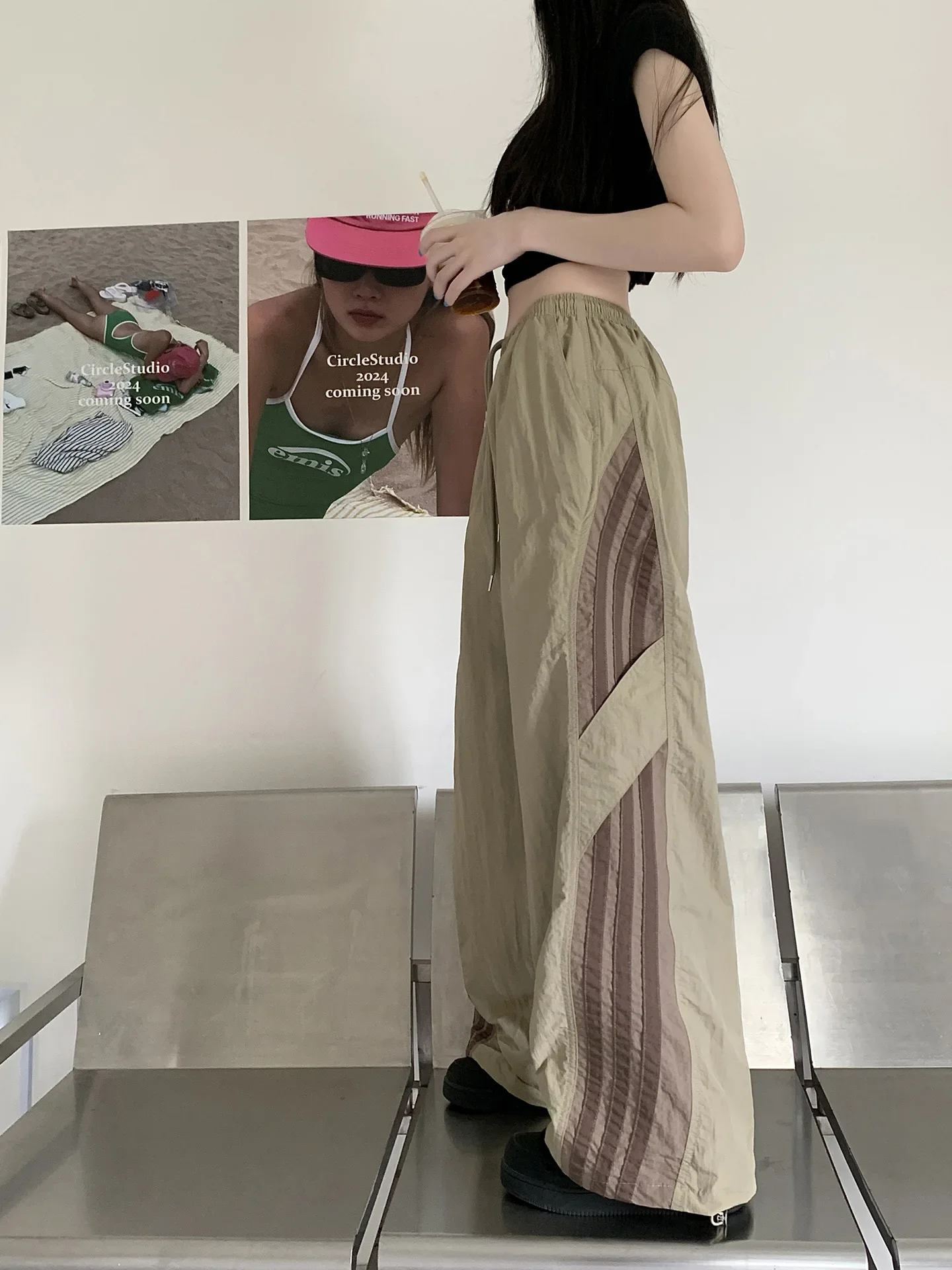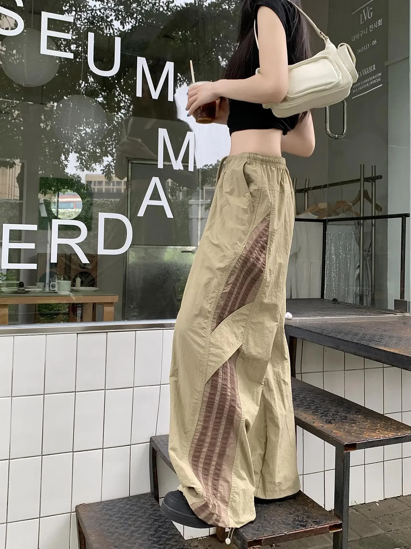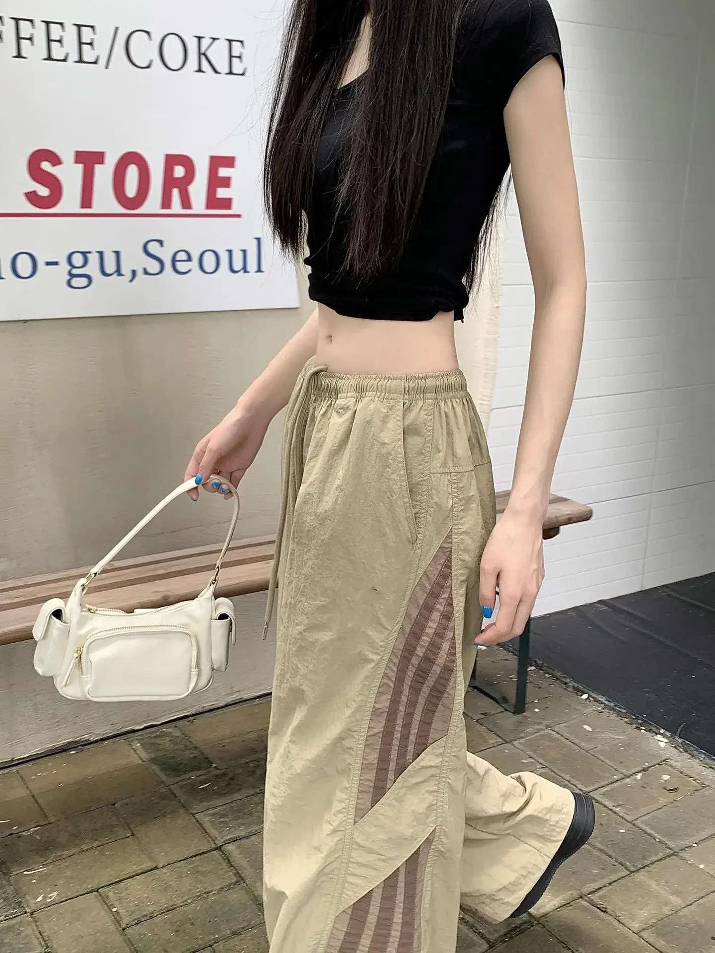 Cyflymder Summer Thin Striped Men's Sweatpants Trendy Brand Loose-Fit Cargo Pants Casual Straight-Leg Pants Three-Stripe Ice Silk Quick-Dr