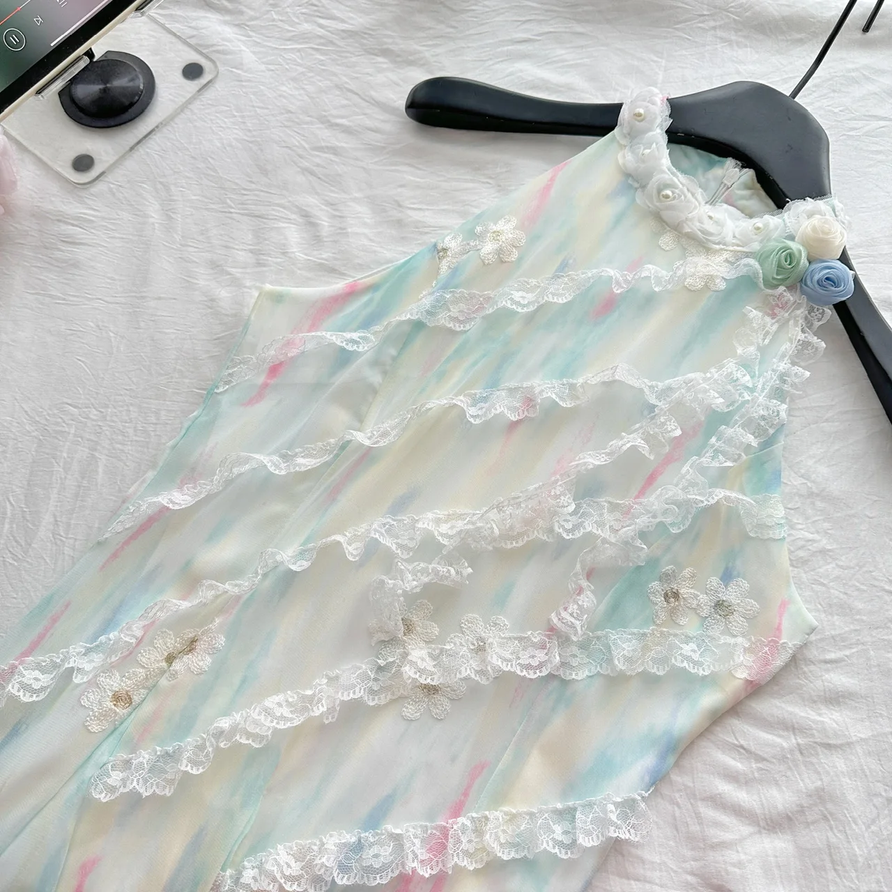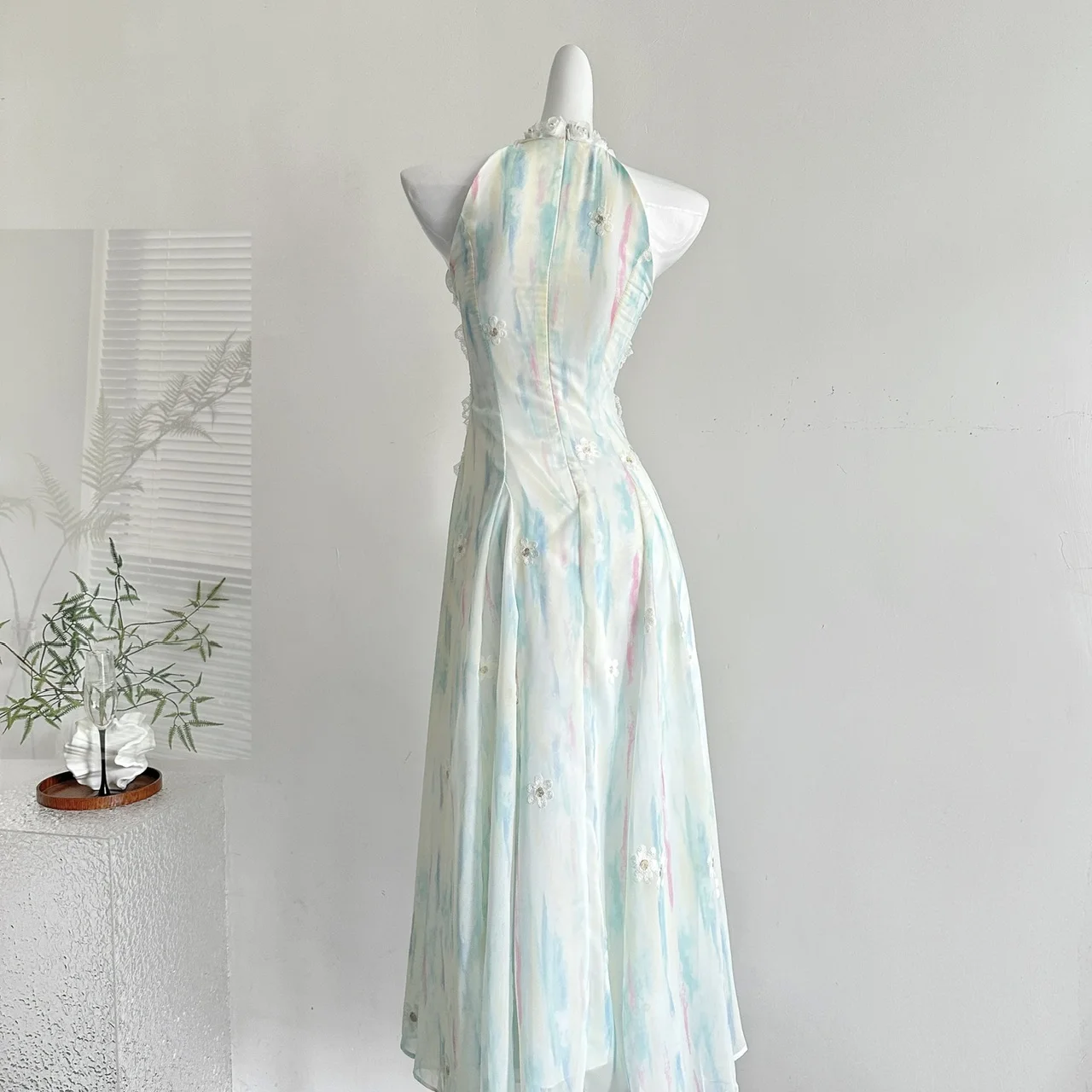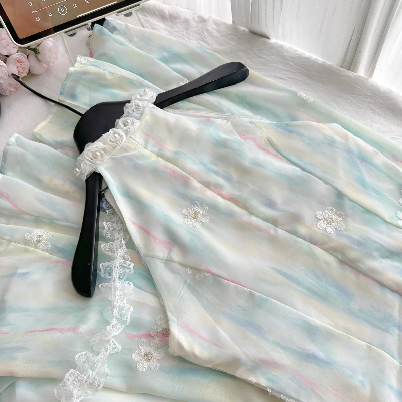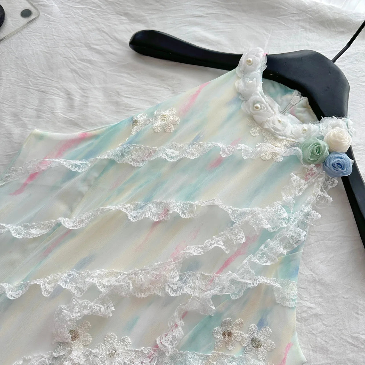 Cyflymder Summer Women French Vintage Shoujo 2000s Maxi Dress Sleeveless Frock A-line Tie Dye One-Piece Evening Party Coquette Gyaru Prom