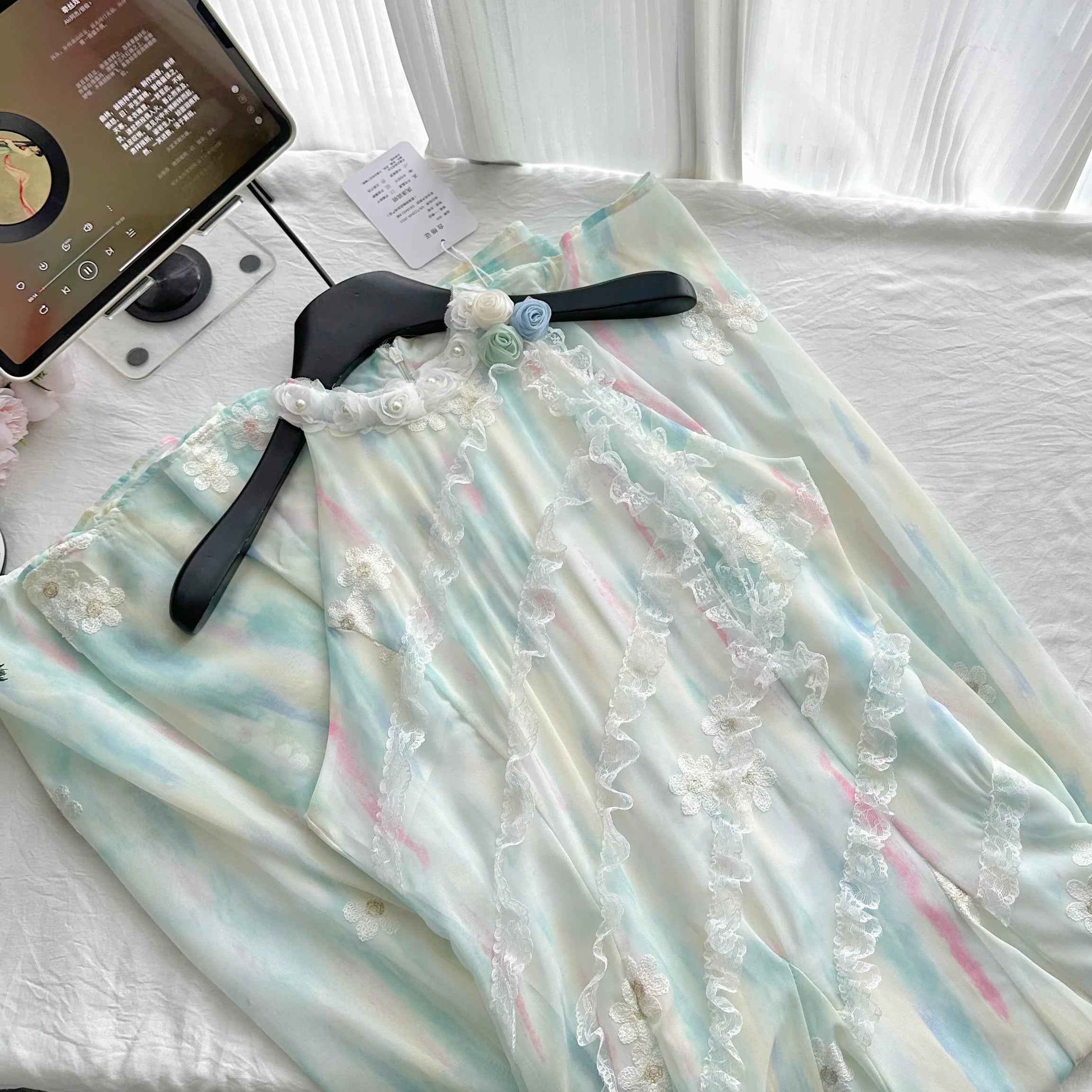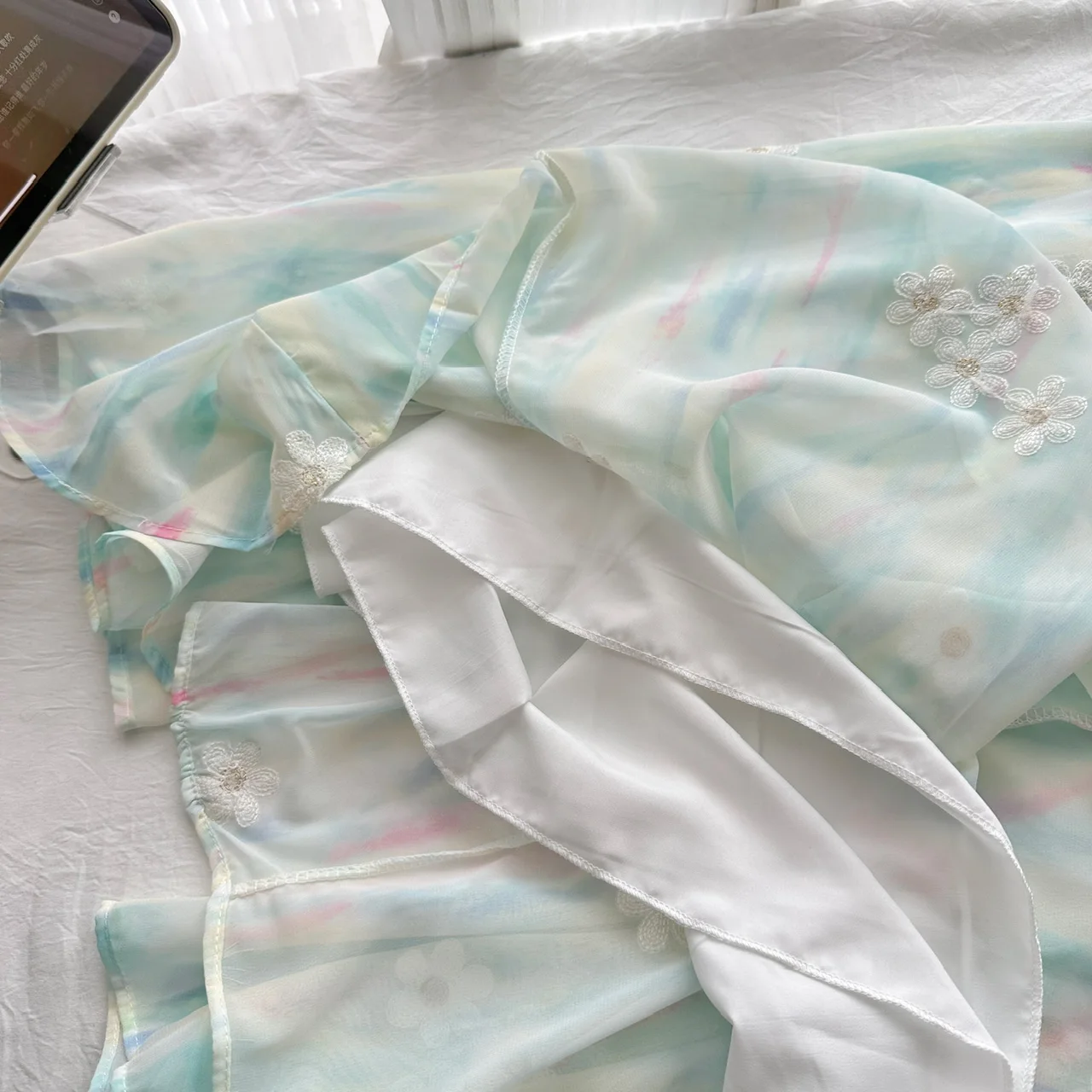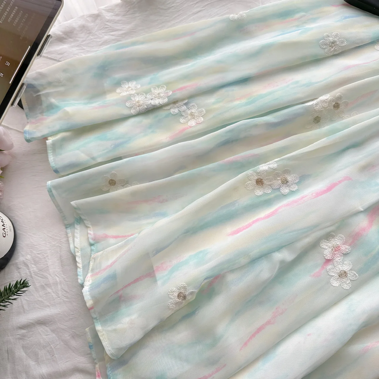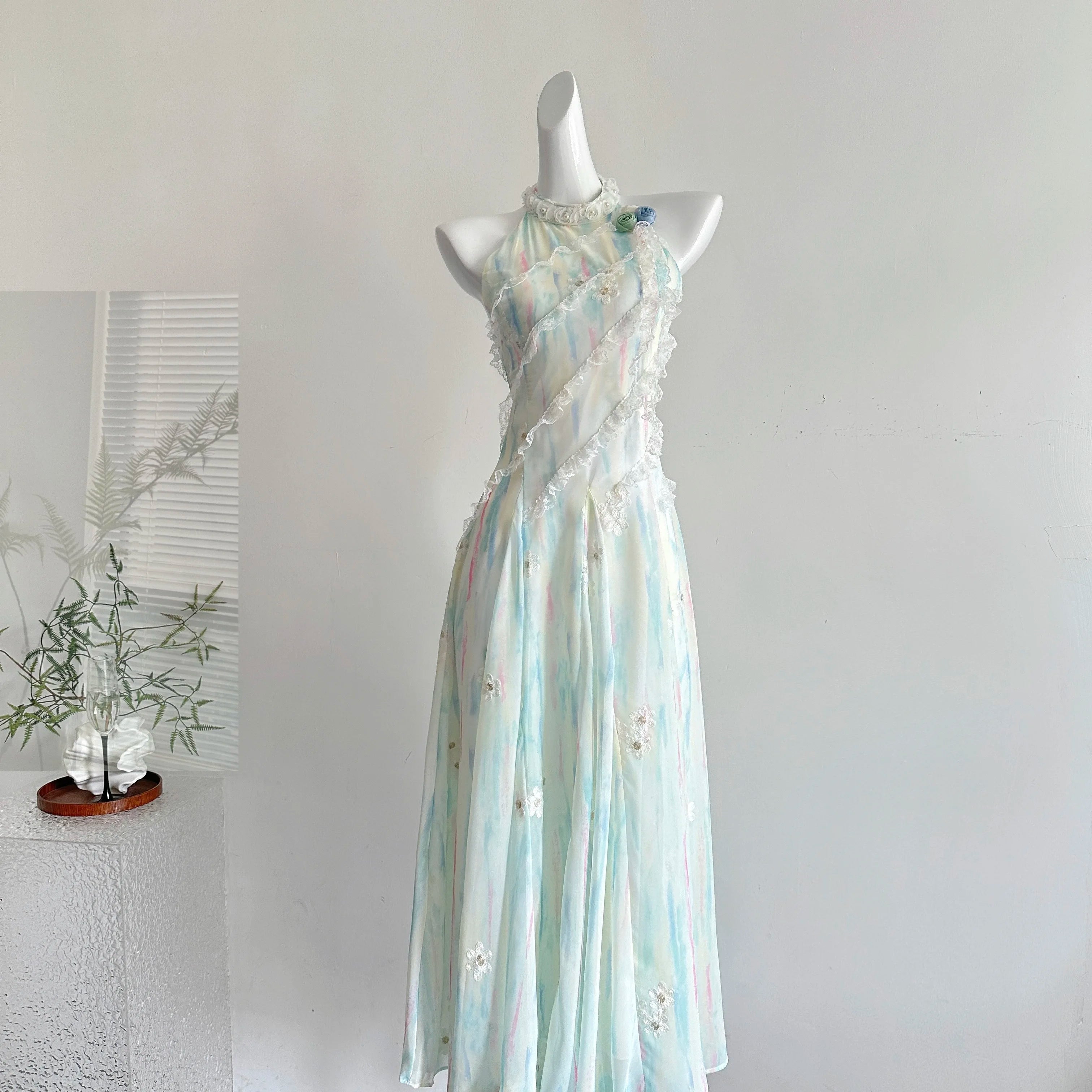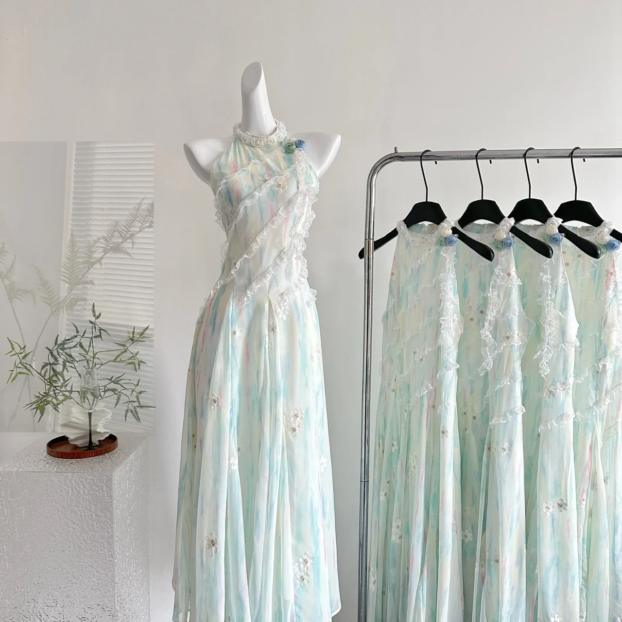 Cyflymder Summer Women French Vintage Shoujo 2000s Maxi Dress Sleeveless Frock A-line Tie Dye One-Piece Evening Party Coquette Gyaru Prom