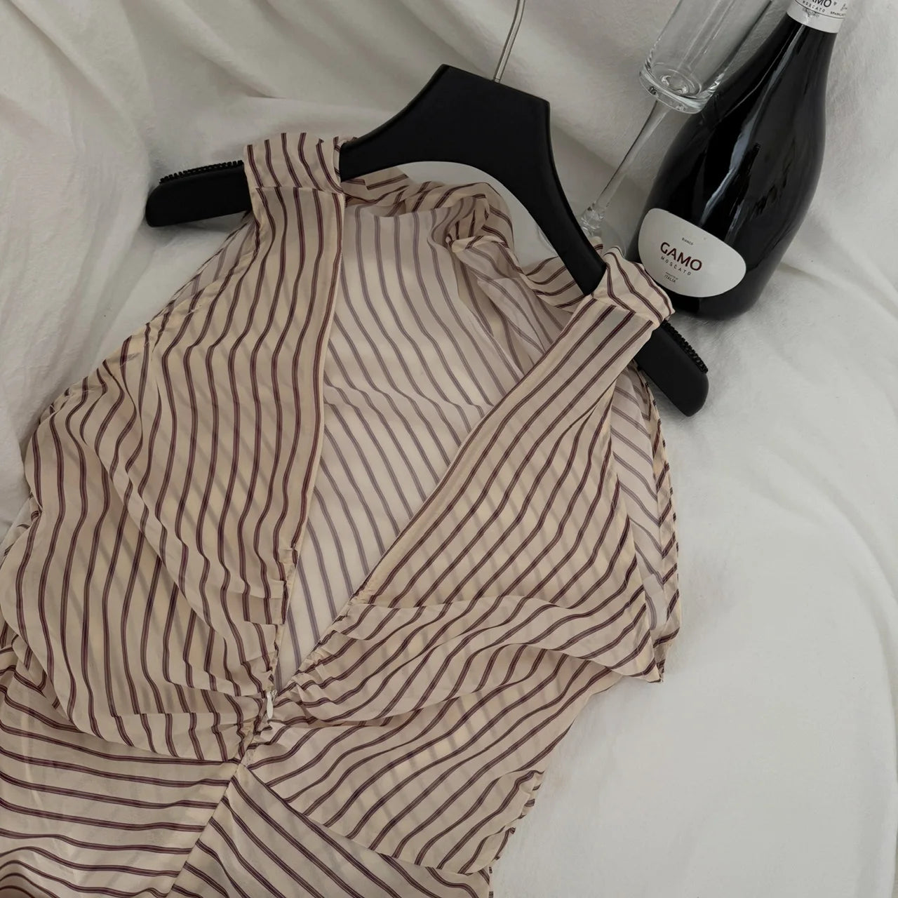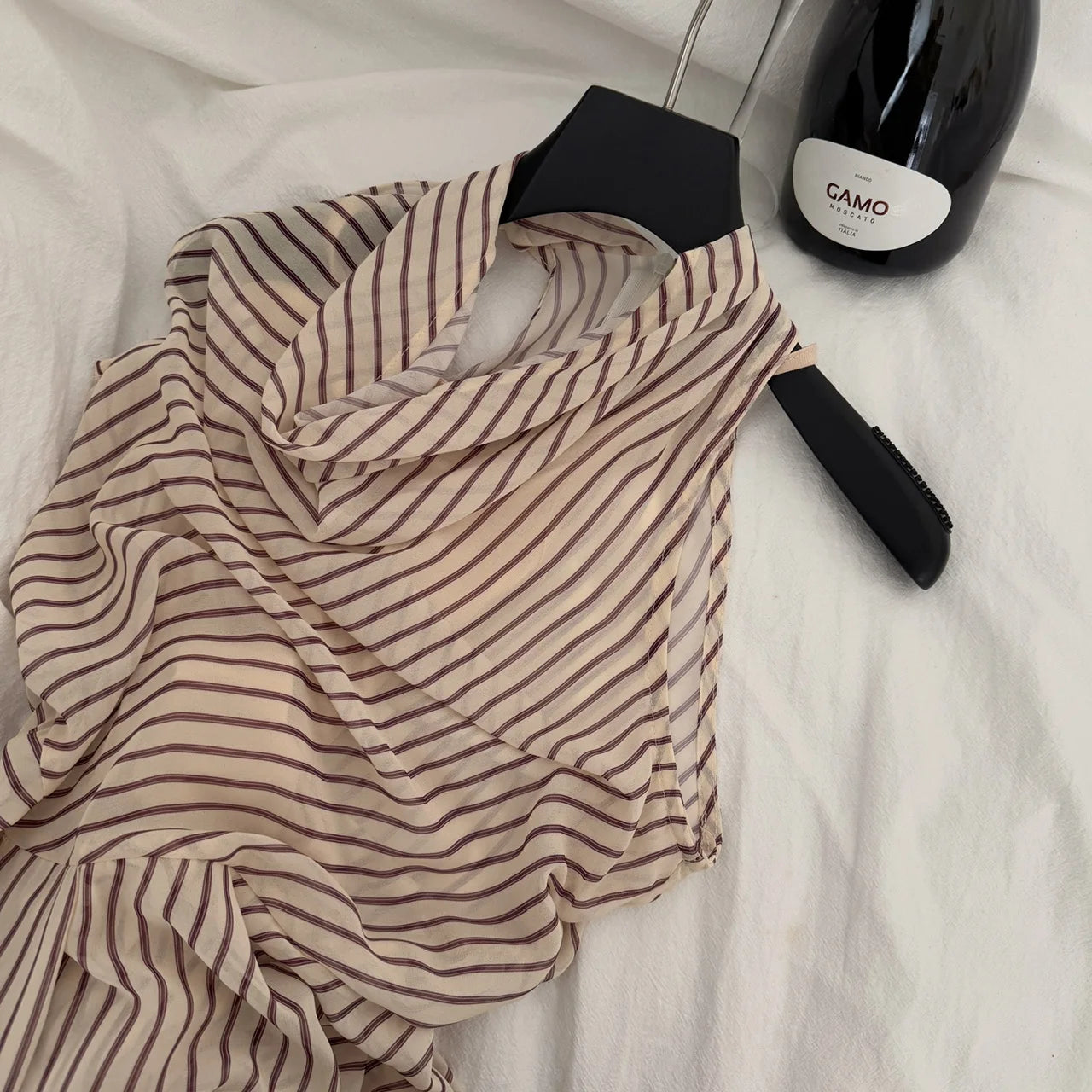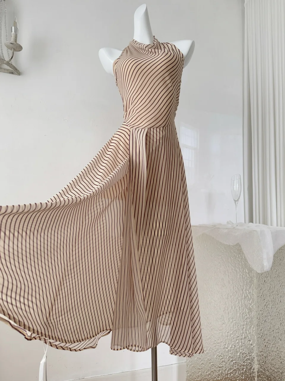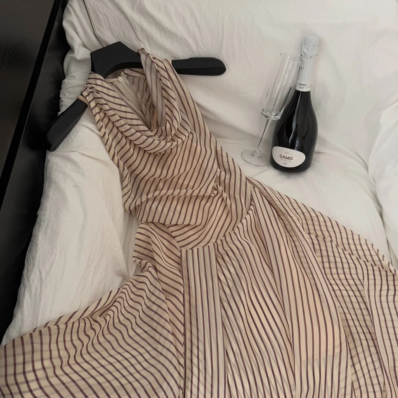 Cyflymder Summer Women French Vintage Vacation Striped Sleeveless Dress Maxi Frock Design Old Money Evening Two Piece Sets Party Evening