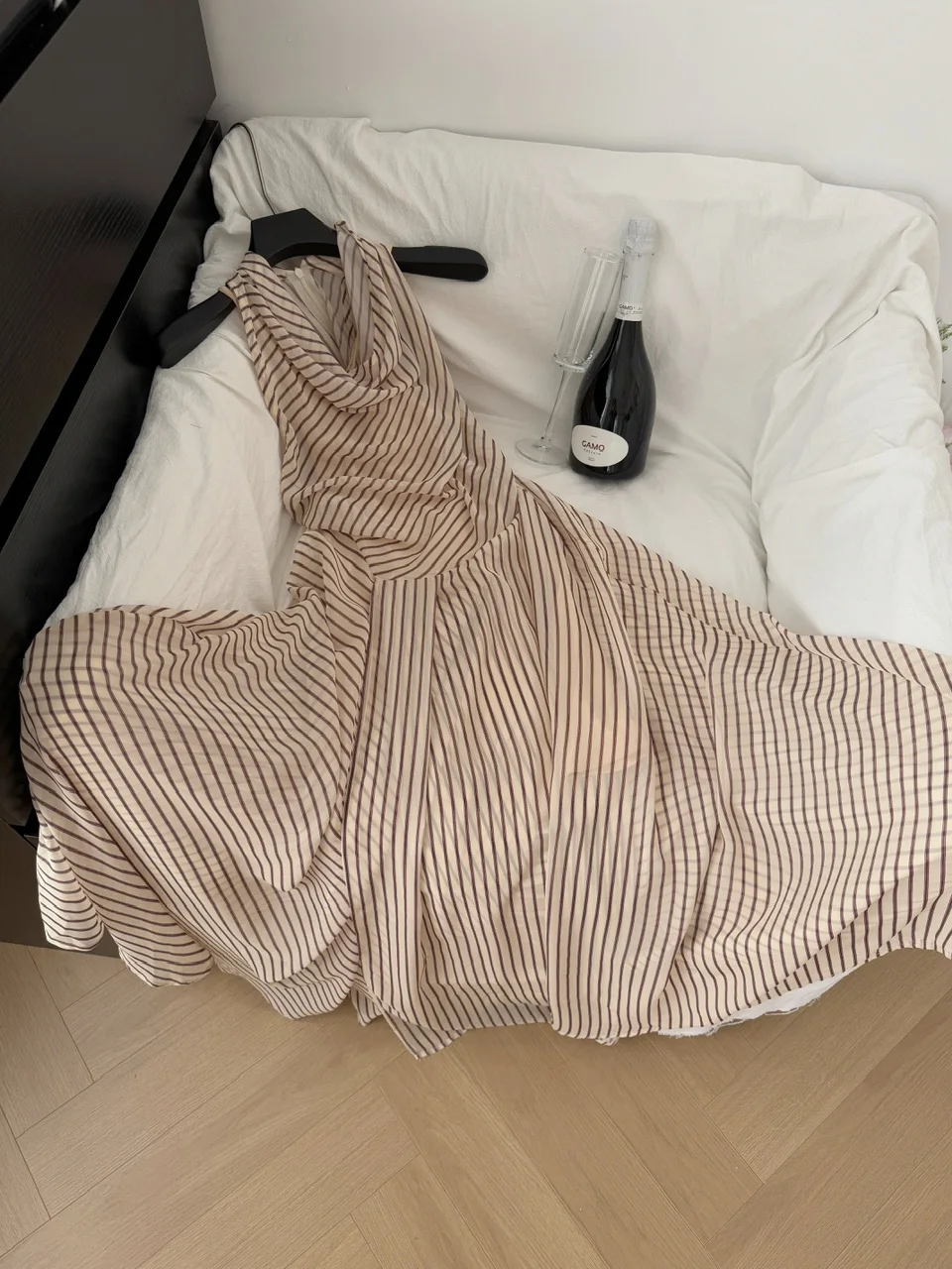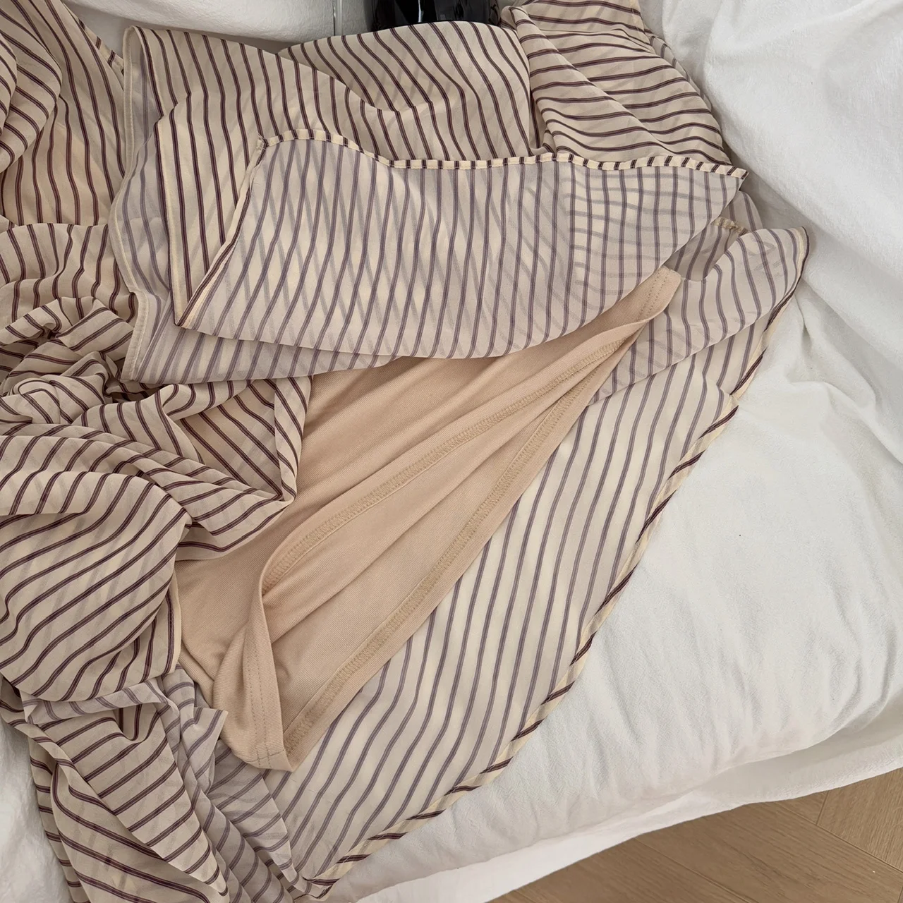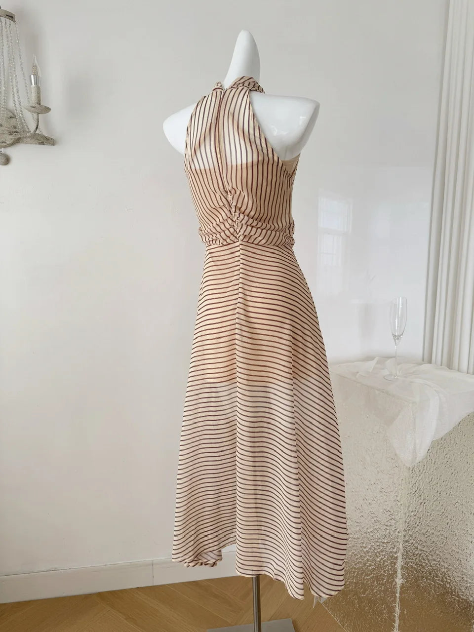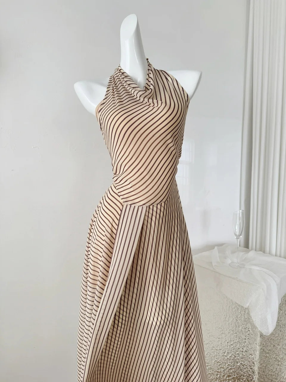 Cyflymder Summer Women French Vintage Vacation Striped Sleeveless Dress Maxi Frock Design Old Money Evening Two Piece Sets Party Evening