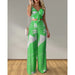 Cyflymder Summer Women Tropical Print Spaghetti Strap Casual Lace up Back Top &High Waist Pants Set 2 Pieces Suit Sets Woman Clothing