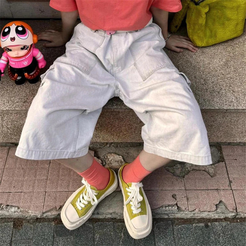 Cyflymder Summer Women's Unisex Multiple Pockets Street Cargo Shorts Young Girl Casual Bottom Female Loose Capris Calf-length Pants