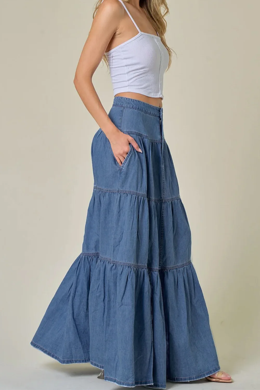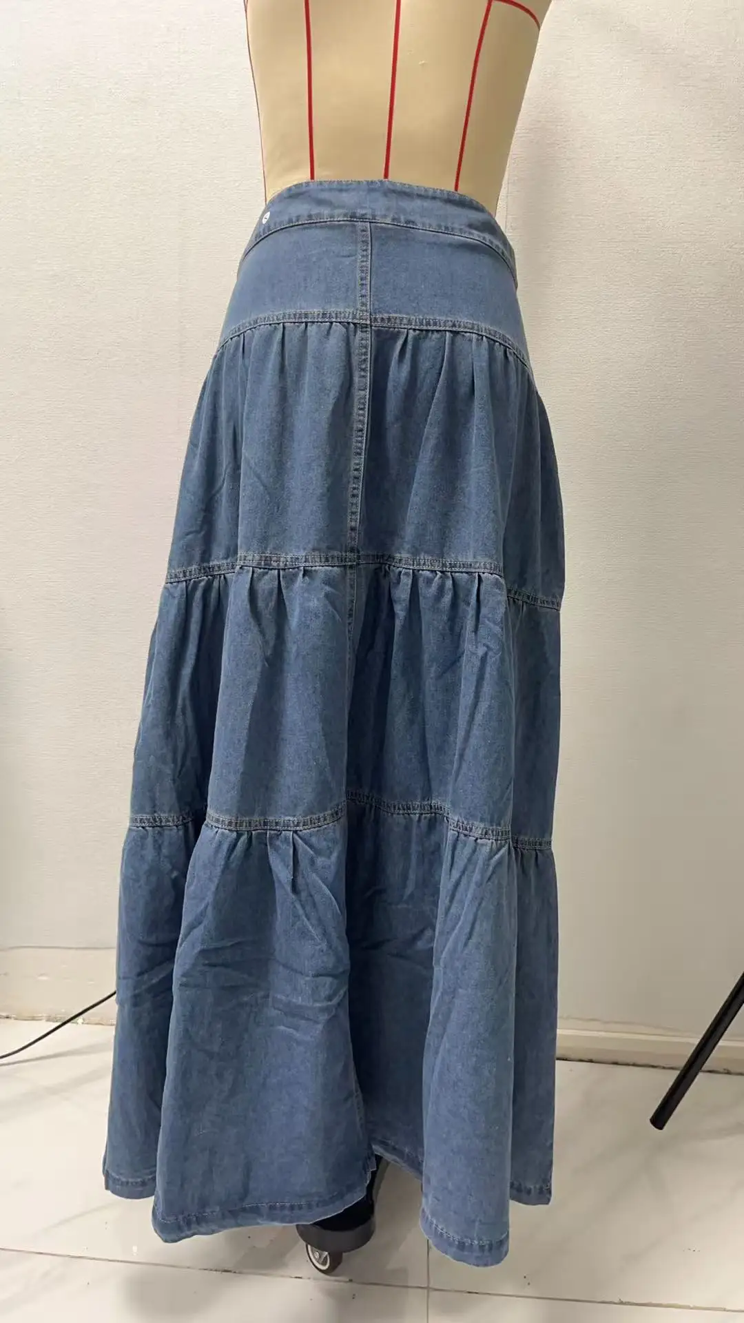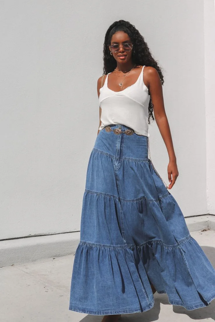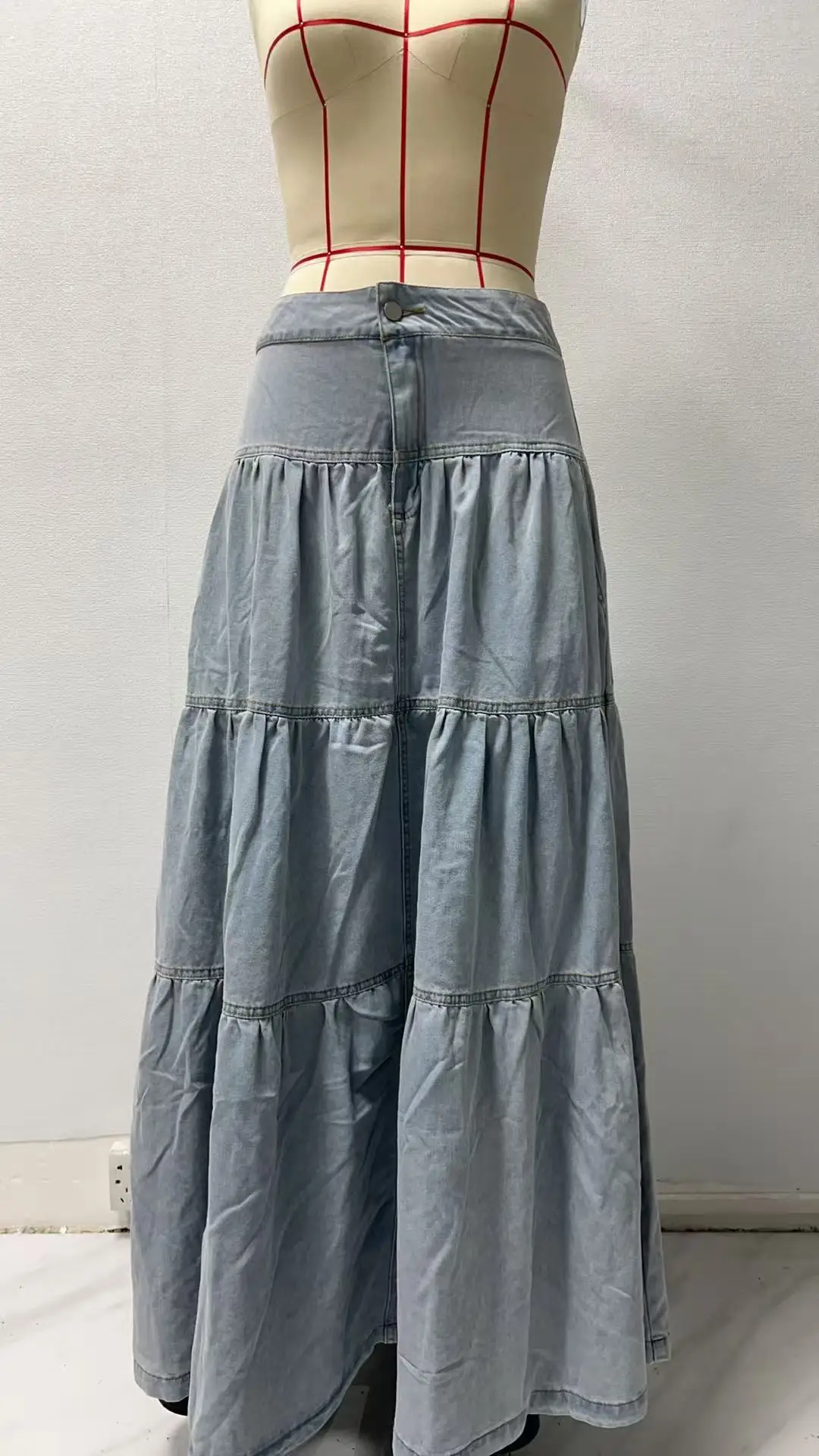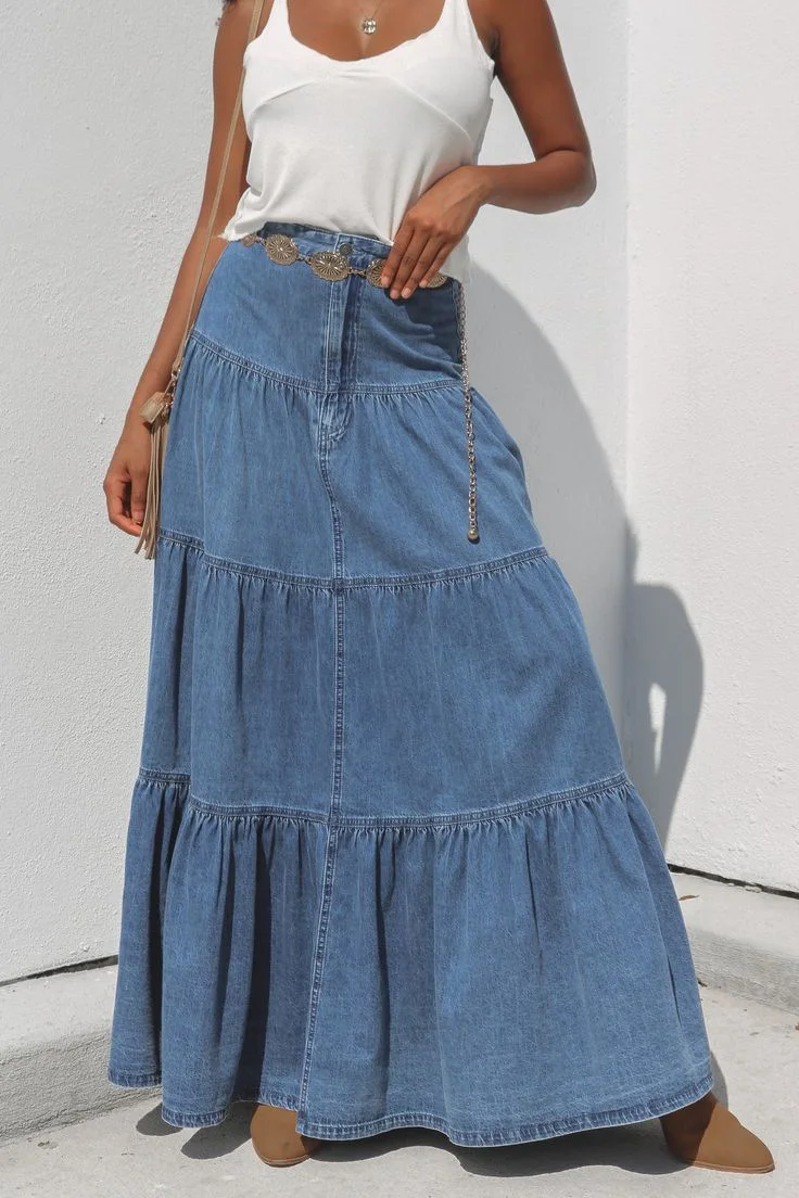 Cyflymder Summer Y2K Low Waist Denim Skirt for Women Street Style Washed Ruffle Layered Design Casual Vacation Skirt