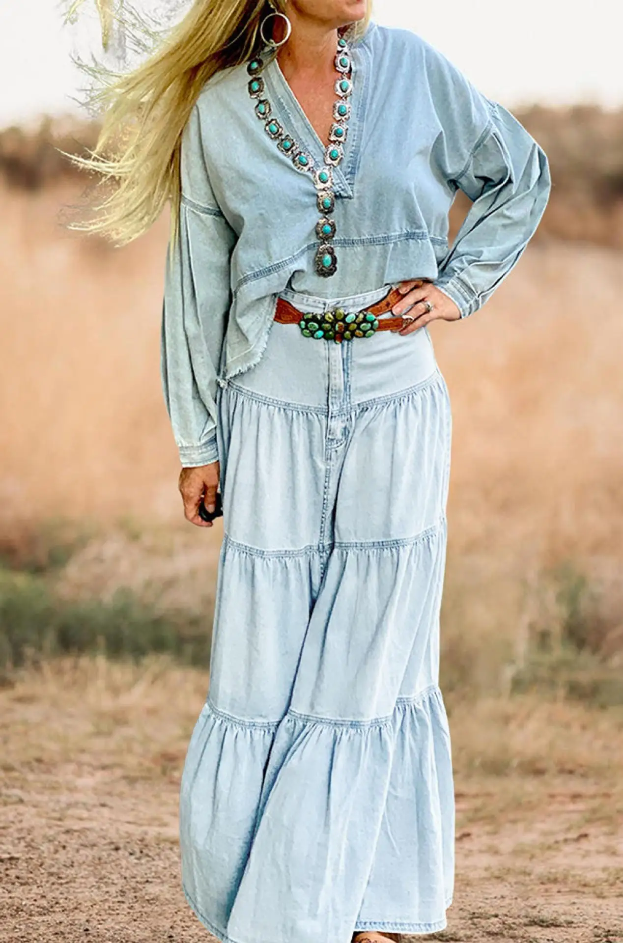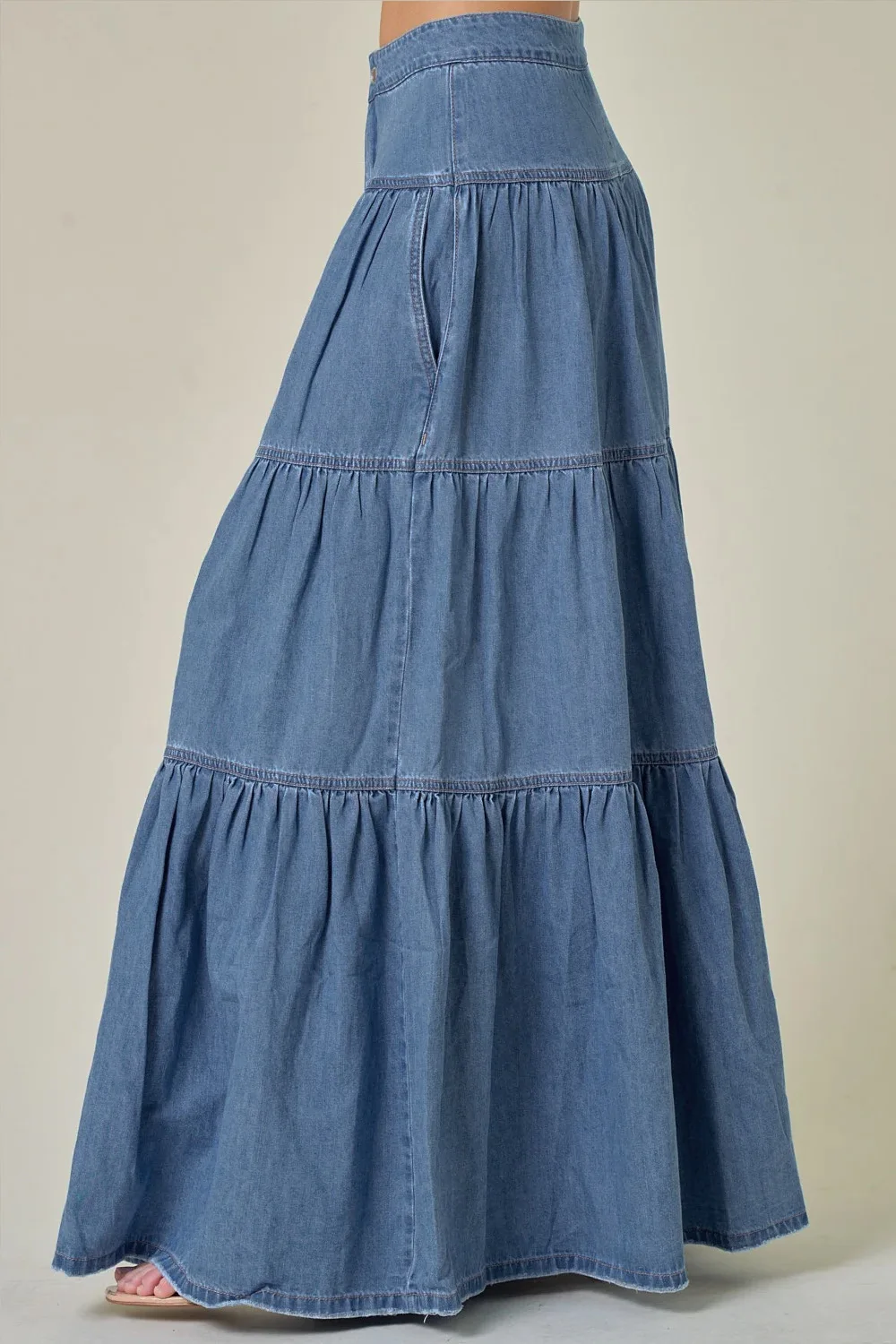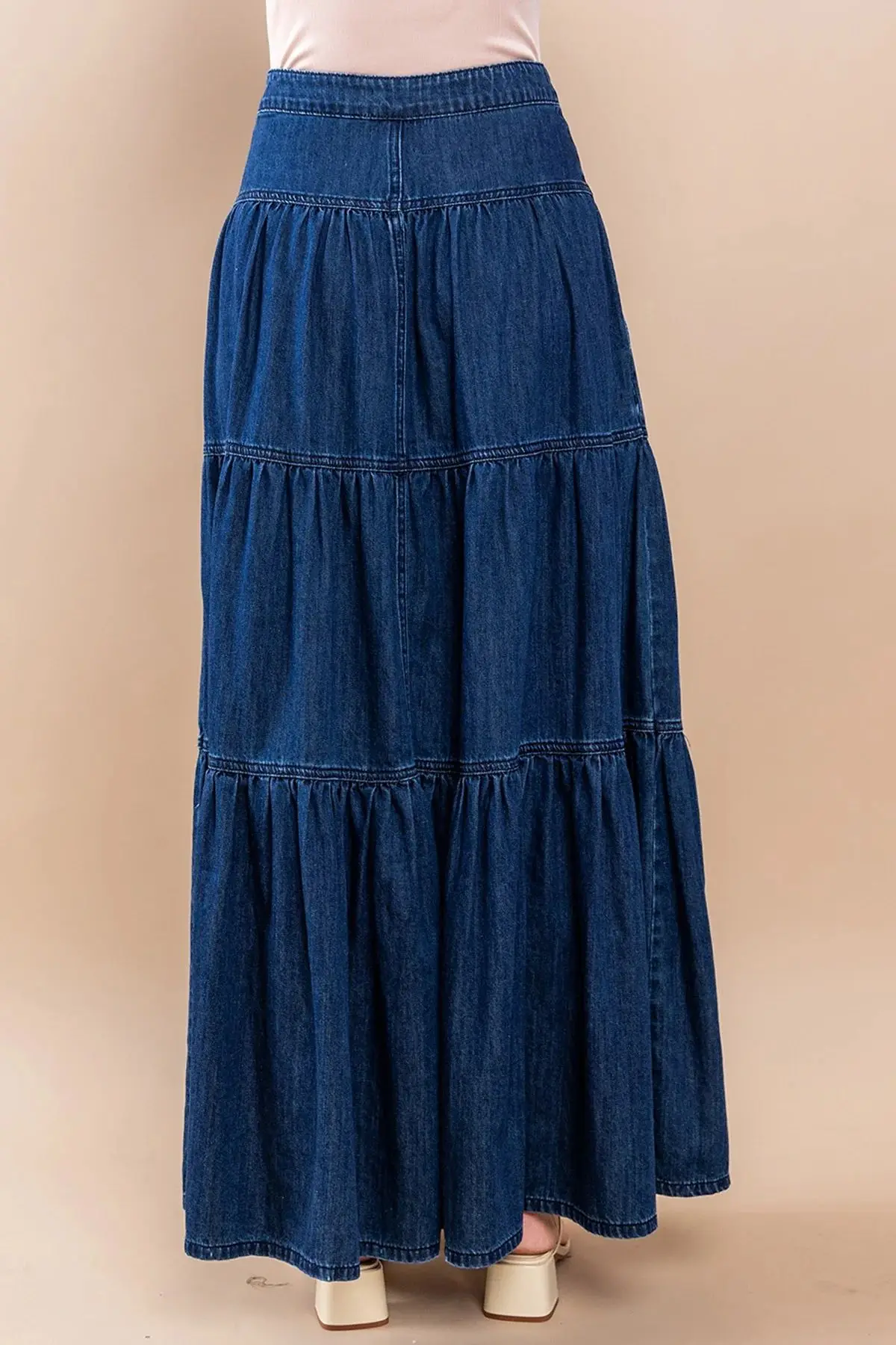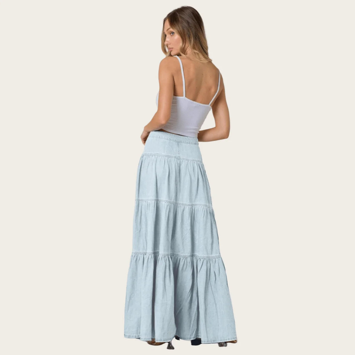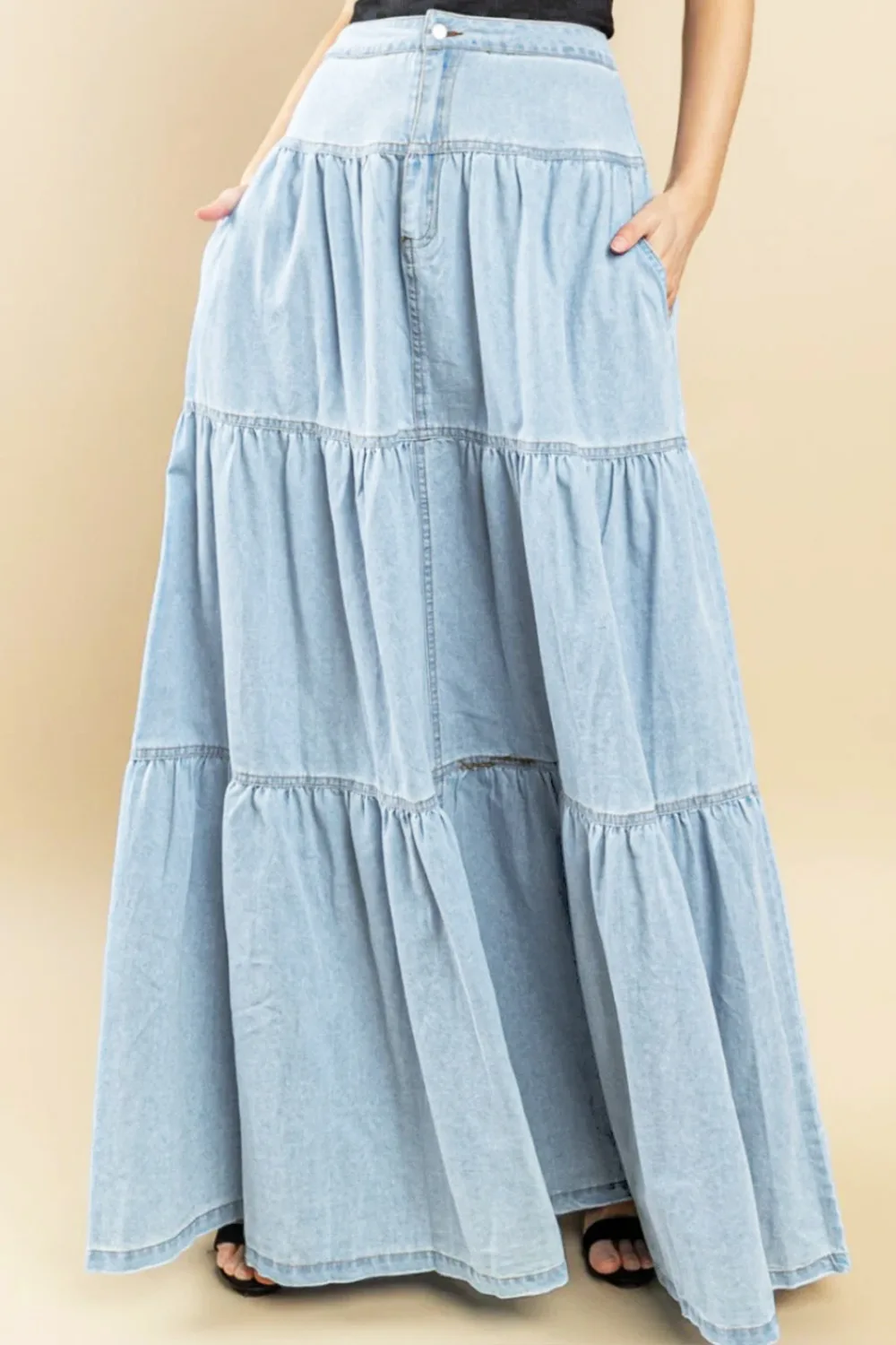 Cyflymder Summer Y2K Low Waist Denim Skirt for Women Street Style Washed Ruffle Layered Design Casual Vacation Skirt