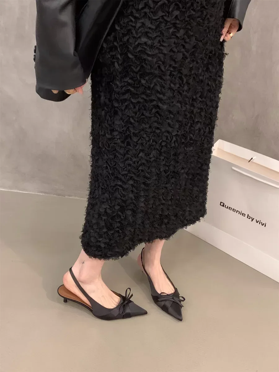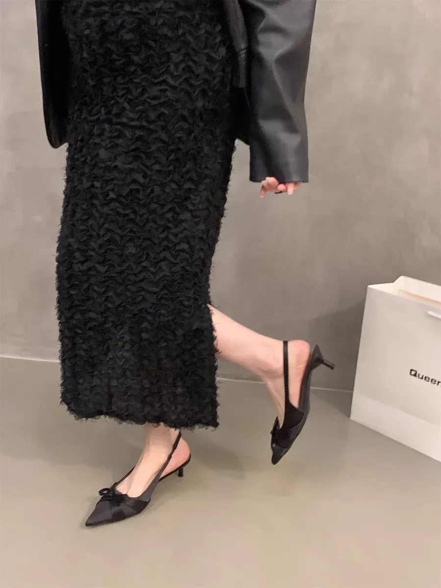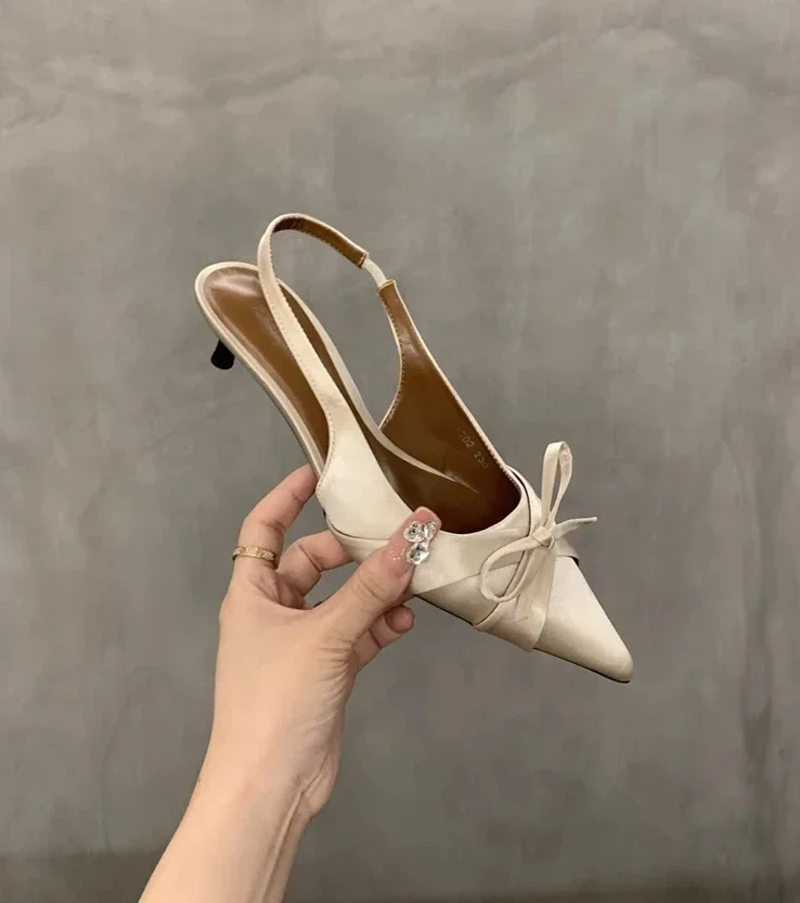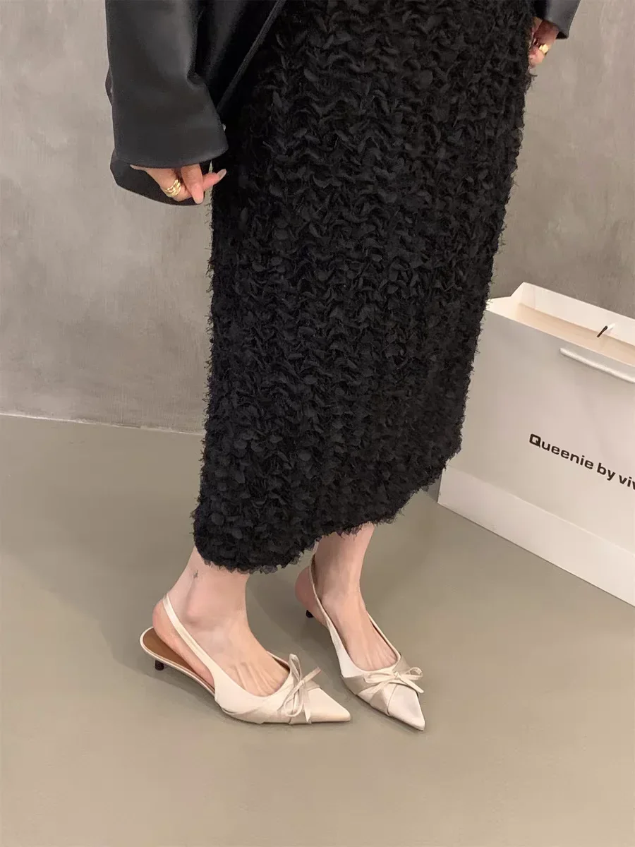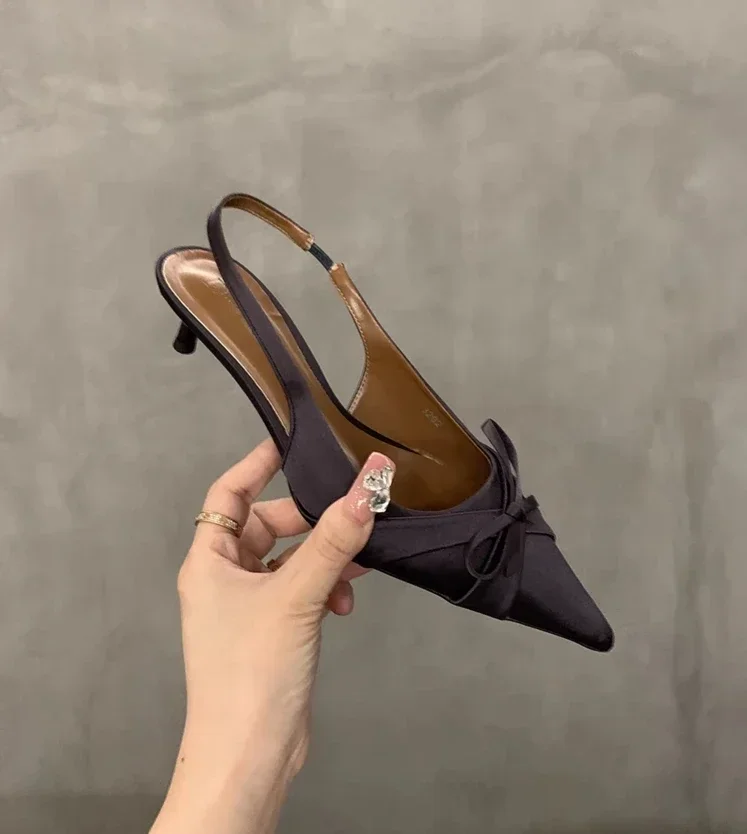 Cyflymder Summer's new sexy pointed-toe silk satin high heels, brand design bow elegant slim sandals, women's shoes, large size